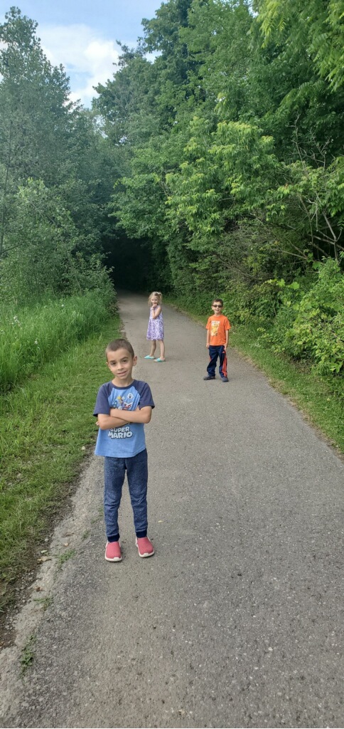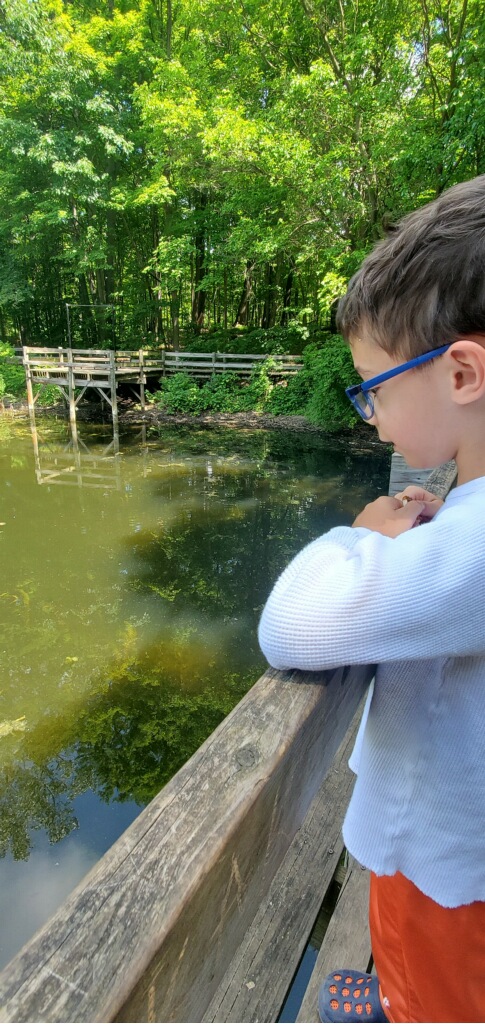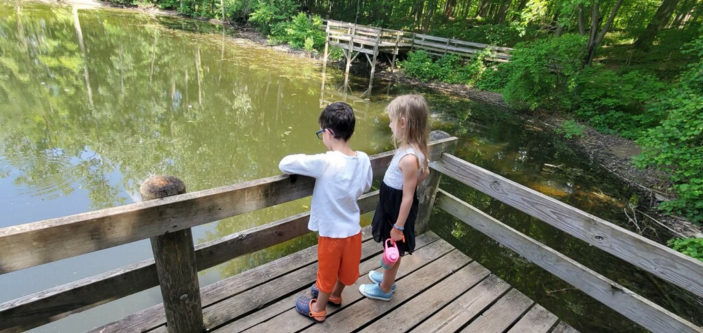 On Monday, the kids got out to Maybury Park but via different entrance we usually use which allowed for new sights and new geocaches. Penni said they were able to spend some time watching folks fish.