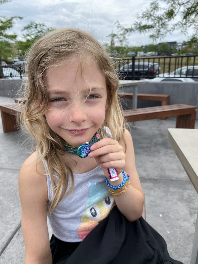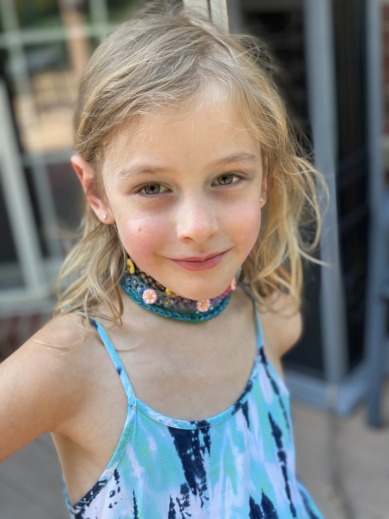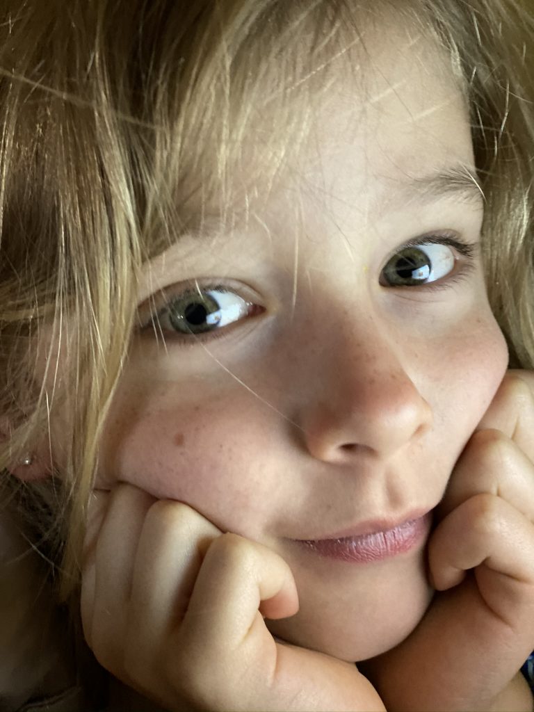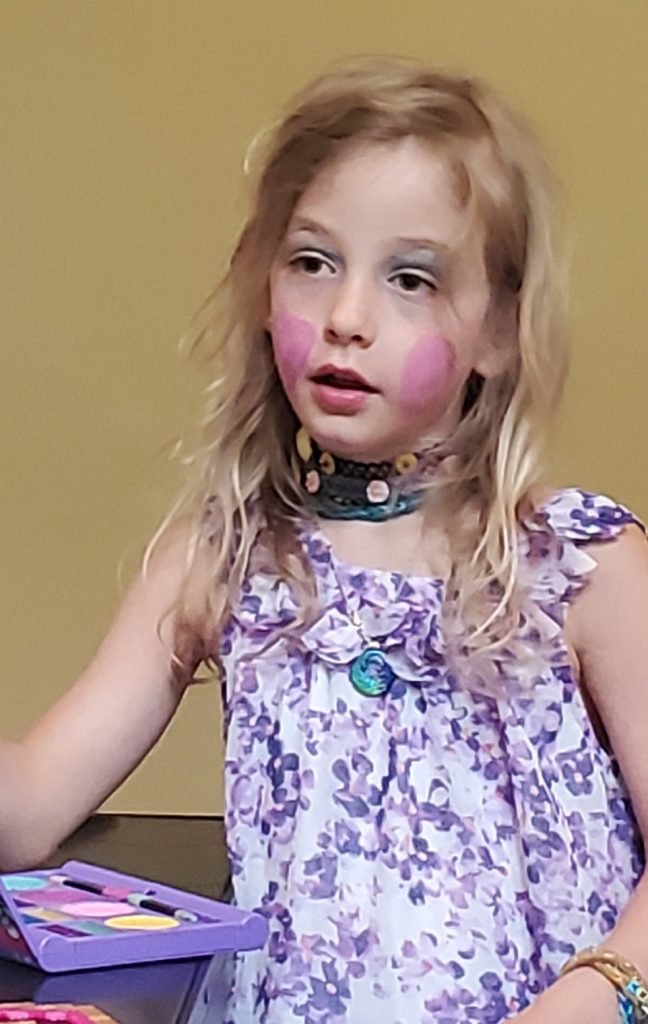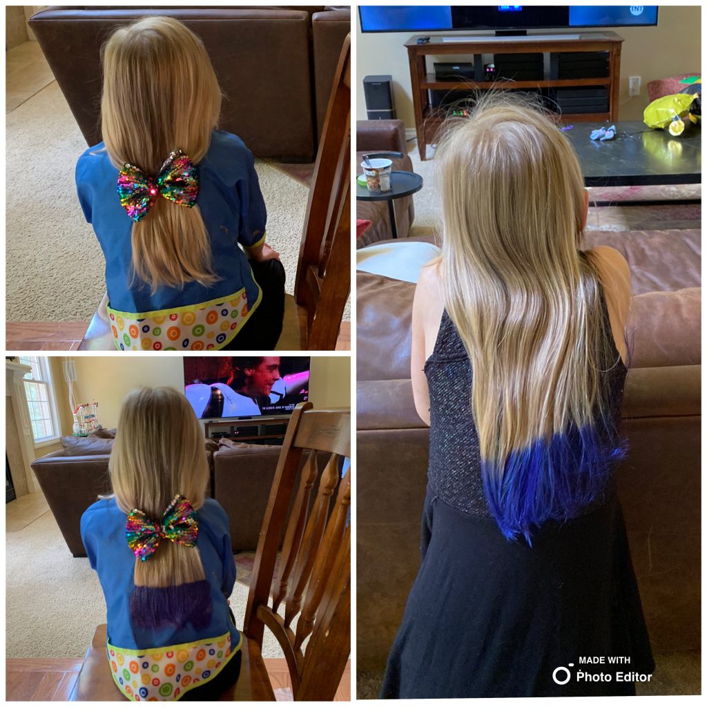 Blue tips for Amaya! (Not crooked, just how she was leaning.) I’ll dye her whole head if that’s what she prefers but I’m definitely partial to just a touch of color like this.