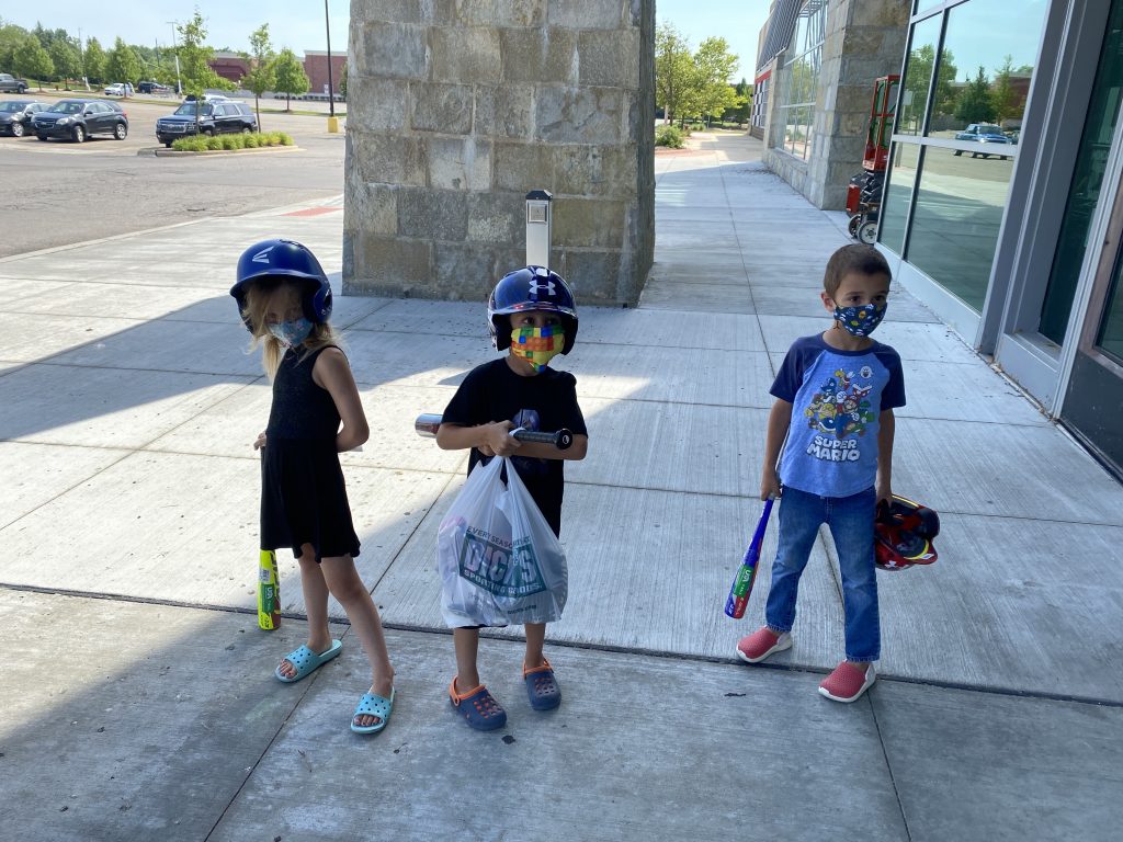 Due to covid restrictions, the baseball league isn’t sharing equipment like they usually do so we needed to get our own bats and helmets and the kids also needed new, larger gloves. After some time at DSG with their dad, they’re ready to go. (Steven was excited to go to a “sports good store” again. 🙂 )