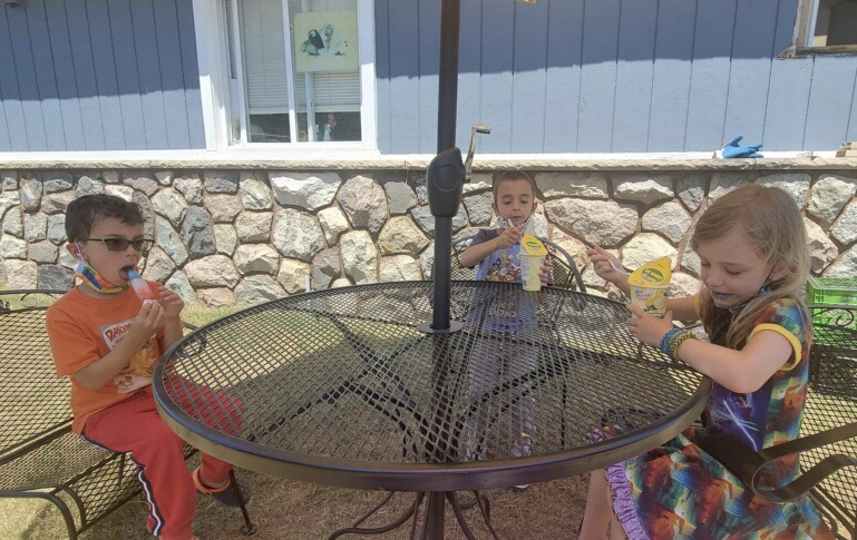 They’re doing their best with social distancing. The coaches wear masks, the kids don’t. During games the kids will stay with their families when they’re not at-bat rather than sitting in a team dugout.