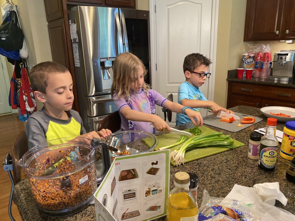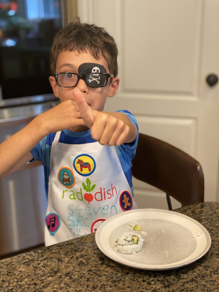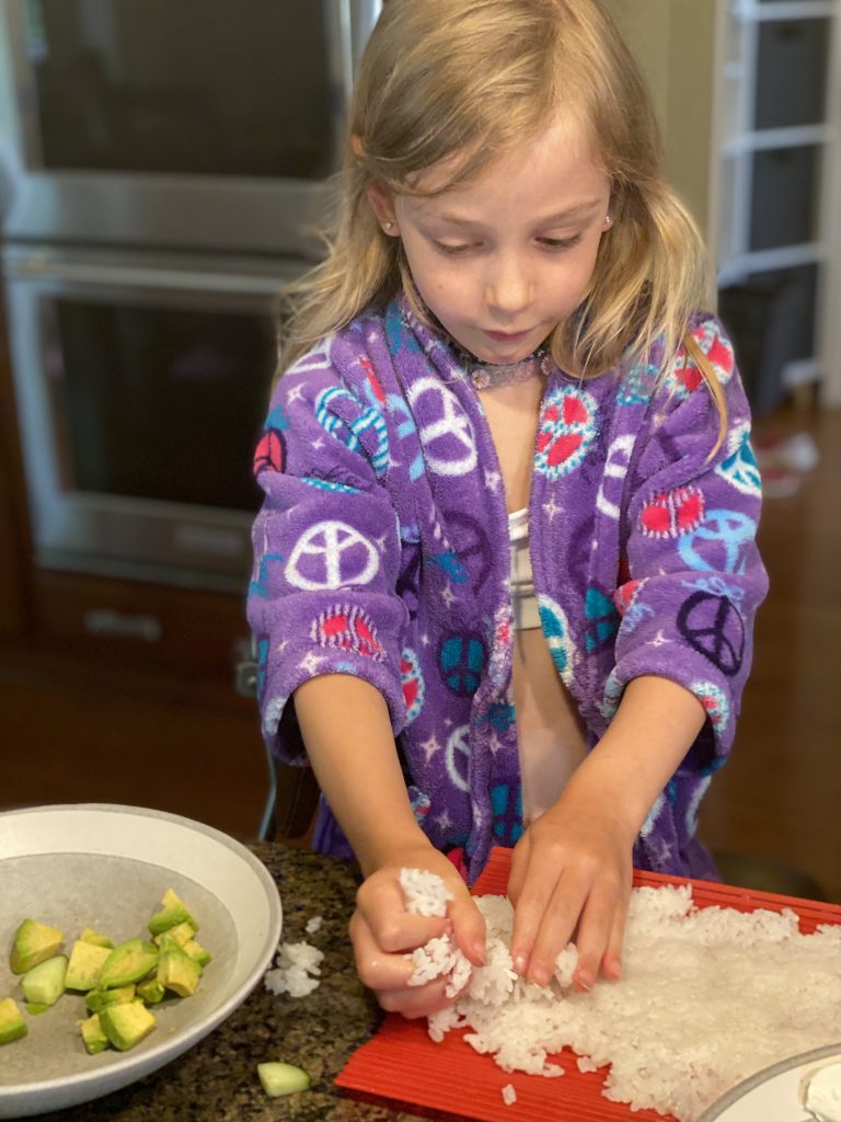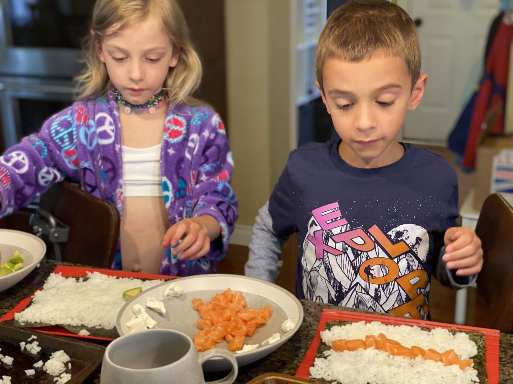 We had so much fun and it was a really interesting process for all of us. We got supplies so the kids could make the sushi they’re used to eating. Cucumber avocado rolls for Amaya. Philadelphia rolls for the boys, made by Sammy, and California rolls for the boys, made by Steven.