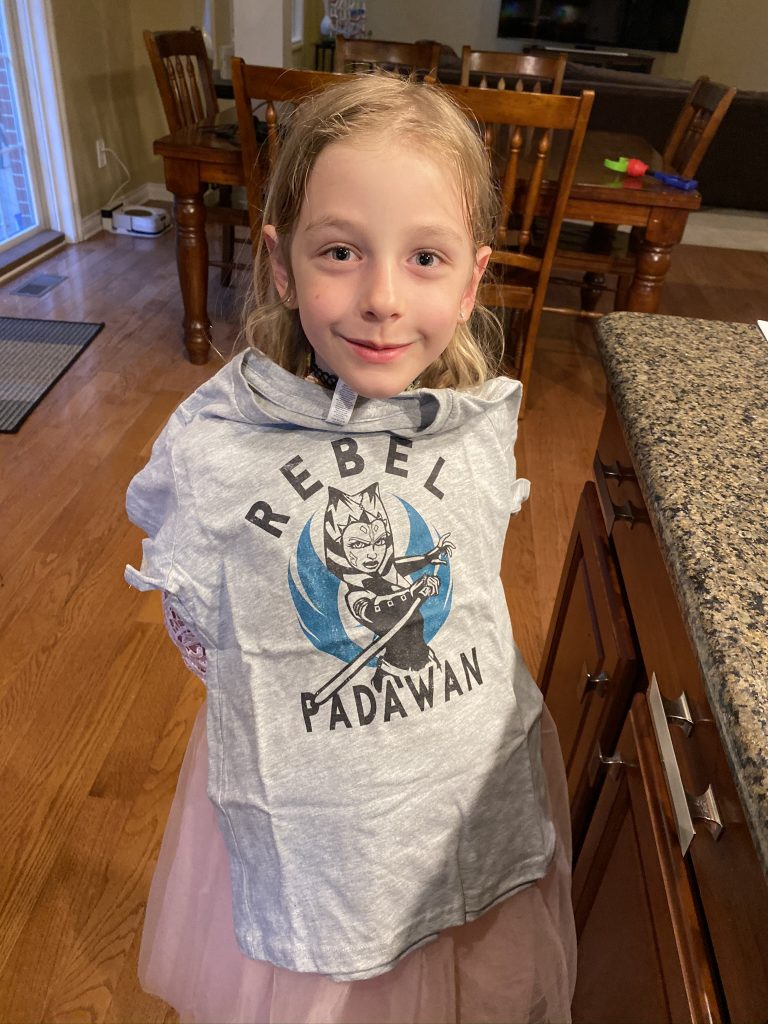 As we continue our love affair with Star Wars, Amaya started the week sporting her new Ahsoka Tano t-shirt. We love Ahsoka.