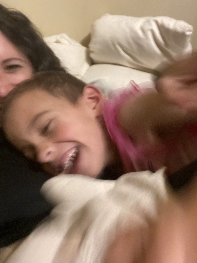 Blurry bedtime selfies with Bubba. He was having a blast trying to keep me out of the pictures.