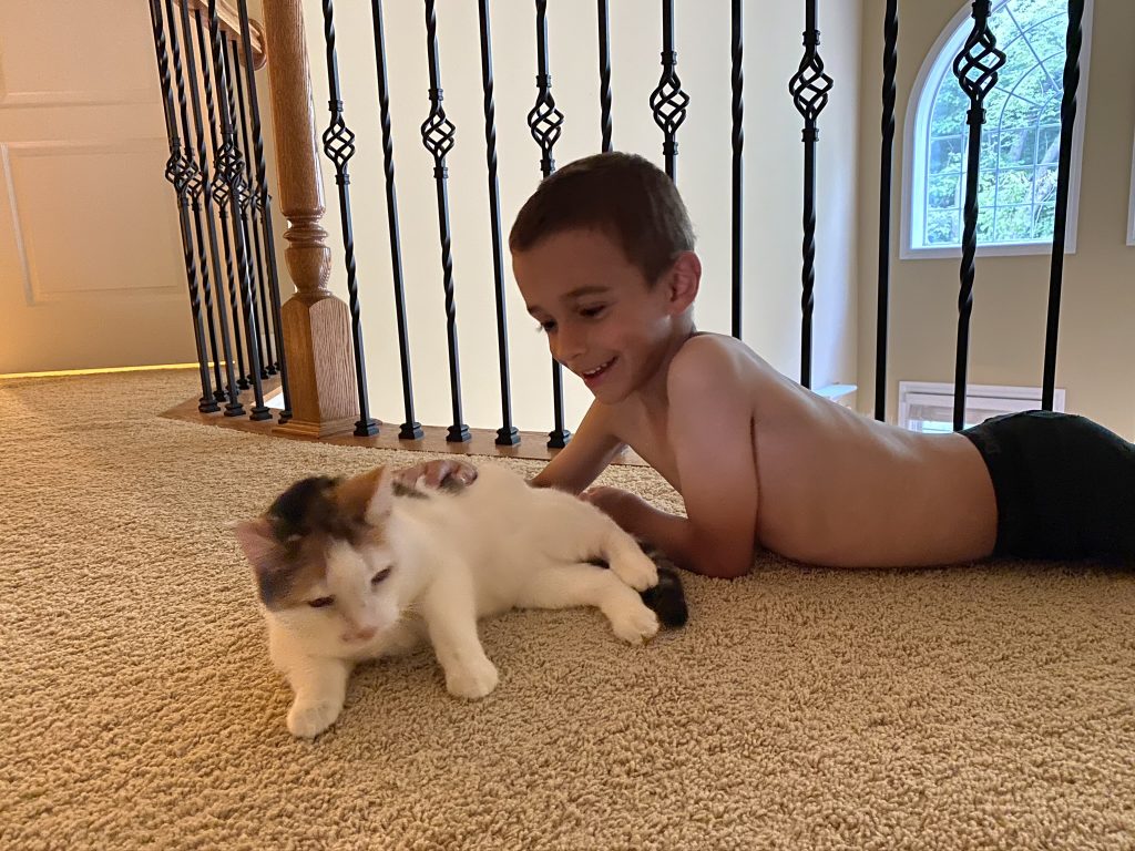 Sammy and Sally are becoming true buds. He’s so sweet with her that she’ll just lie in the hall and let him pet her. It makes my heart so happy.
