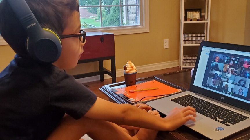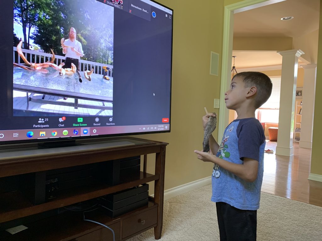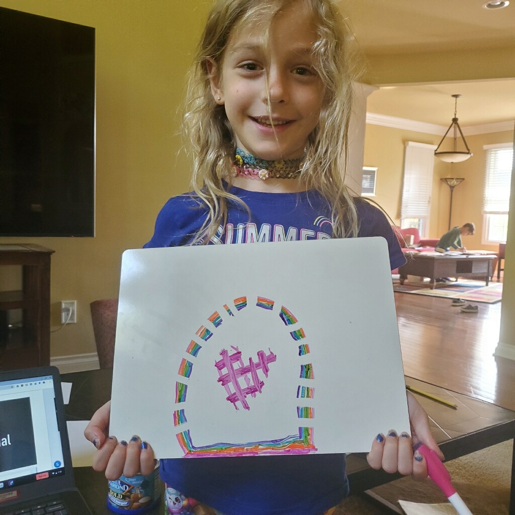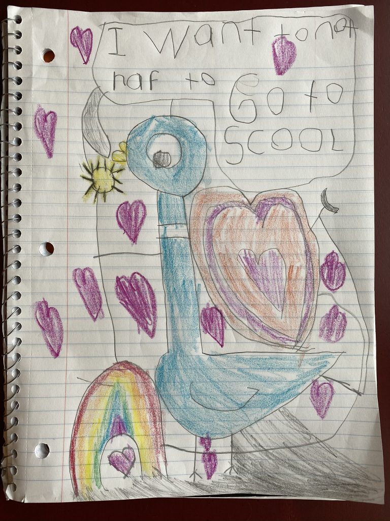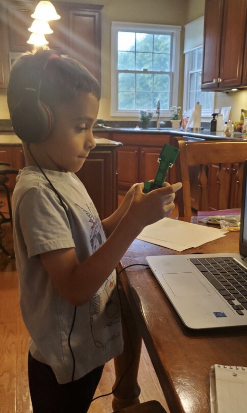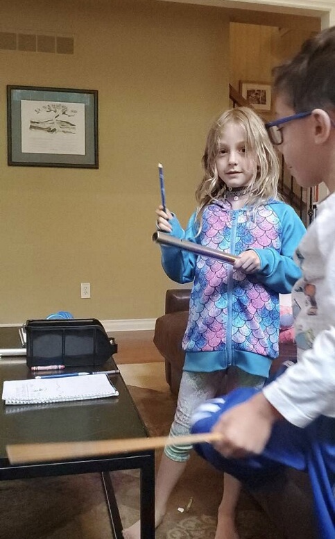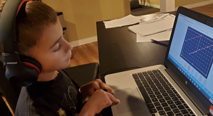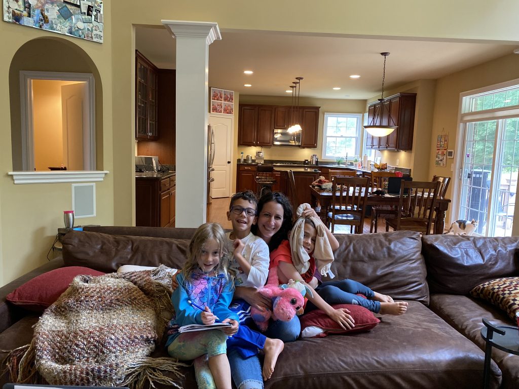 The rule is that the kids have to sit up properly for their live, synchronous learning time but they have more flexibility during independent working time – as long as they stay focused and get their work done. I was able to sneak this picture when I came down to get a snack.