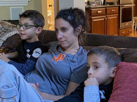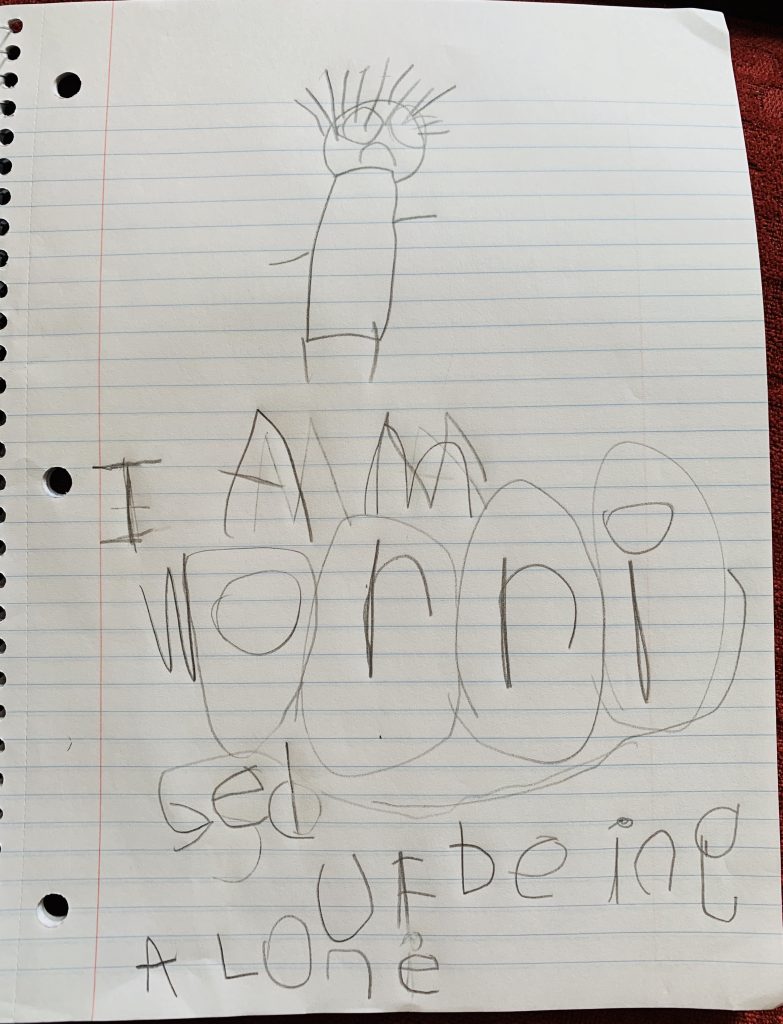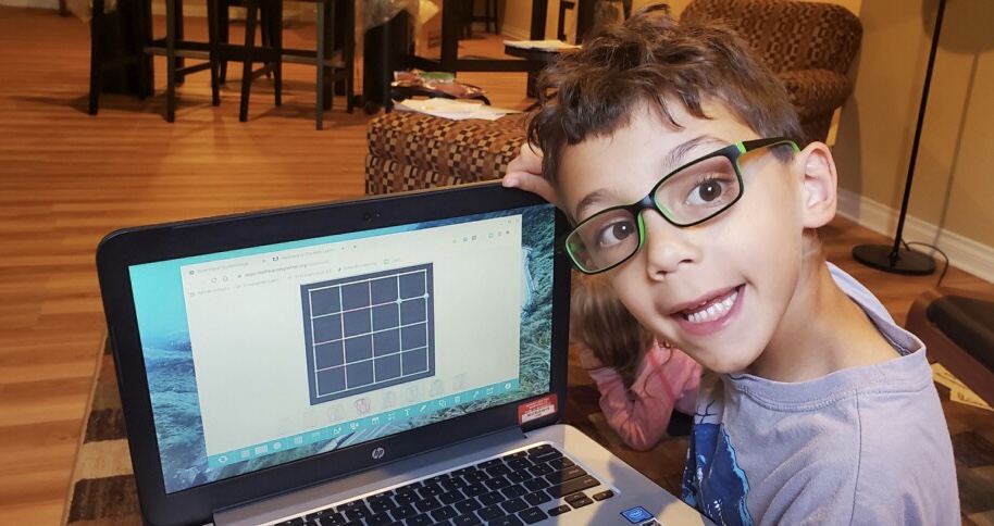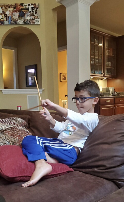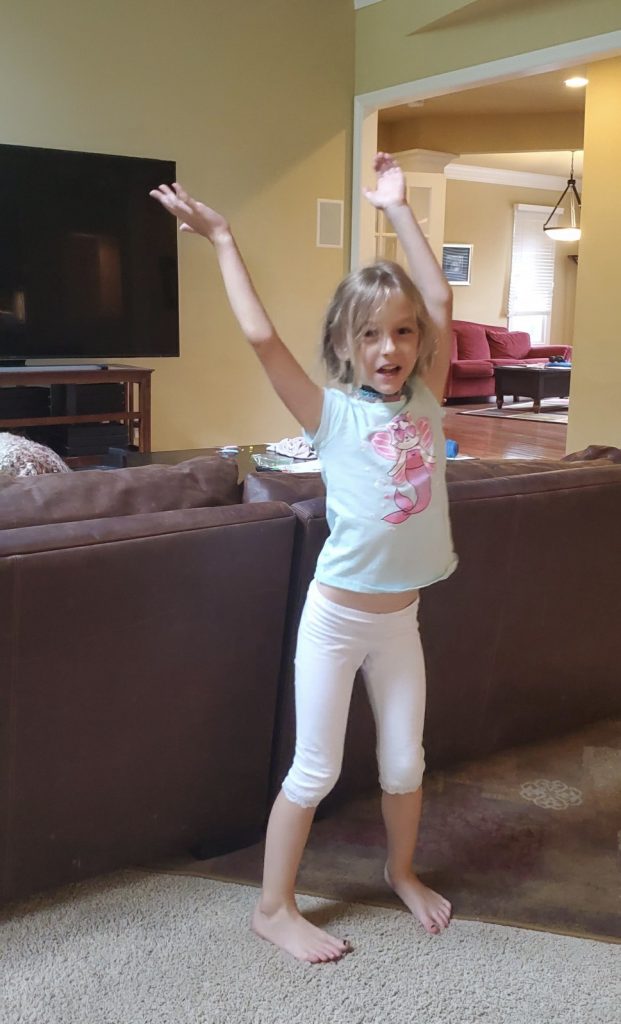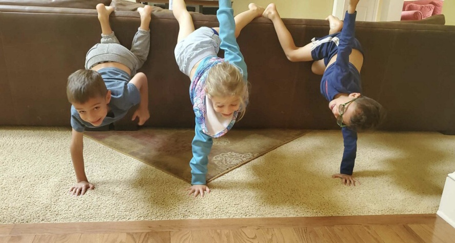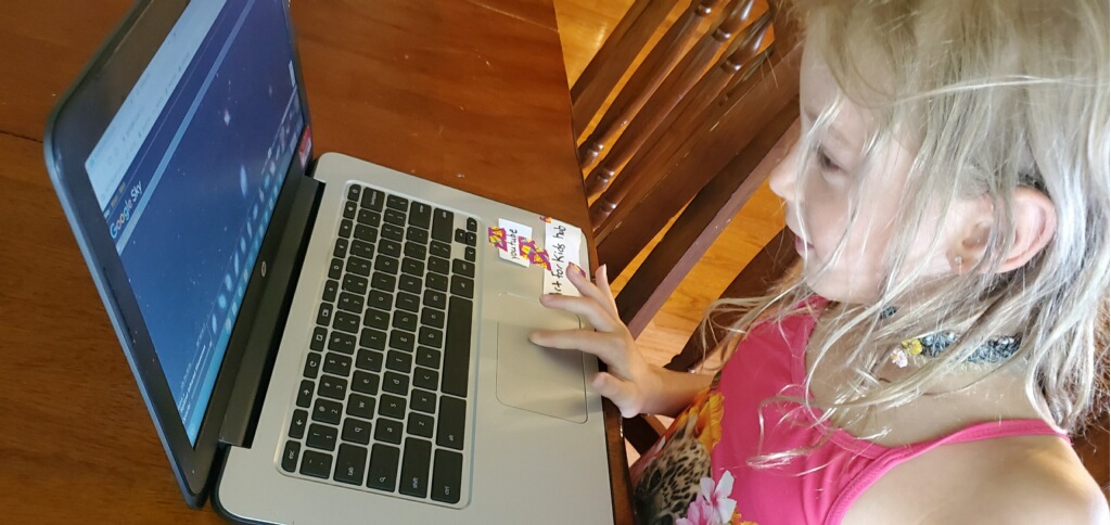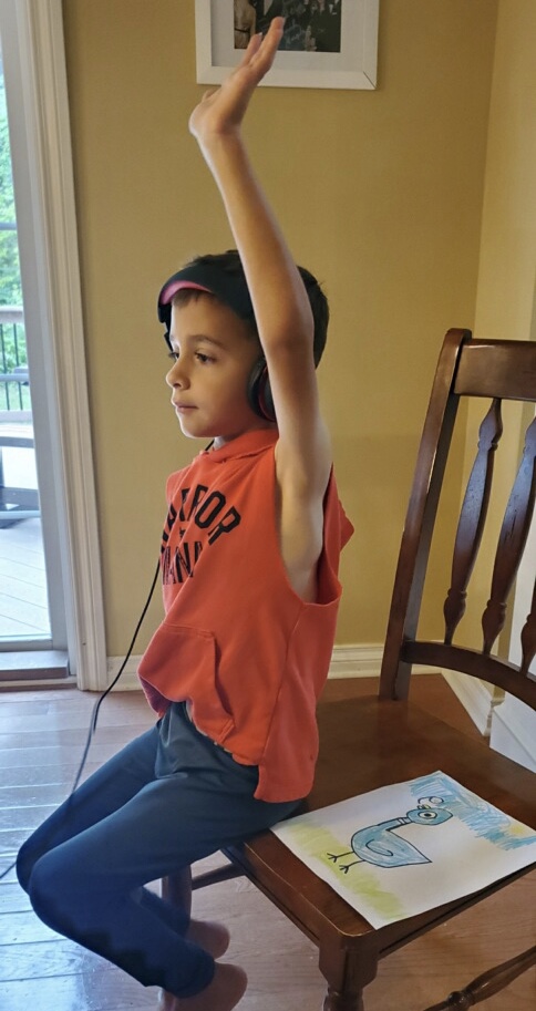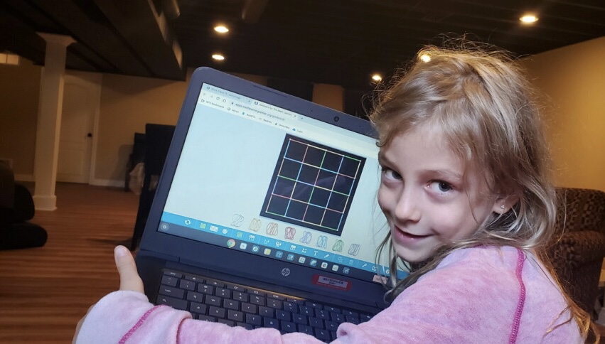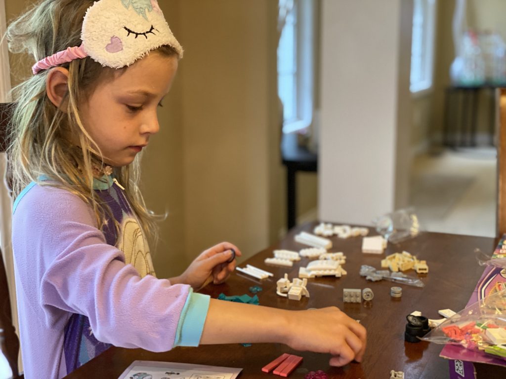 The rule is that the kids have to sit up properly for their live, synchronous learning time but they have more flexibility during independent working time – as long as they stay focused and get their work done. I was able to sneak this picture when I came down to get a snack.