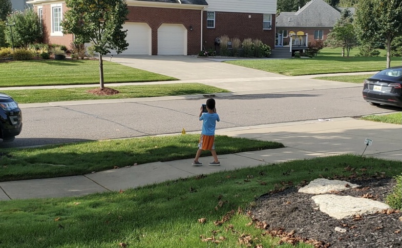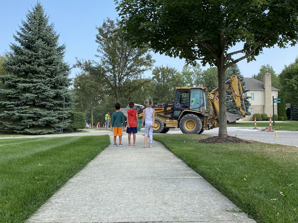 Monday morning, Steven woke to the sound of new construction vehicles outside. He was eager to get outside and take some pictures, which Penni made happen during their morning recess break.