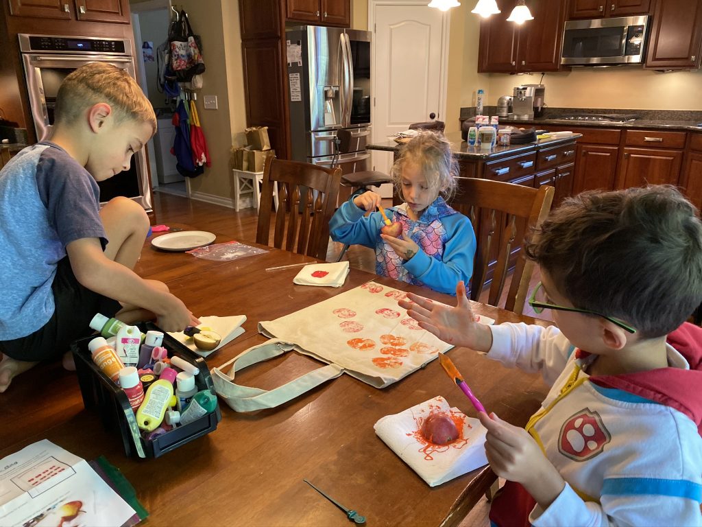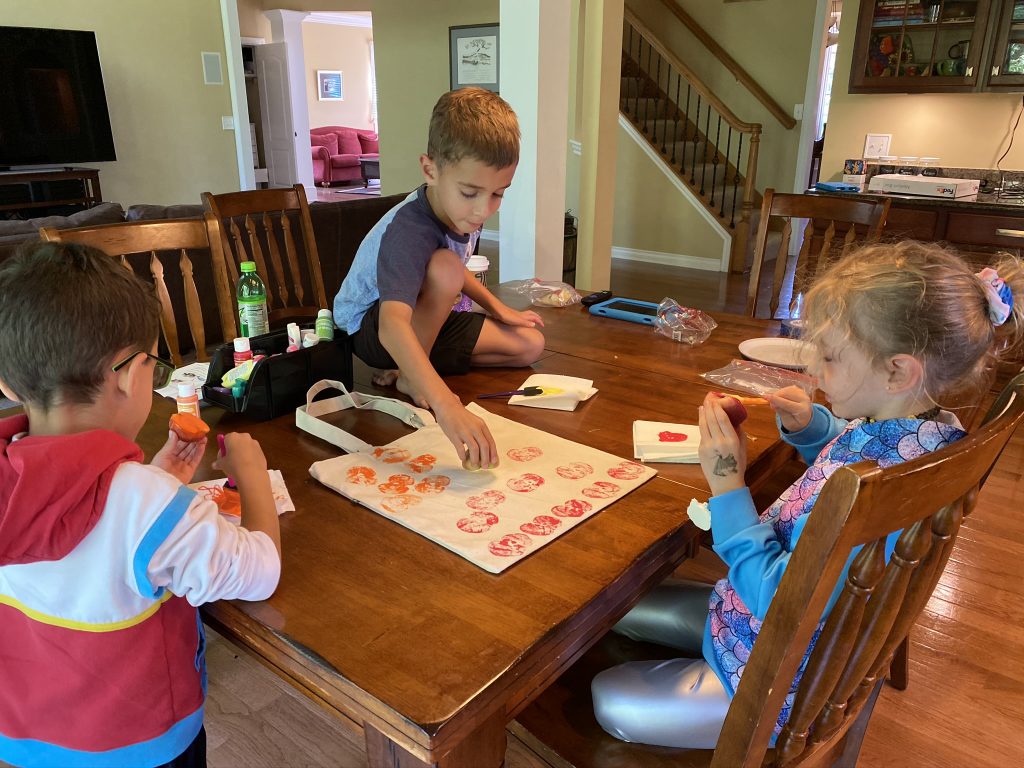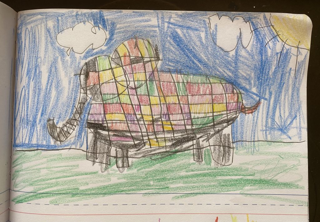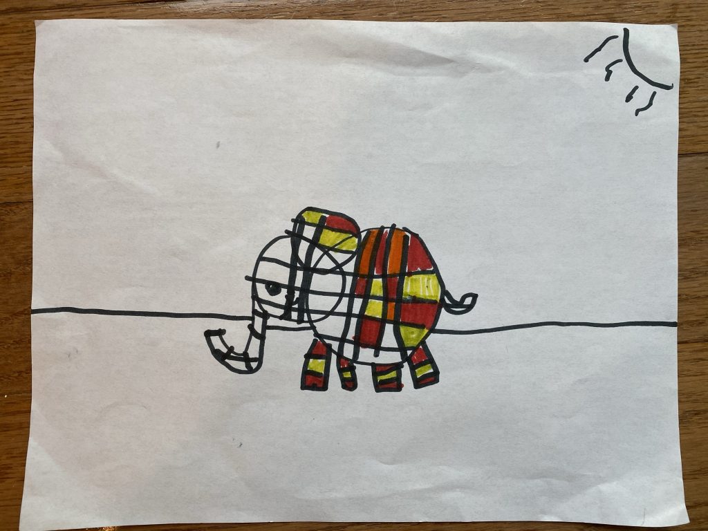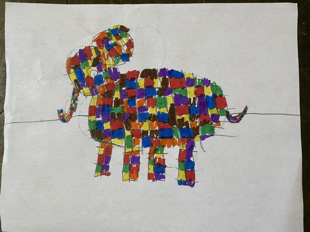 I’ve enjoyed seeing the artwork that the kids are doing “at” school. This week they made these elephants. In order it’s Amaya’s, Sammy’s and then Steven’s. Sammy’s critique of Steven’s elephant was that the background line, for perspective, was not supposed to go through the elephant.