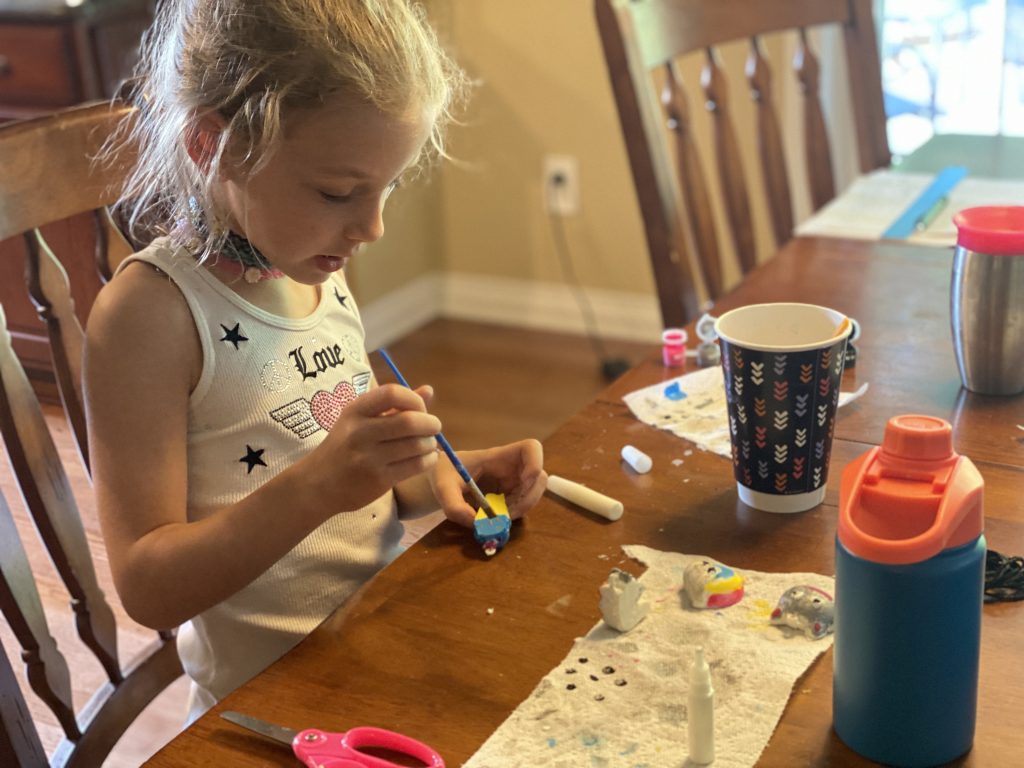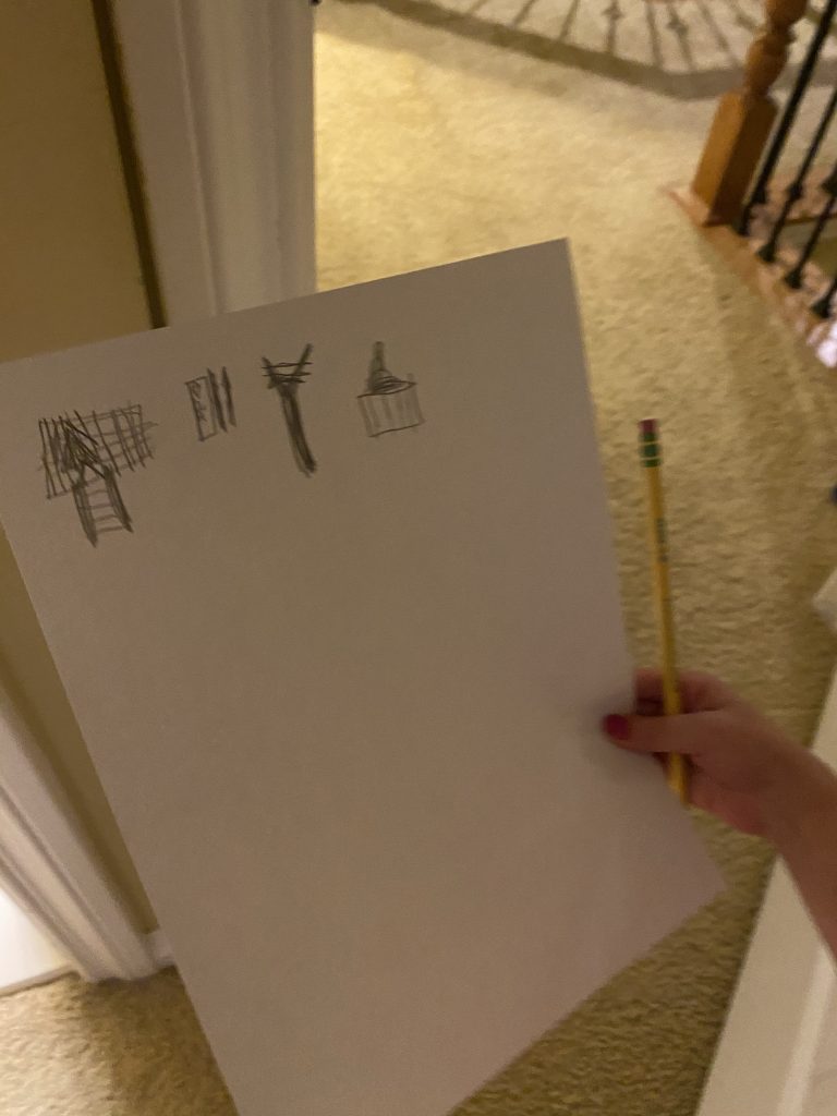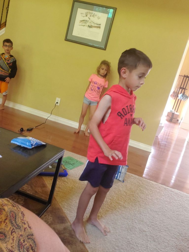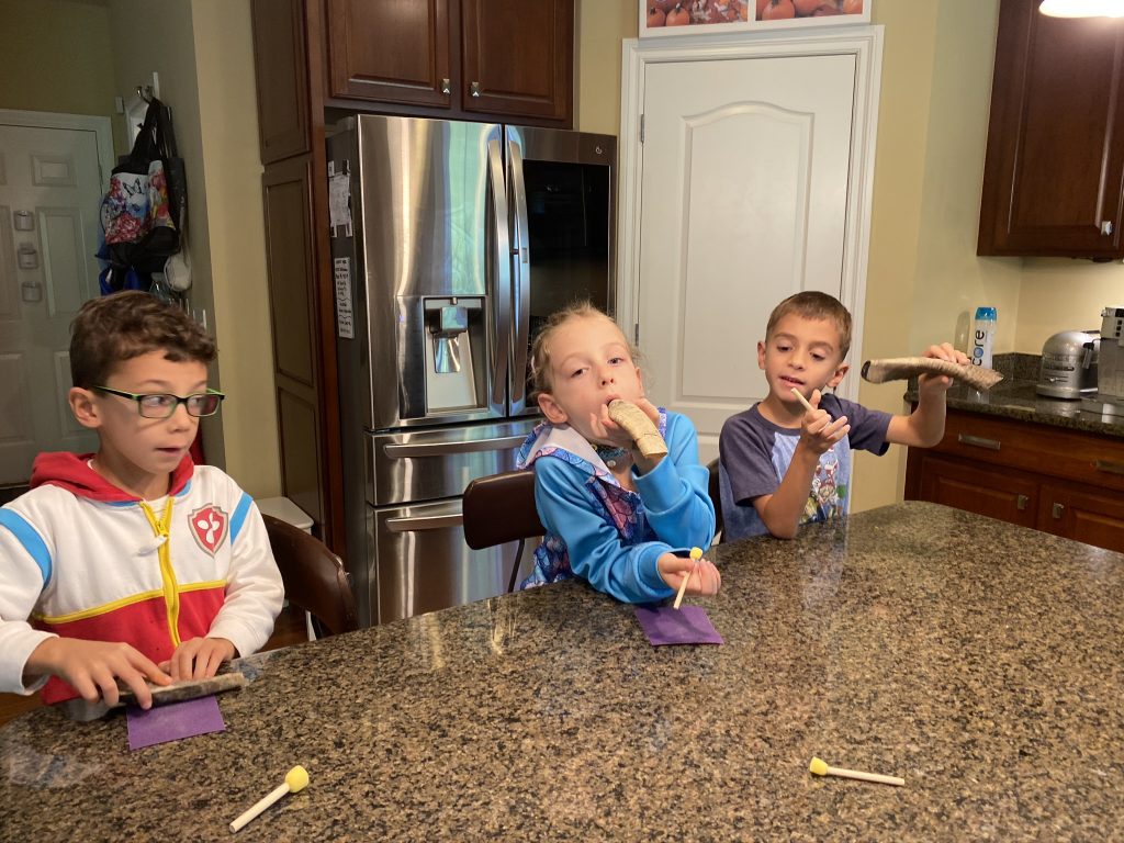 I’ve enjoyed seeing the artwork that the kids are doing “at” school. This week they made these elephants. In order it’s Amaya’s, Sammy’s and then Steven’s. Sammy’s critique of Steven’s elephant was that the background line, for perspective, was not supposed to go through the elephant.