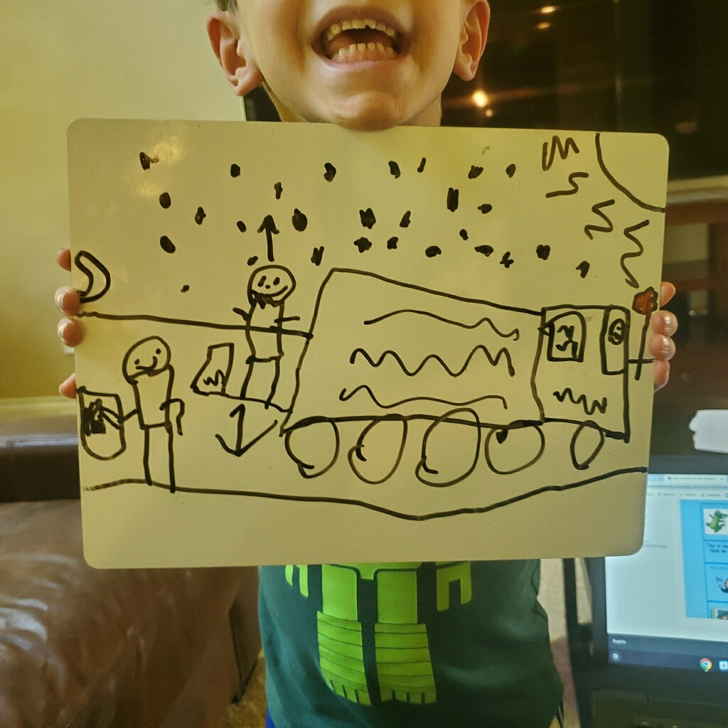 Steven told me what this is. A truck delivering something. Maybe construction materials for our street. But I can’t remember exactly and he’s busy watching our Roomba mop (Moppy) so it may live as a bit of a mystery.