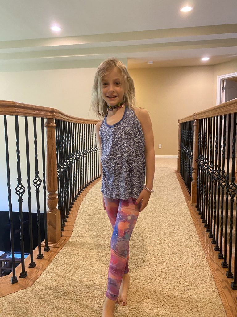 I love Amaya’s fashion choices. This is a tank top that she wears as a halter by putting her head through one of the arm holes.