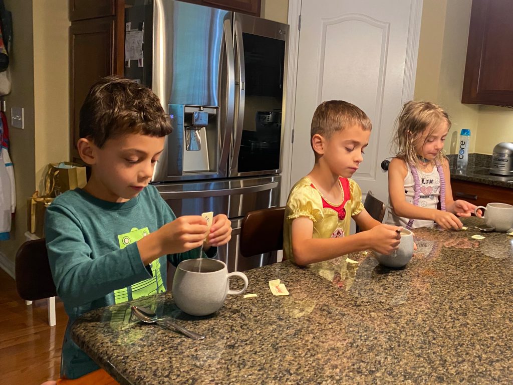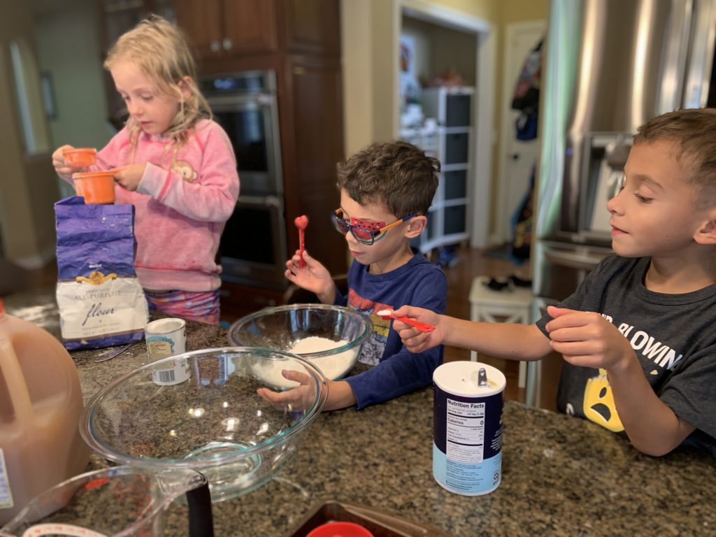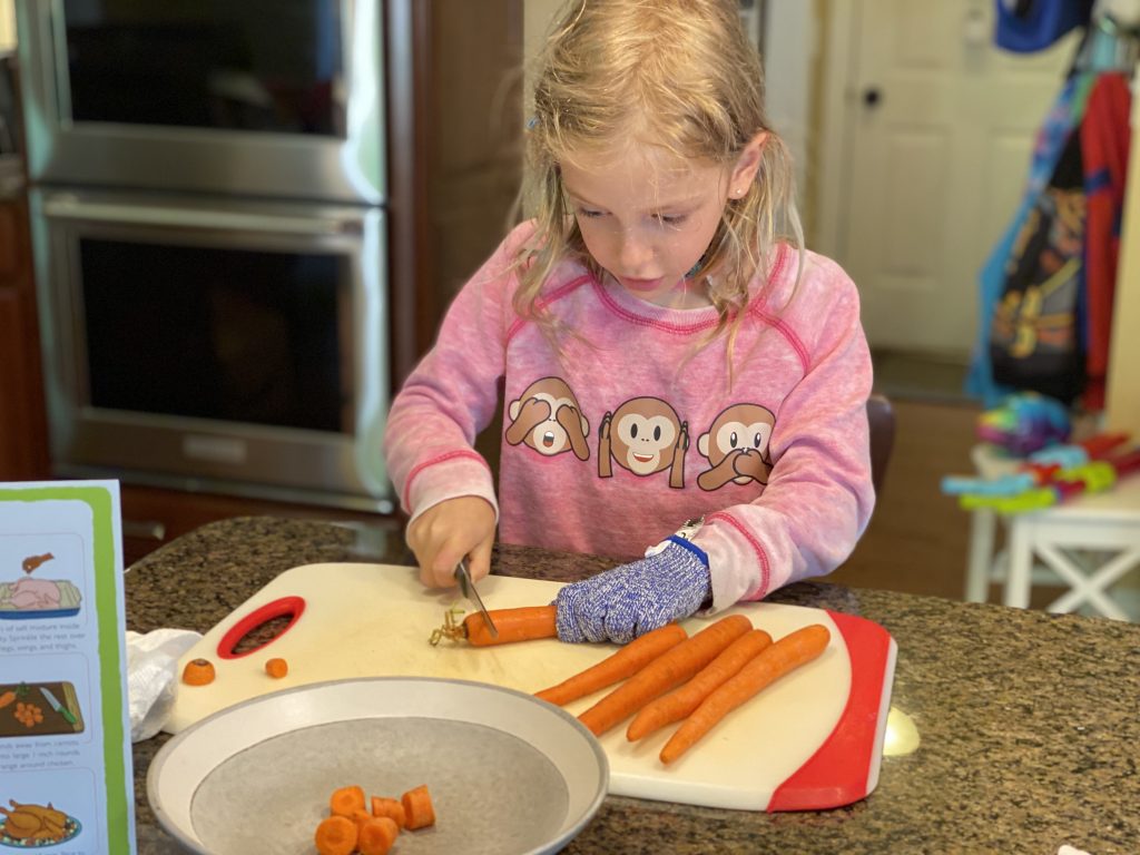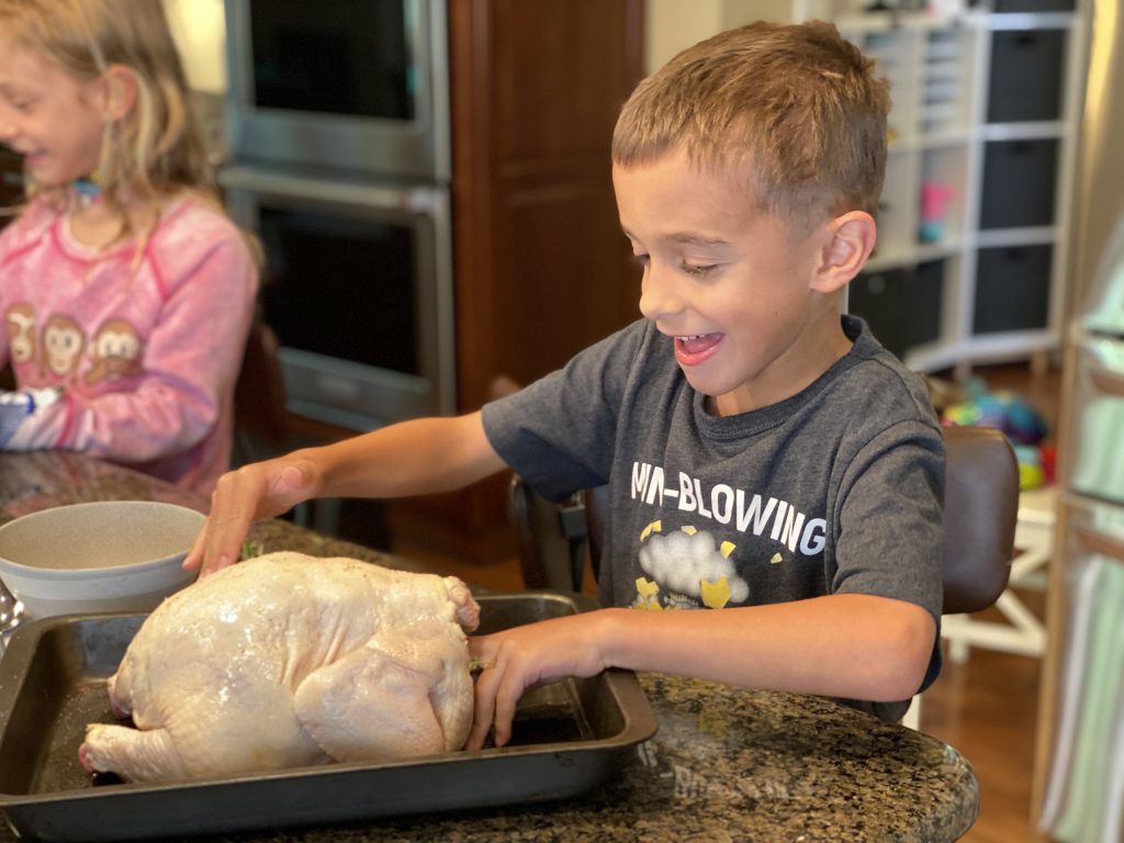 We wrapped up the day with chicken and potatoes ala Amaya and Sammy. Amaya washed, cut and seasoned the potatoes. I just added some salt and put them in the oven. Sammy prepped and seasoned the chicken all on his own, and to his own desire. Again, I just added salt (and cut the onions). We have amazing chefs.