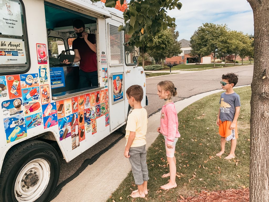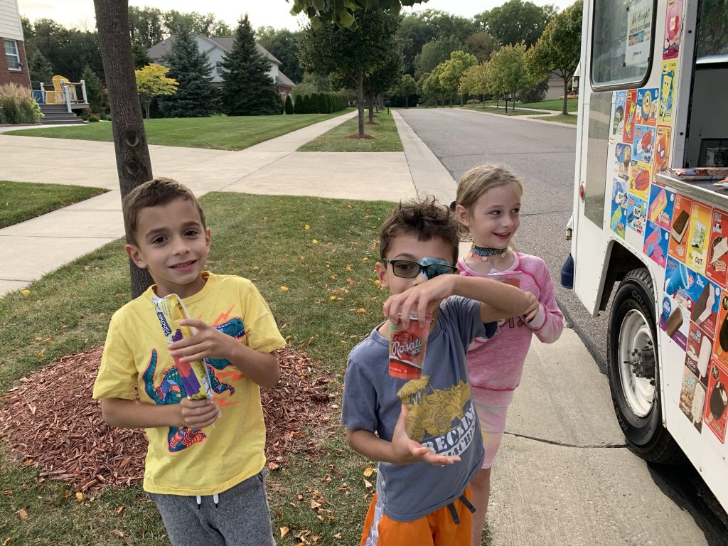 I was upstairs relaxing, before going to pick up sushi, and heard the tell-tale sounds of an ice cream truck on our street. We’ve been to ice cream trucks in NY, by Chase and Charlie’s school, but never had the fun of running outside out house for ice cream. No way we were passing that up. Even I couldn’t resist getting a Chocolate Eclair ice cream bar. Those, and Strawberry Shortcakes, were my elementary school go-tos.