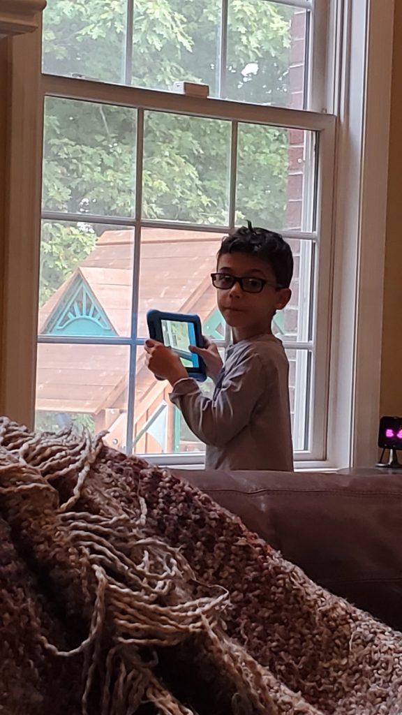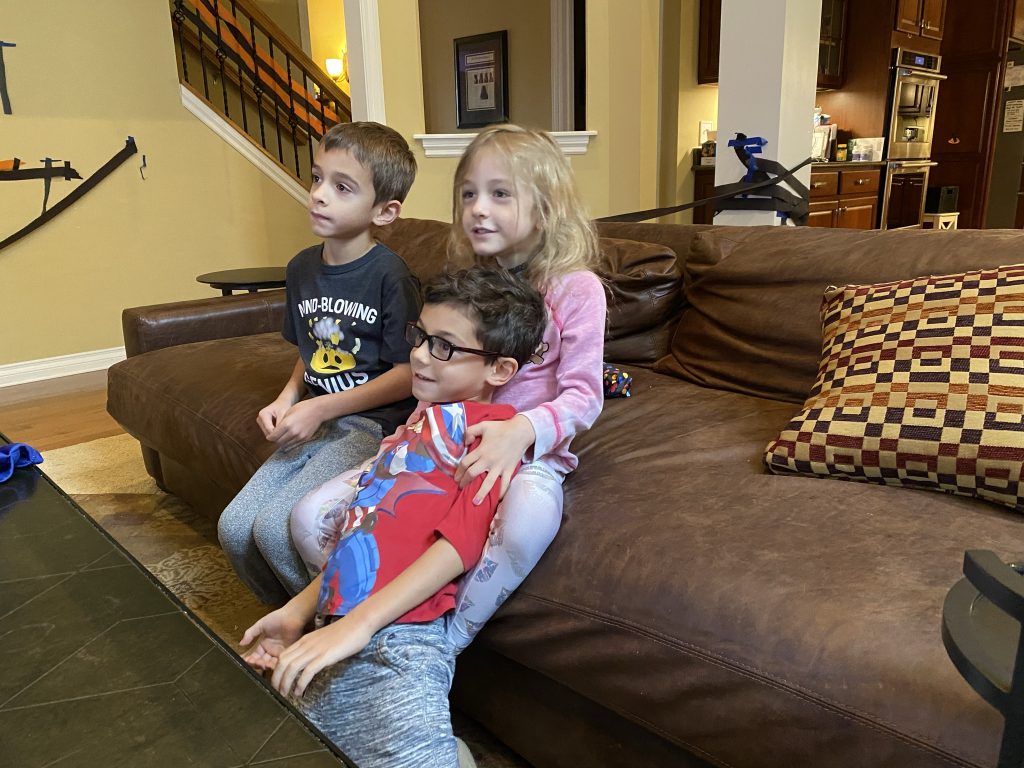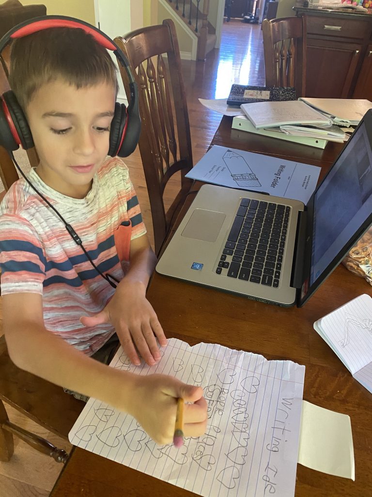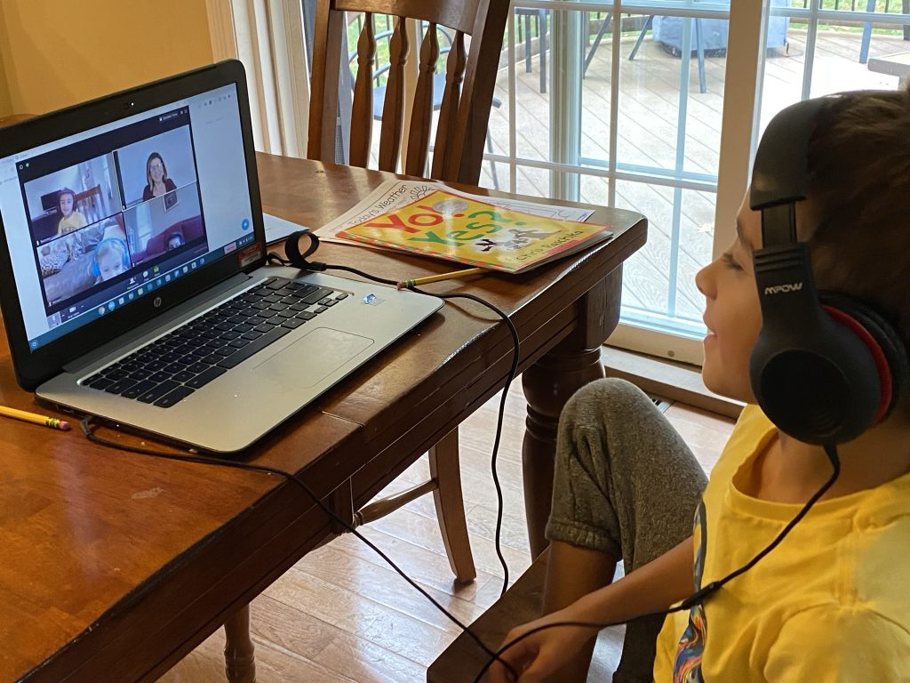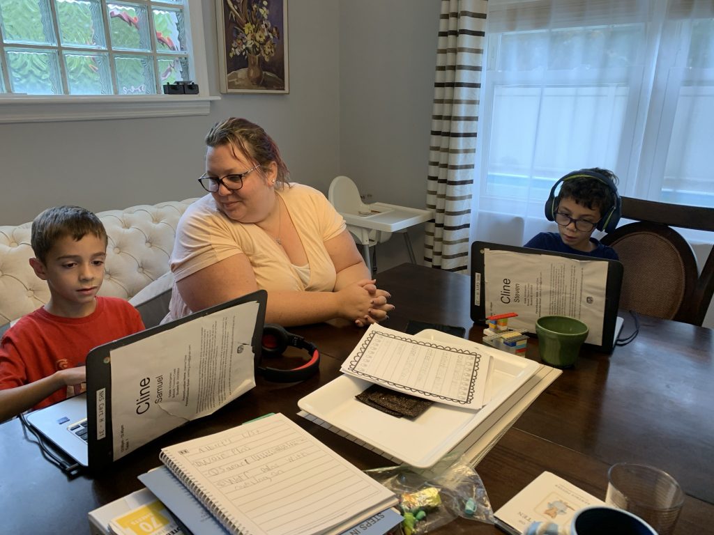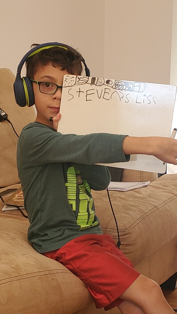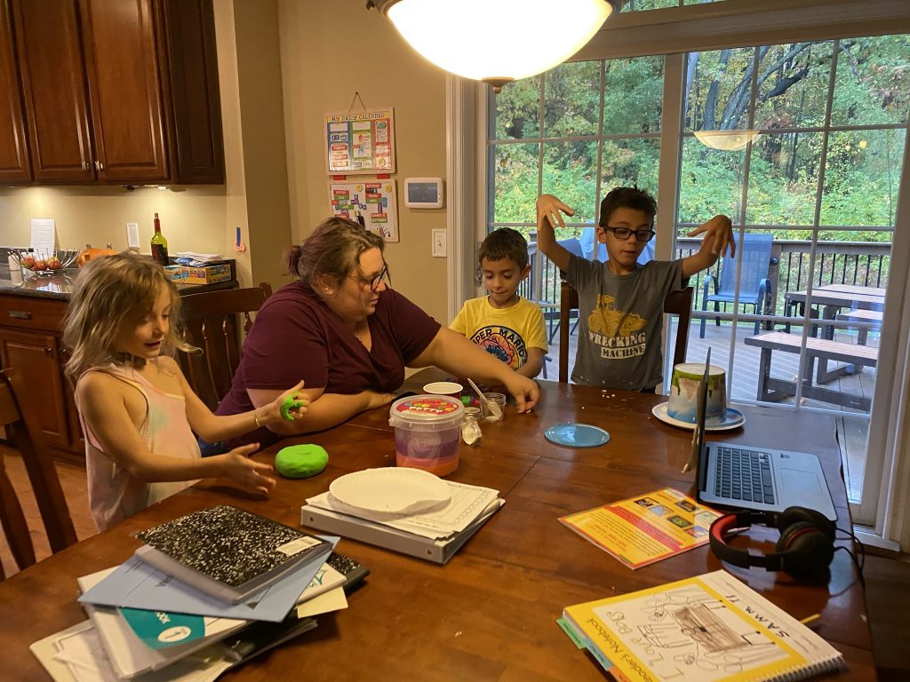 When synchronous classes end, Mrs. O’Neil offers to let anyone stay on if they need to talk to her. The Cline Kids love to stay on until the last kid leaves which has meant that, at times, they’re the only ones left chatting with Mrs. O’Neil. Right there you can see Steven, Sammy, Amaya and Mrs. O’Neil wrapping up the day together lol.
