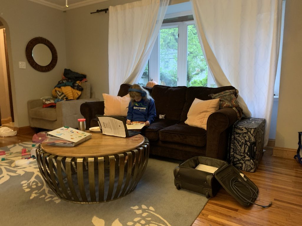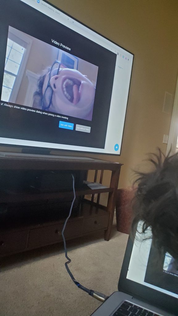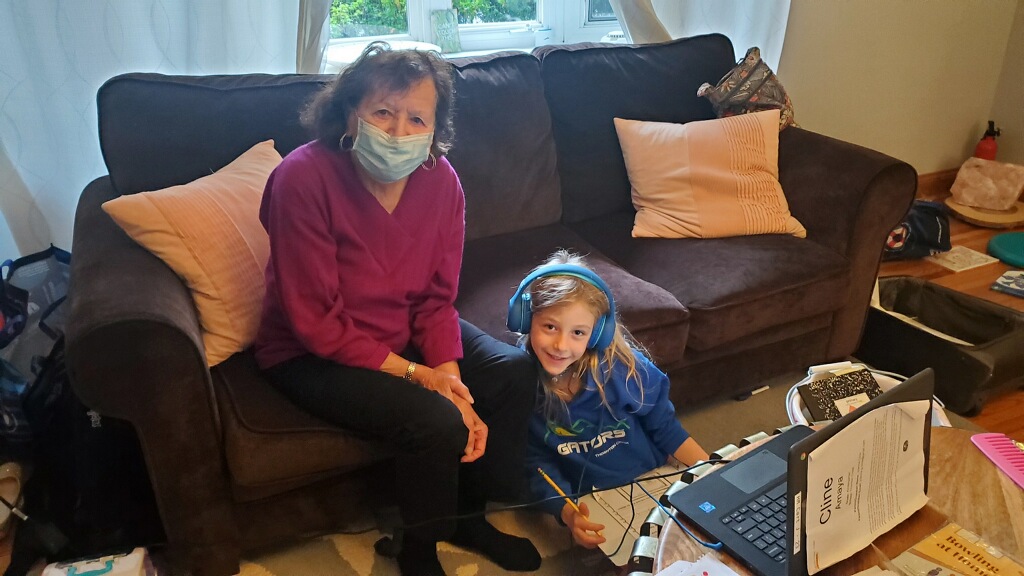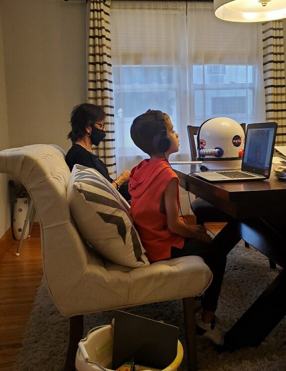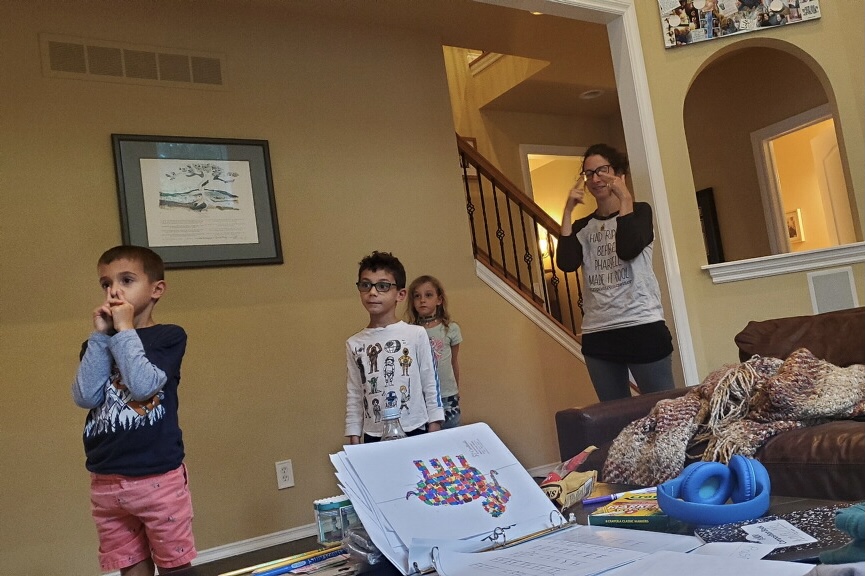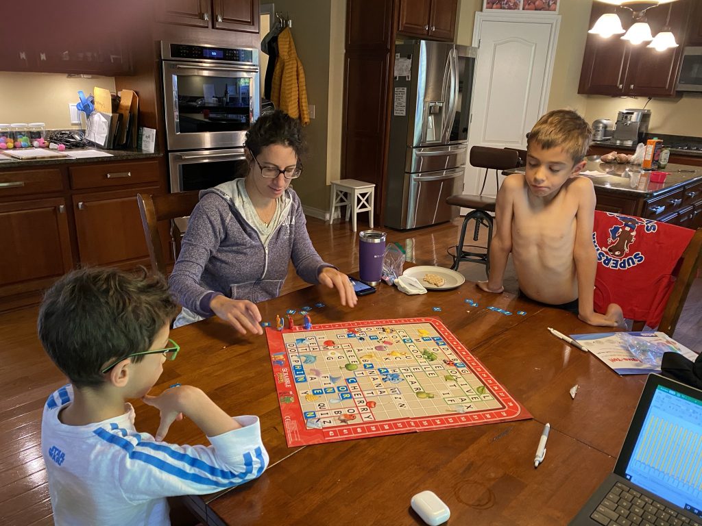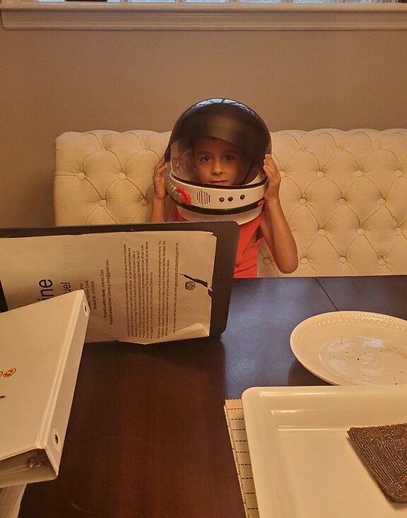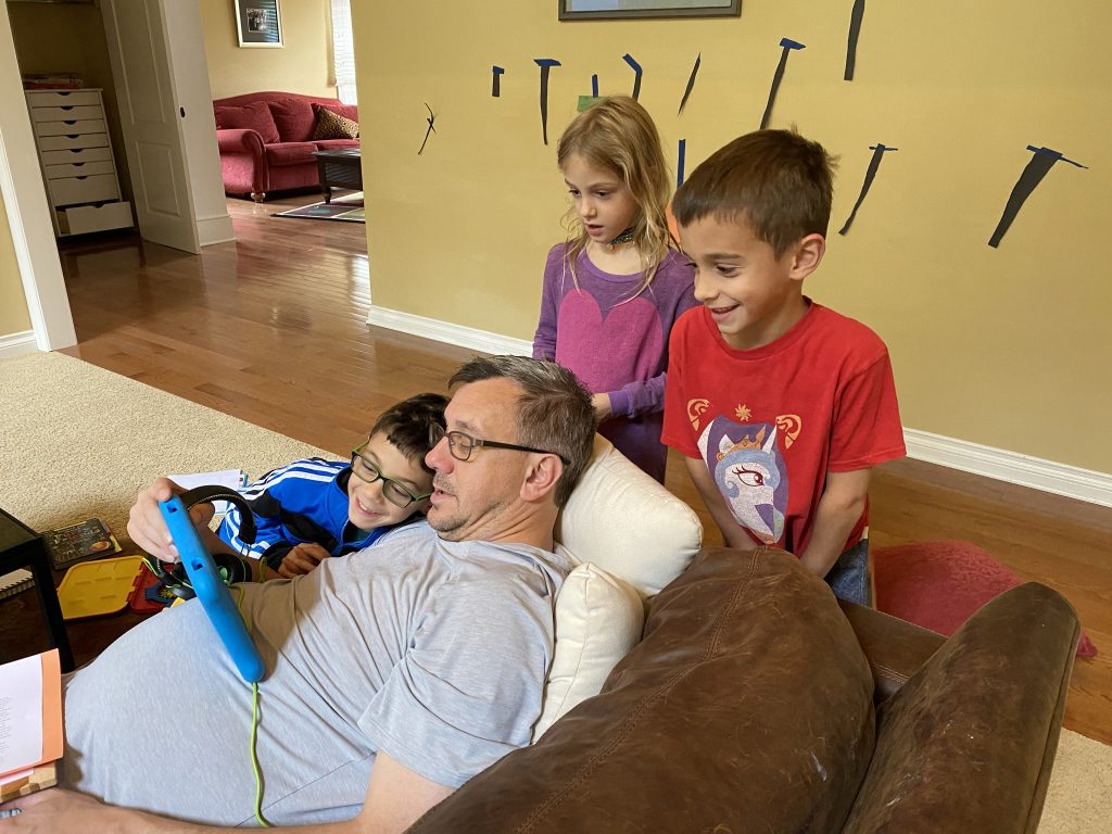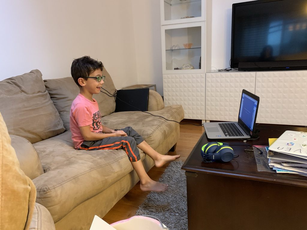 When synchronous classes end, Mrs. O’Neil offers to let anyone stay on if they need to talk to her. The Cline Kids love to stay on until the last kid leaves which has meant that, at times, they’re the only ones left chatting with Mrs. O’Neil. Right there you can see Steven, Sammy, Amaya and Mrs. O’Neil wrapping up the day together lol.