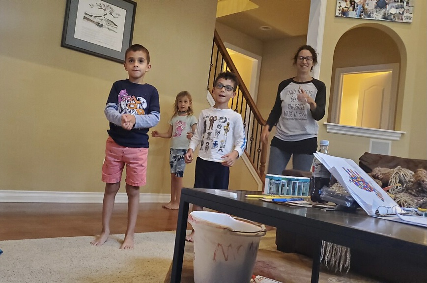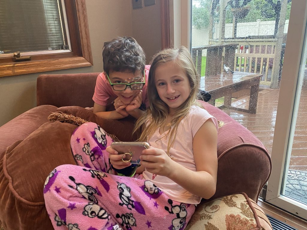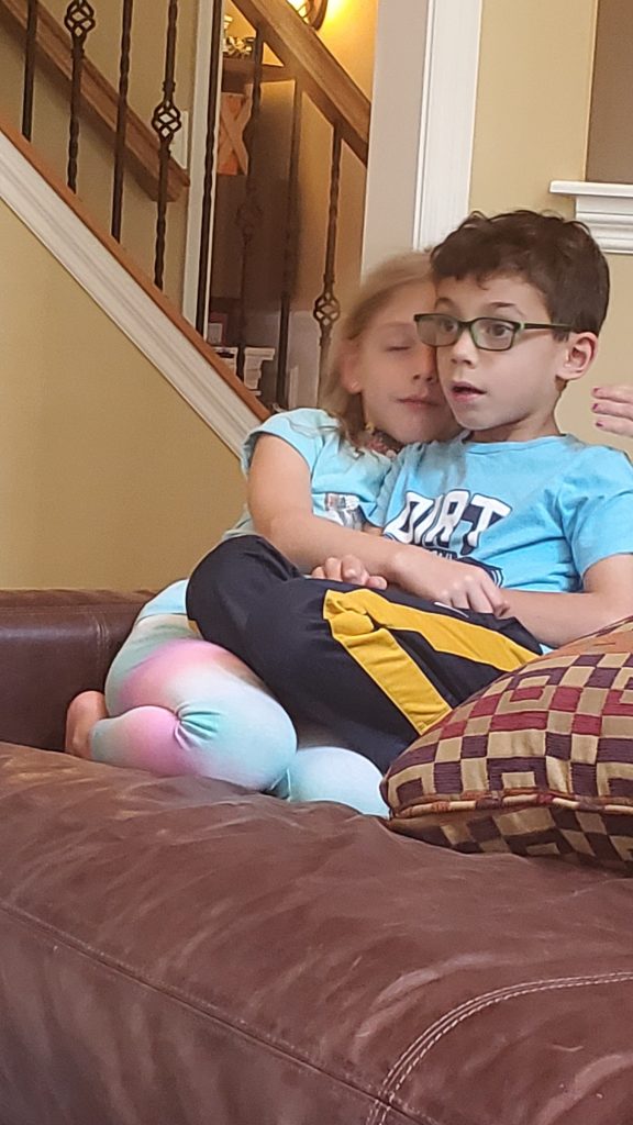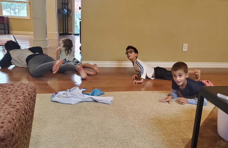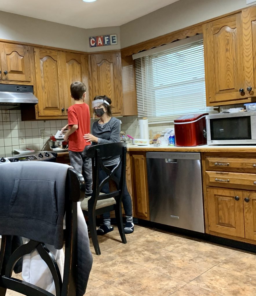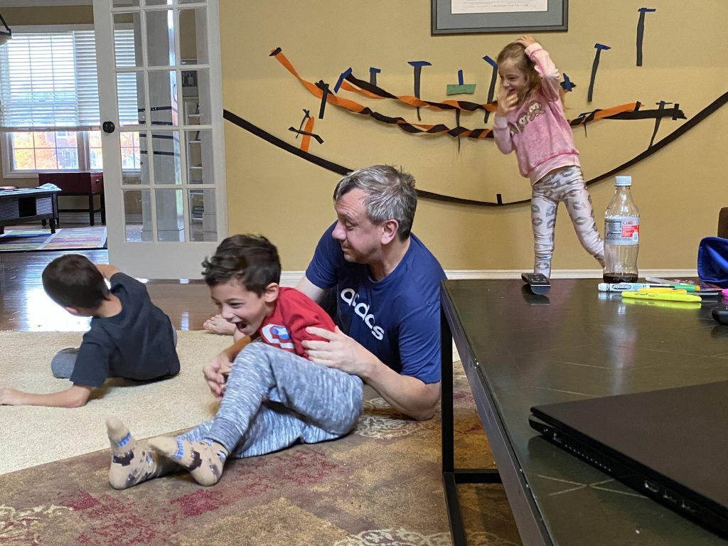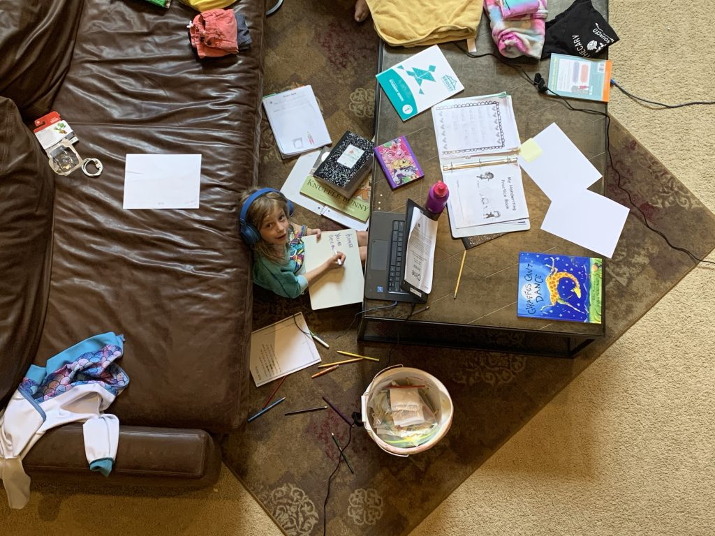 When synchronous classes end, Mrs. O’Neil offers to let anyone stay on if they need to talk to her. The Cline Kids love to stay on until the last kid leaves which has meant that, at times, they’re the only ones left chatting with Mrs. O’Neil. Right there you can see Steven, Sammy, Amaya and Mrs. O’Neil wrapping up the day together lol.