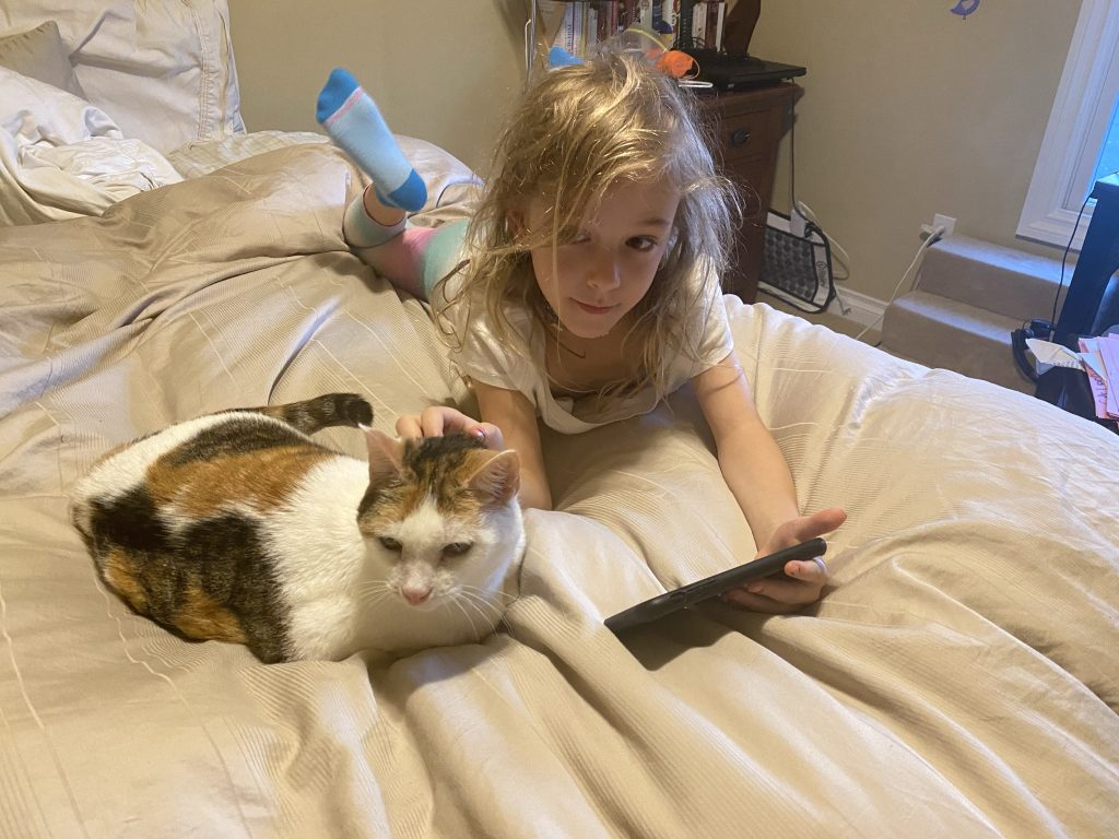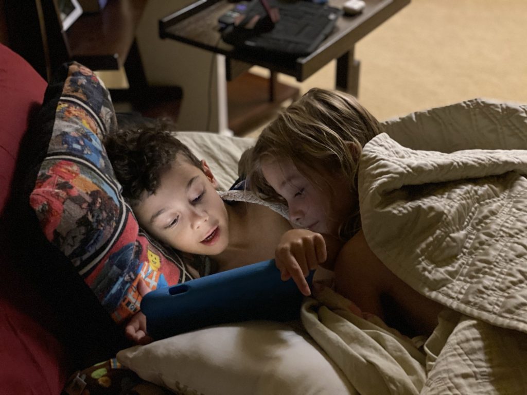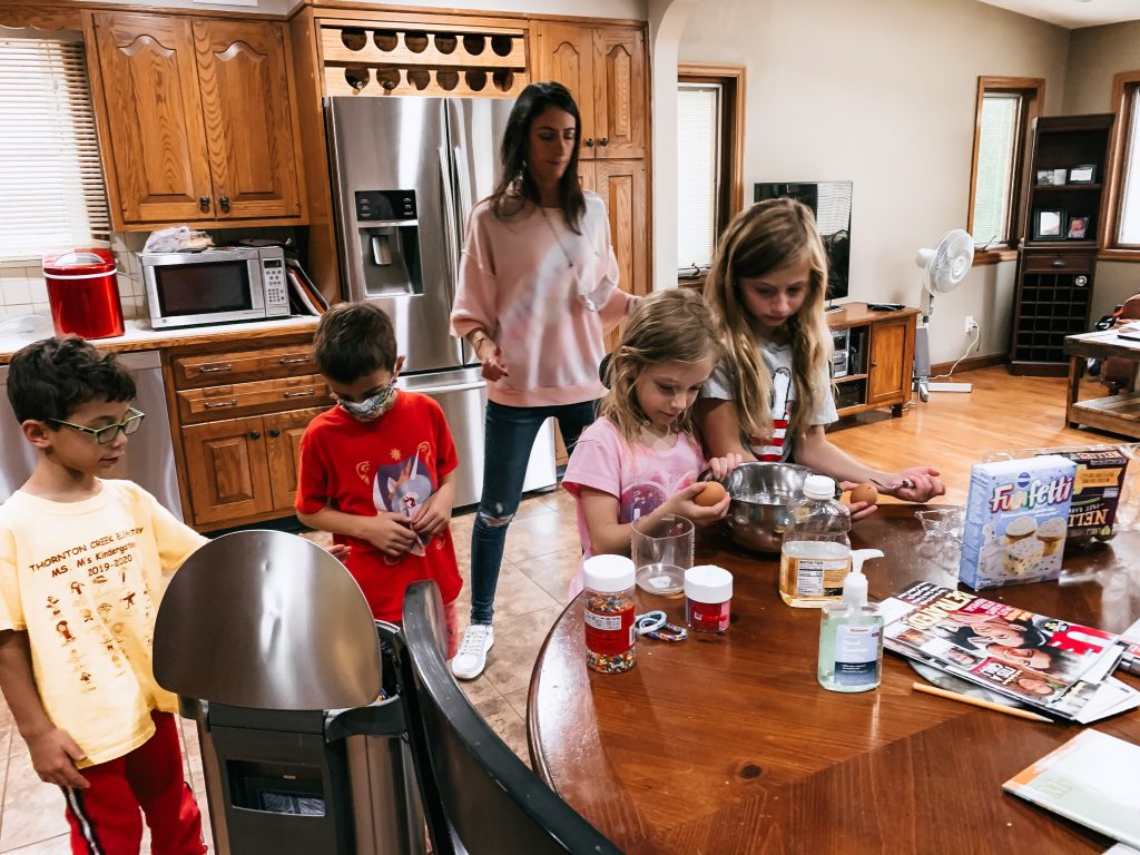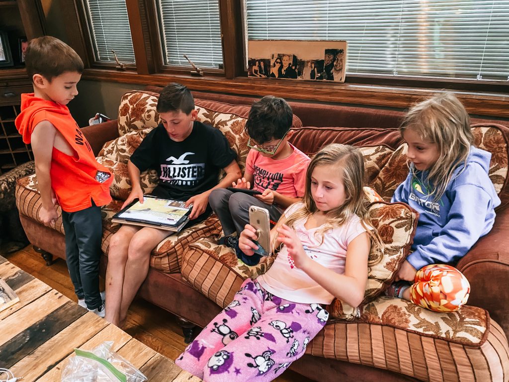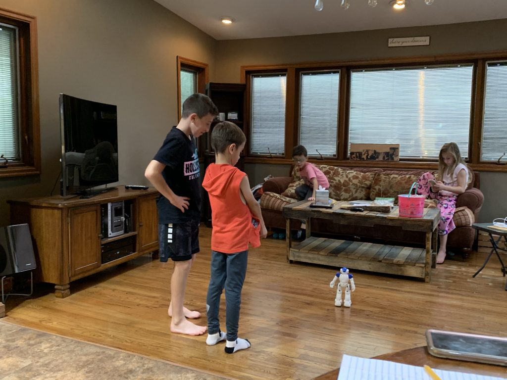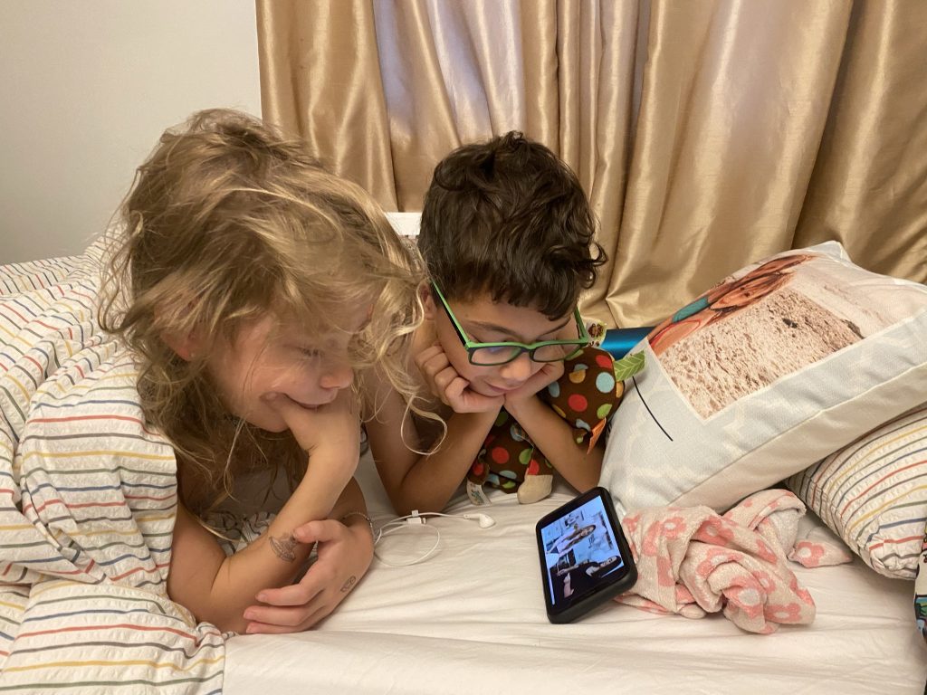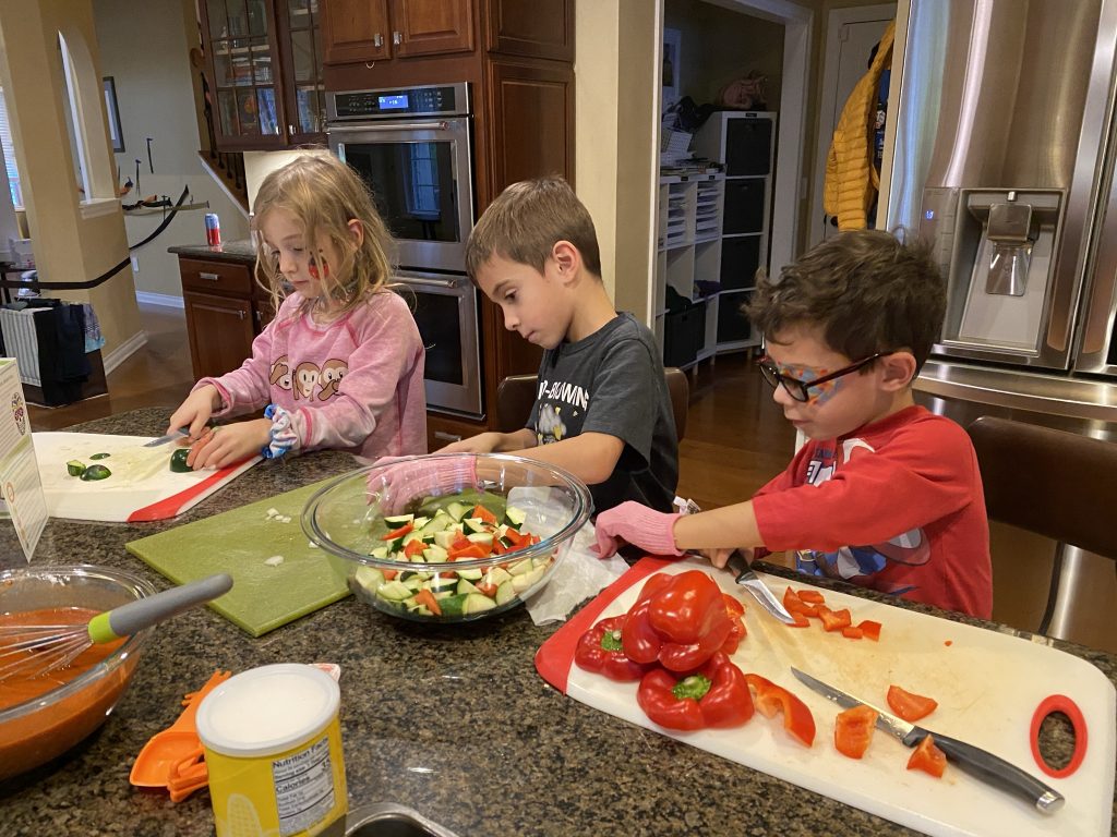 When synchronous classes end, Mrs. O’Neil offers to let anyone stay on if they need to talk to her. The Cline Kids love to stay on until the last kid leaves which has meant that, at times, they’re the only ones left chatting with Mrs. O’Neil. Right there you can see Steven, Sammy, Amaya and Mrs. O’Neil wrapping up the day together lol.