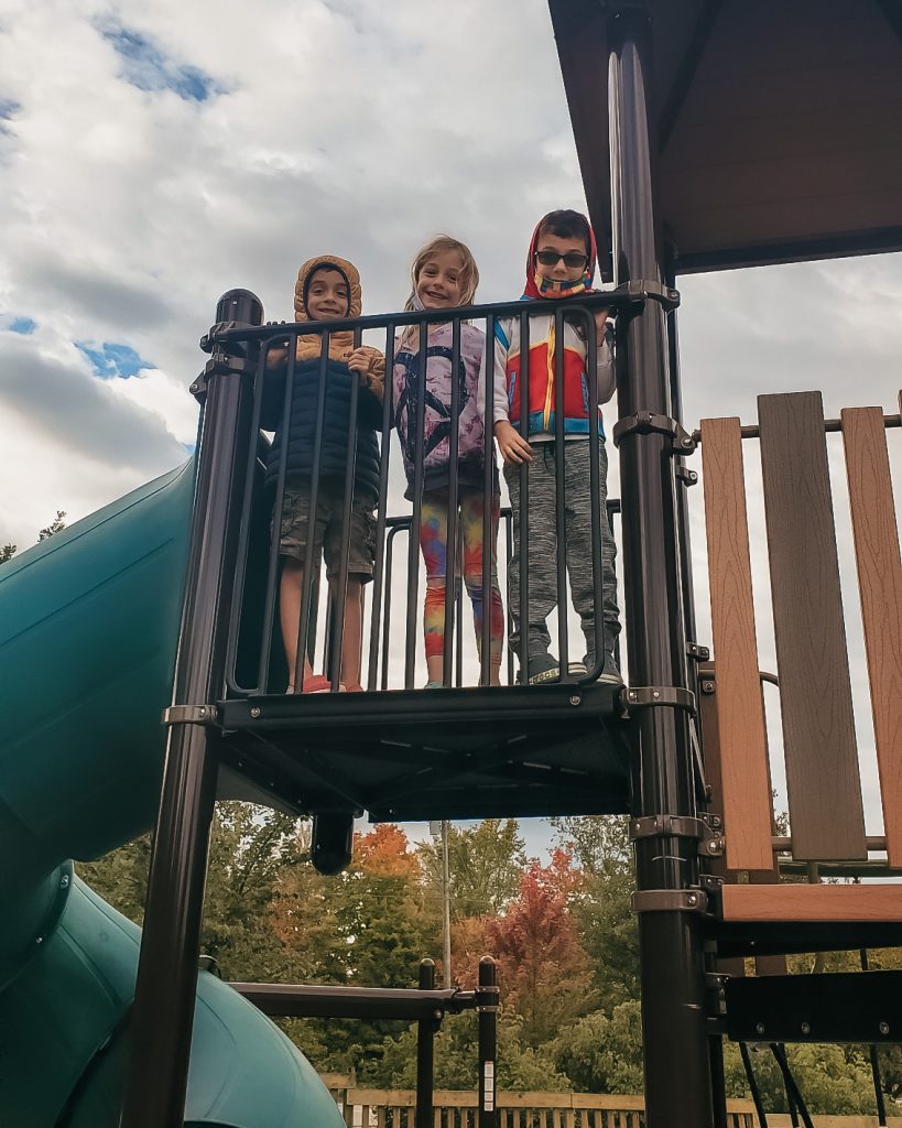 This pretty much sums up fall in Michigan lol. Sammy wasn’t ready for a jacket but wanted a little something to fight the chill. 🙂