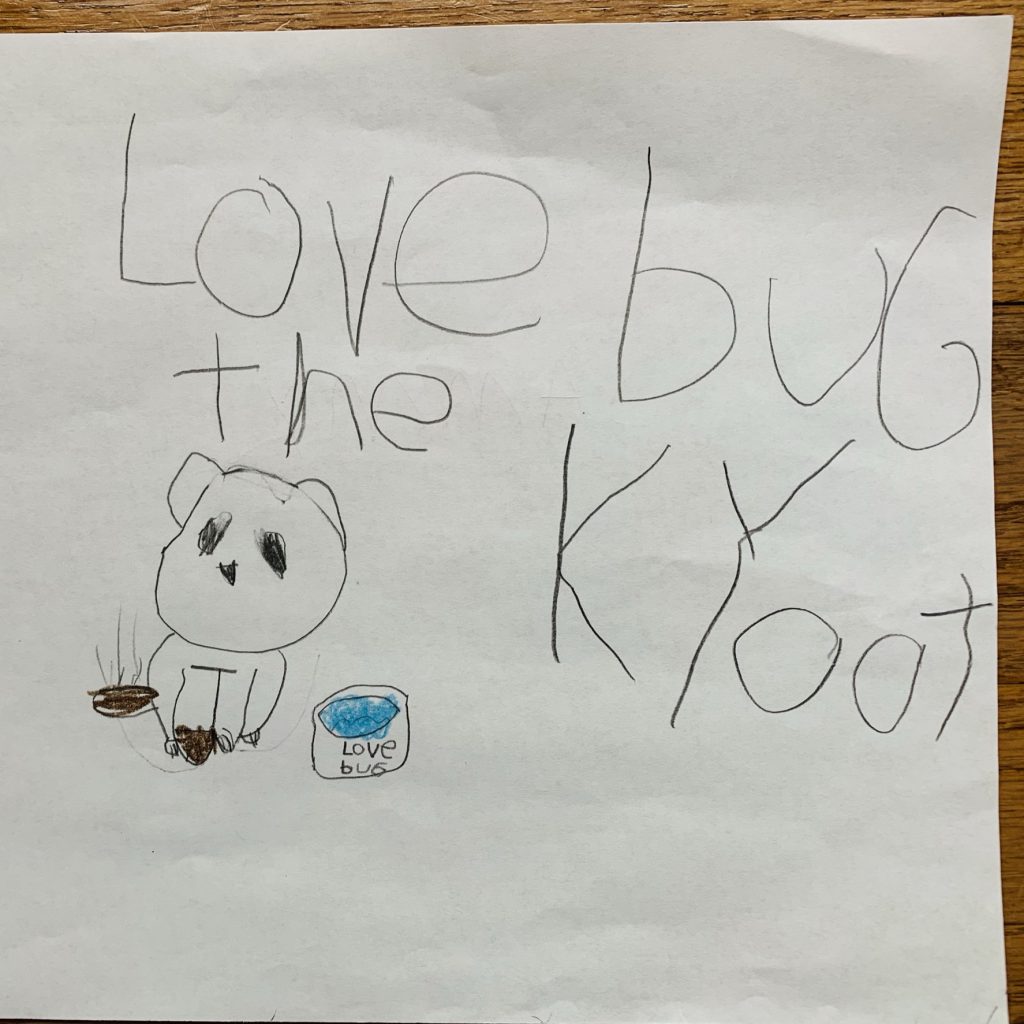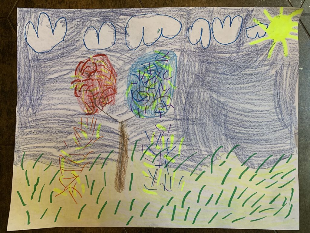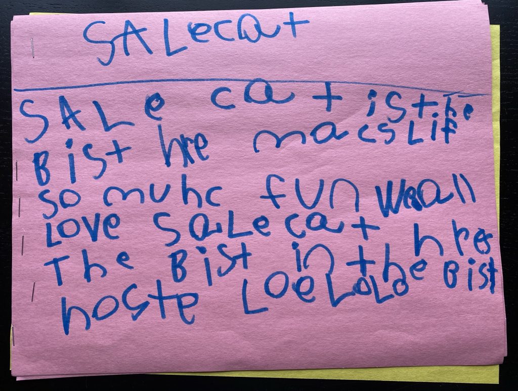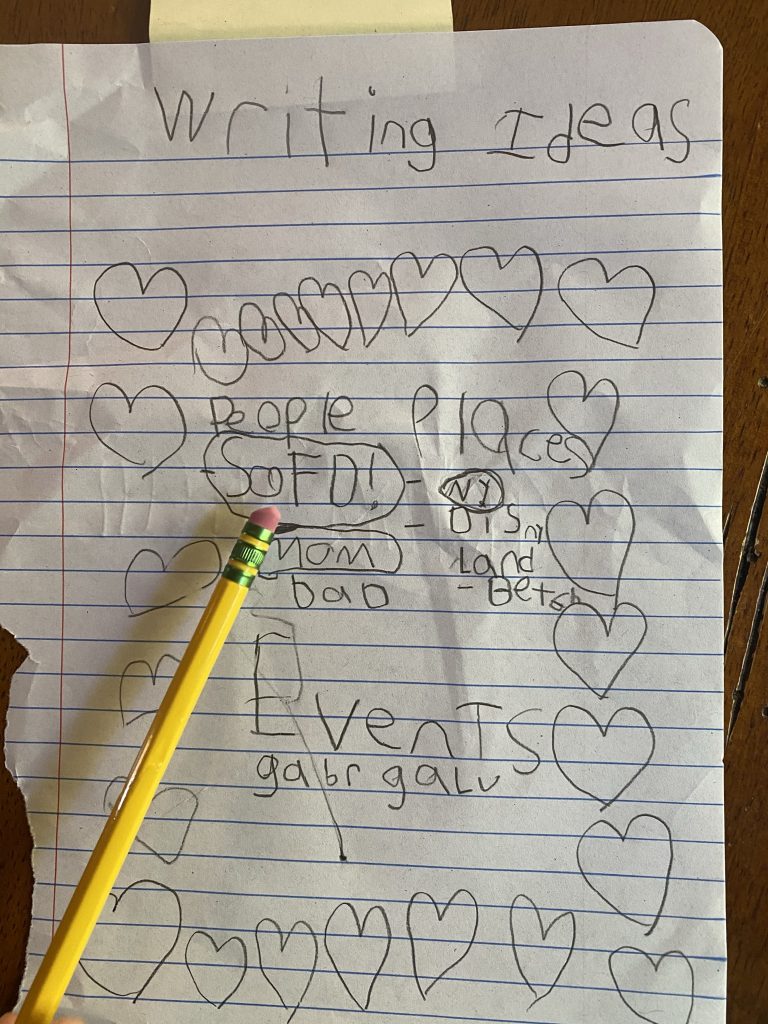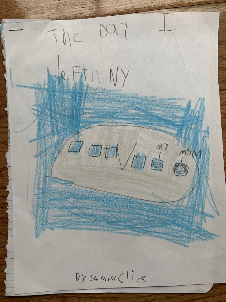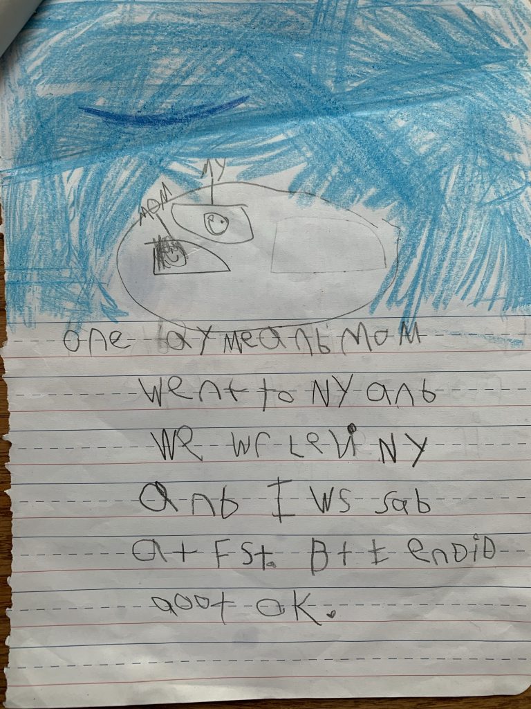 “I Love You, Mommy by Steven. When you come downstairs in the week I smile. When you go back up I am sad but I know it’s ok.”