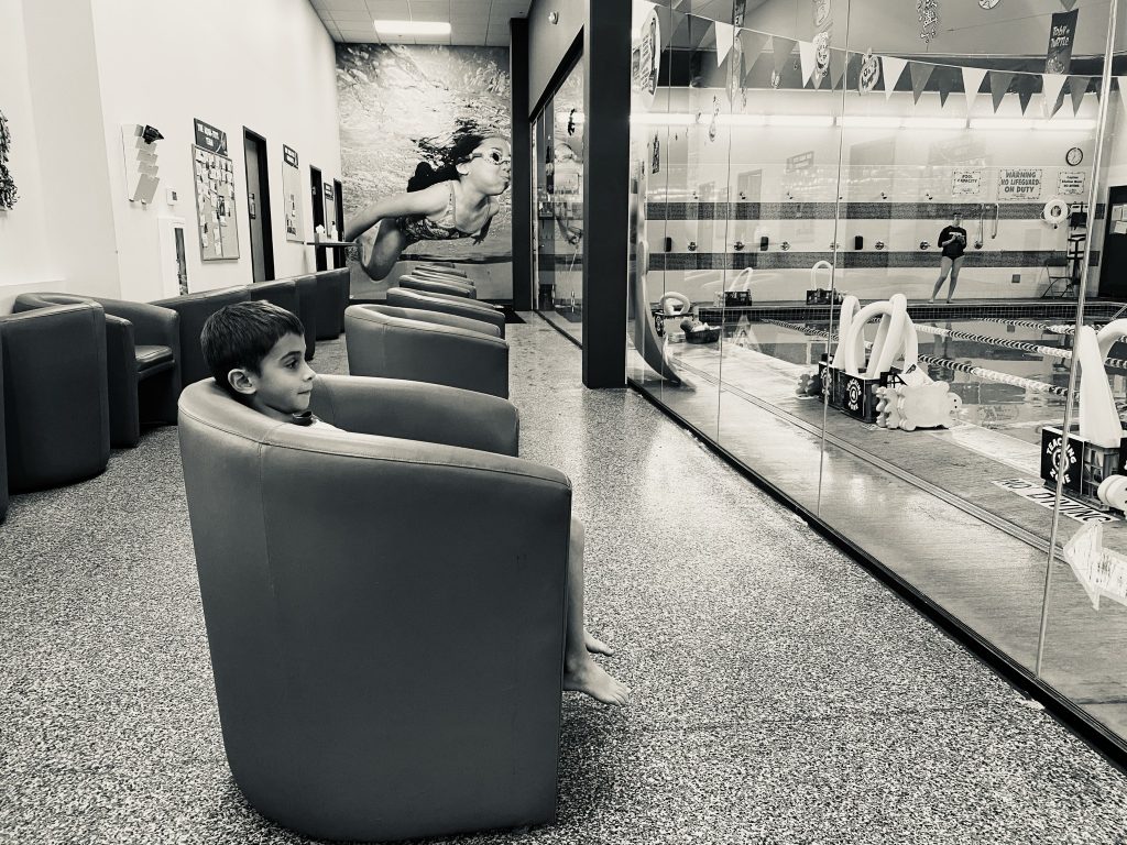 Steven is waffling on putting his face in the water. He’s done it but he’s still not excited about it.