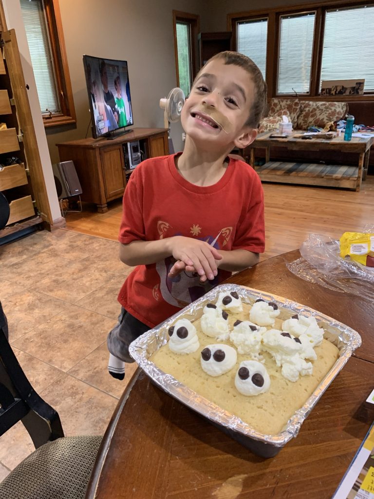 Sammy glows! This is definitely, and understandably, his favorite part of his costume.