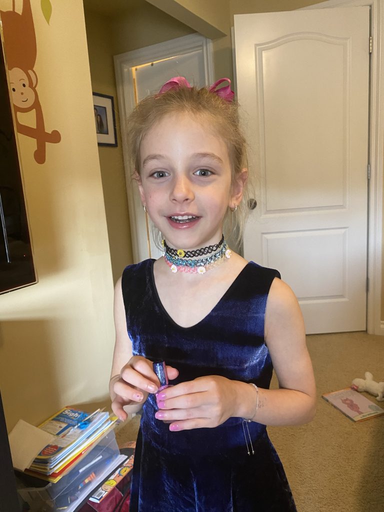 Amaya and I negotiated clear lip gloss only for photos. This child would have otherwise showed up in a full face of makeup.