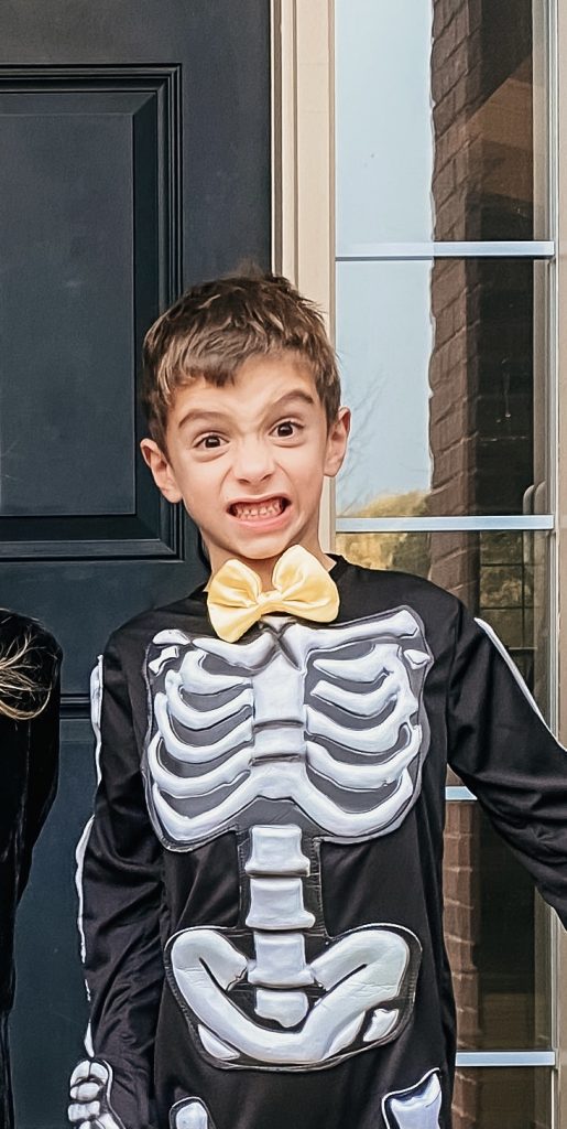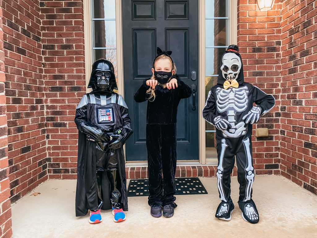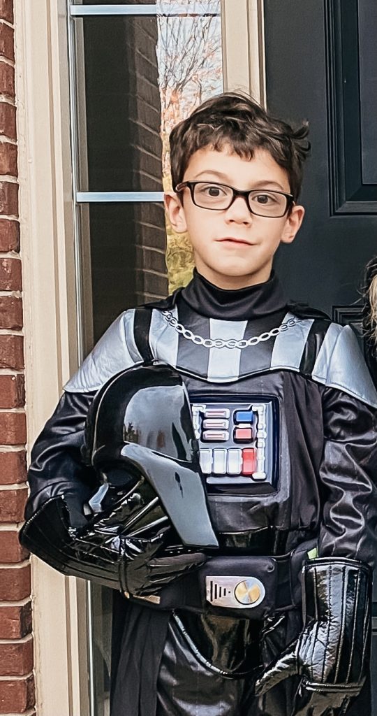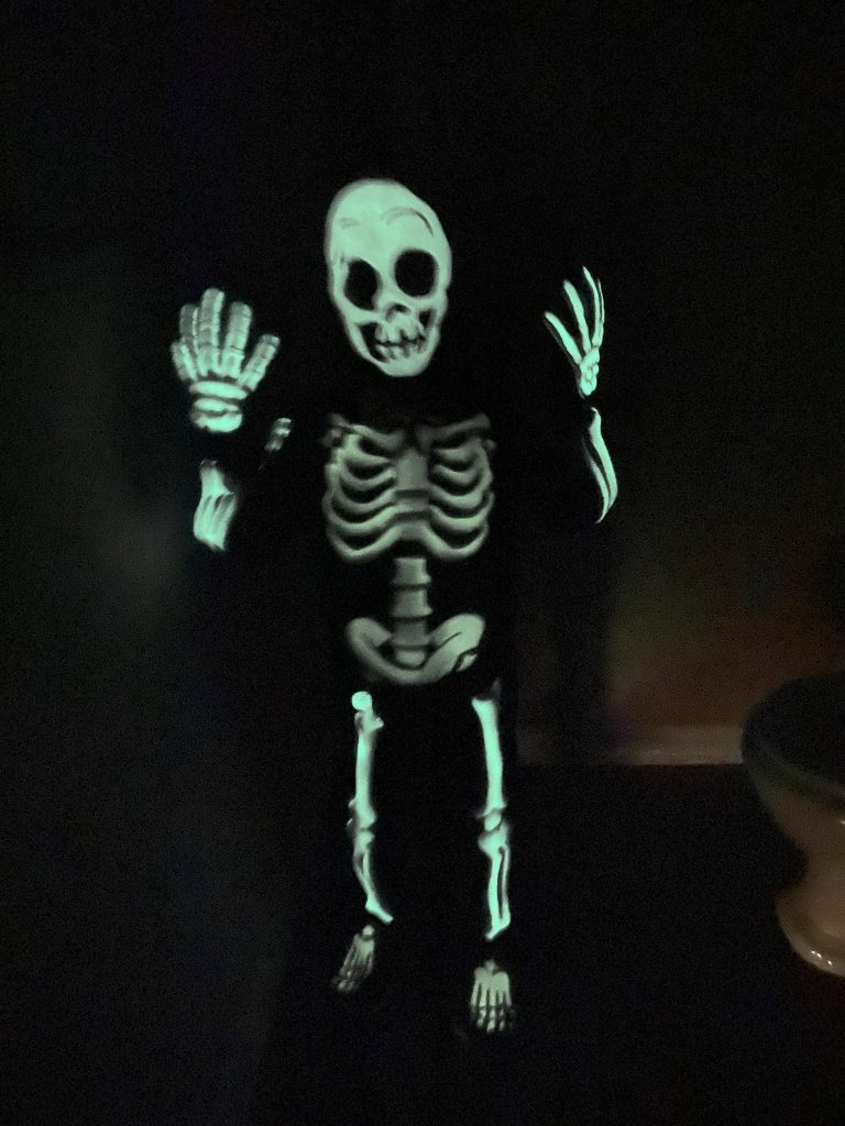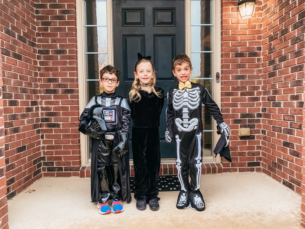 This week SSA did a test run of their Halloween costumes. We have Darth Vader, a cat and a glow in the dark skeleton. Three happy kids!