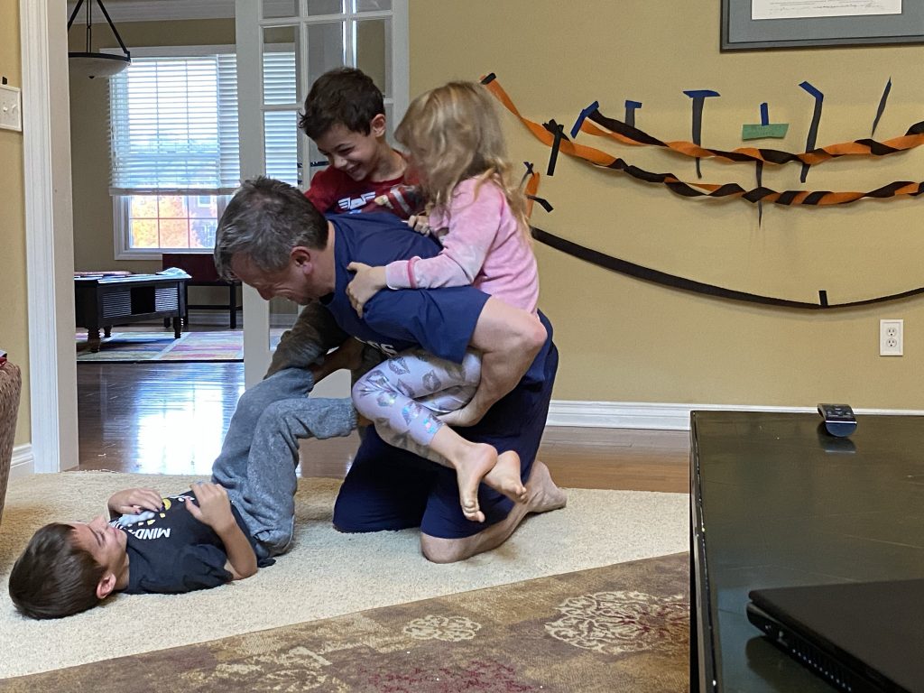 The kids definitely have the perception of me working more than I did before, even if only because we’re all home together, but my lack of commute (as short as it was) gets me back engaged with them earlier than I would have if I was going into the office and the mid-day Hellos are highlights of my day.