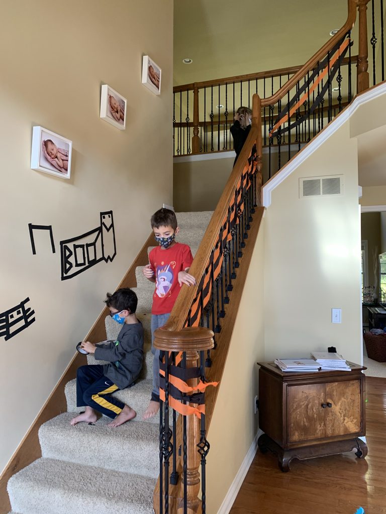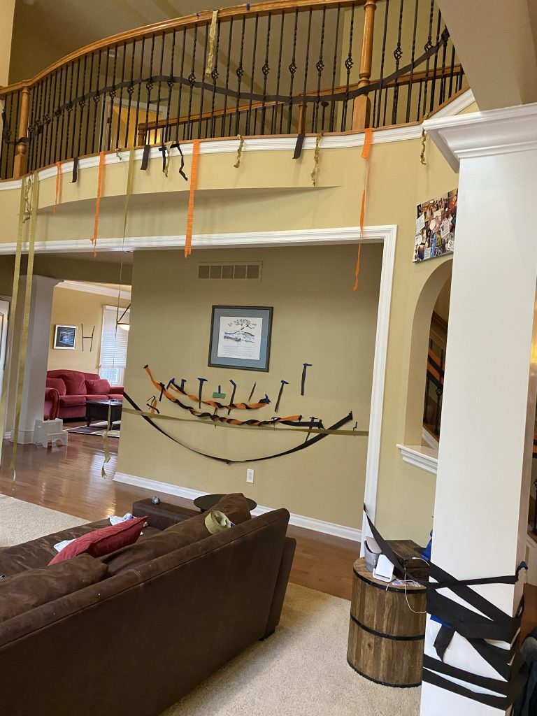 The kids got busy with the continuation of their Halloween decorating. Streamers, streamers everywhere.