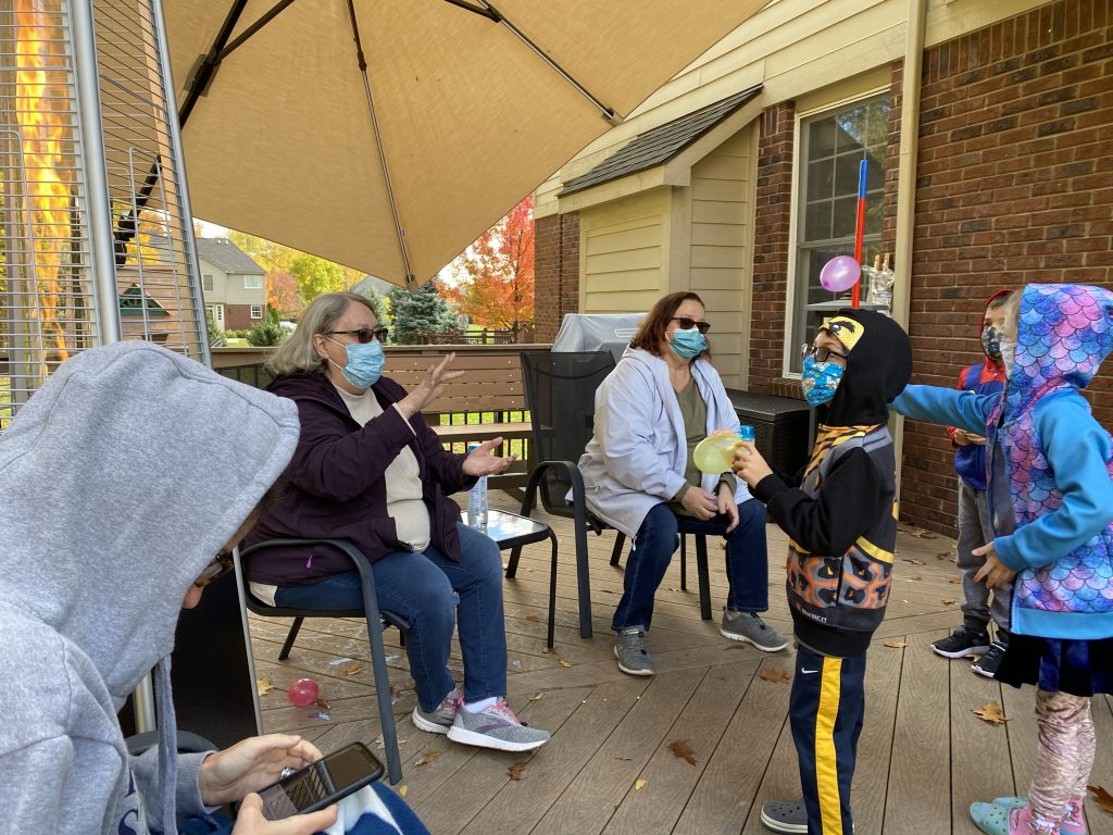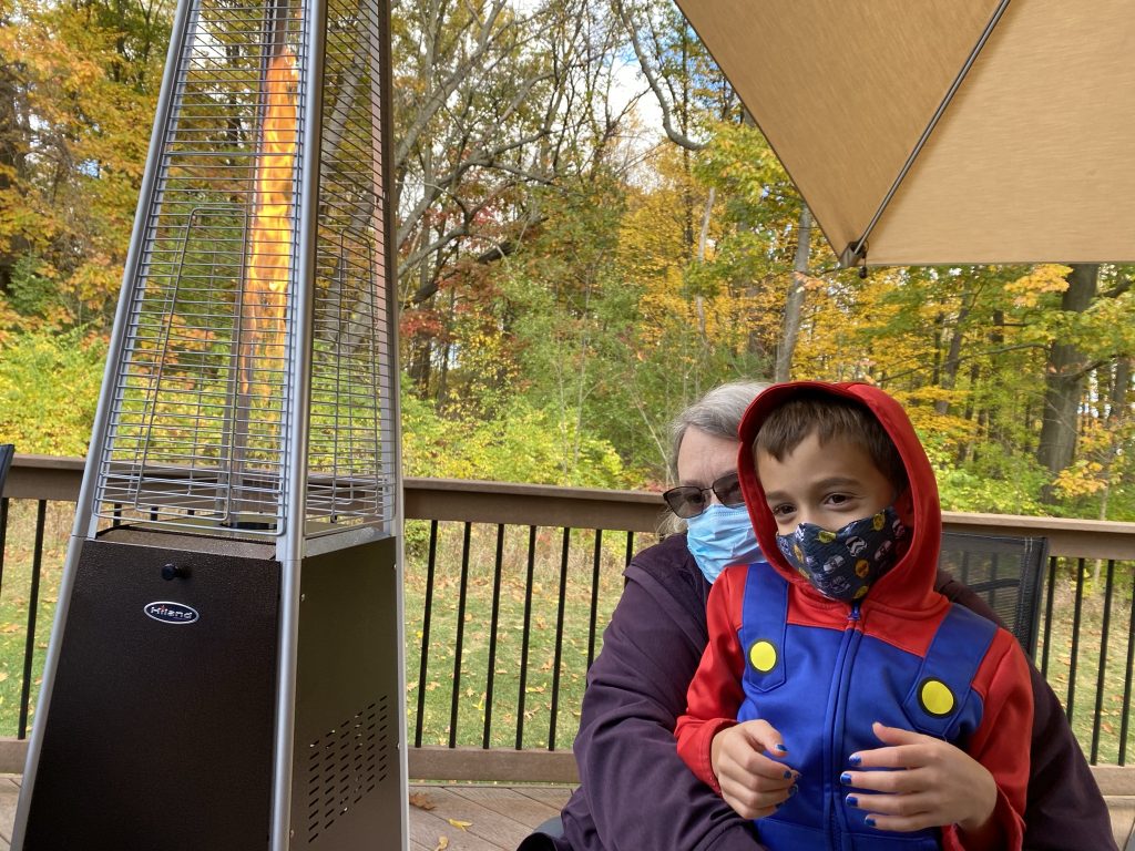 For the first Sparty football game of the season, Grandma Sunshine and Aunt Annette came to visit. We made it work outside with a heater, a tv and roku. Pretty, cool!