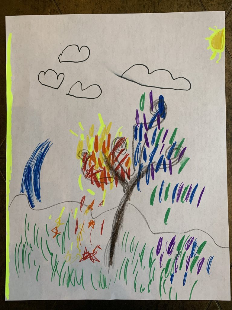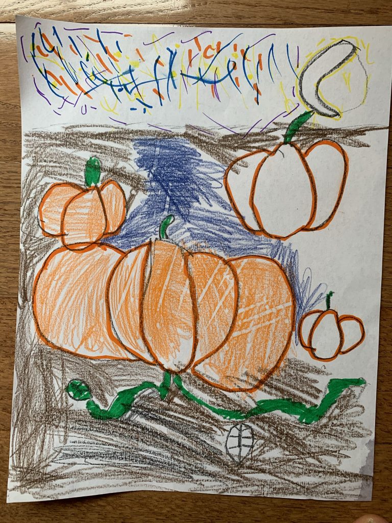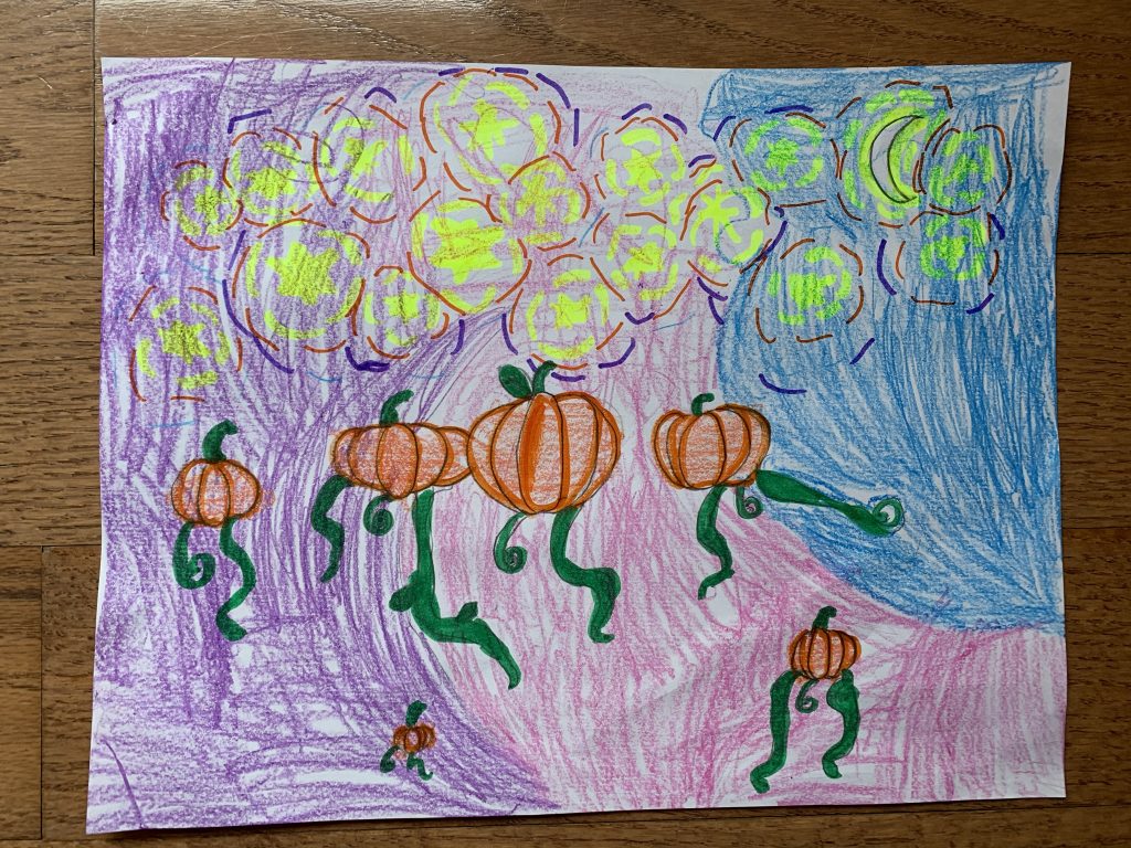 During this week’s art class, the kids did some Van Gogh inspired pumpkin art.
