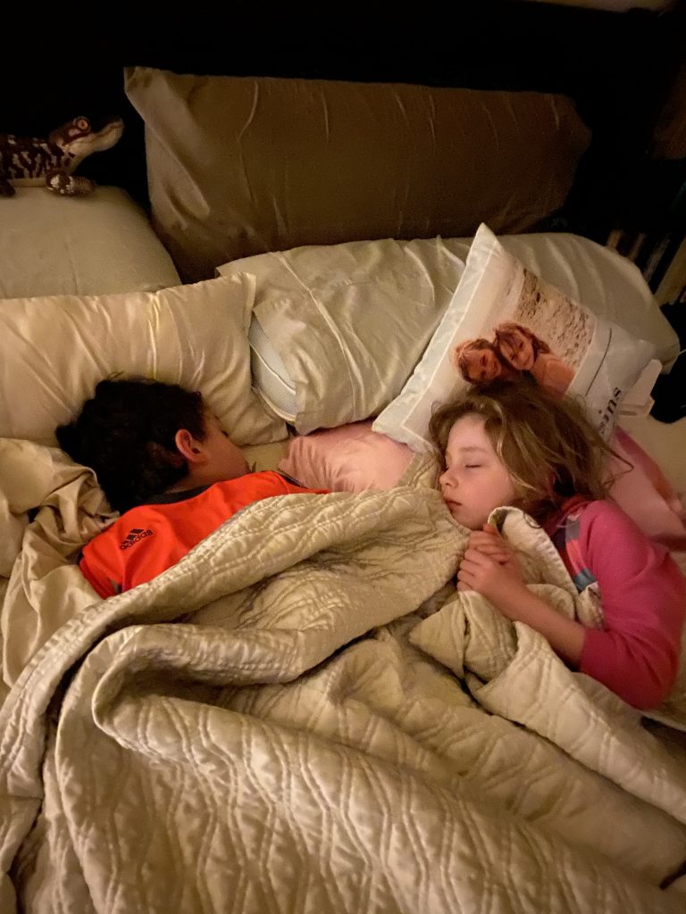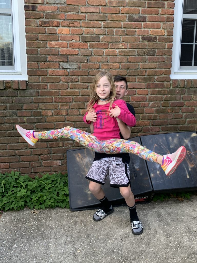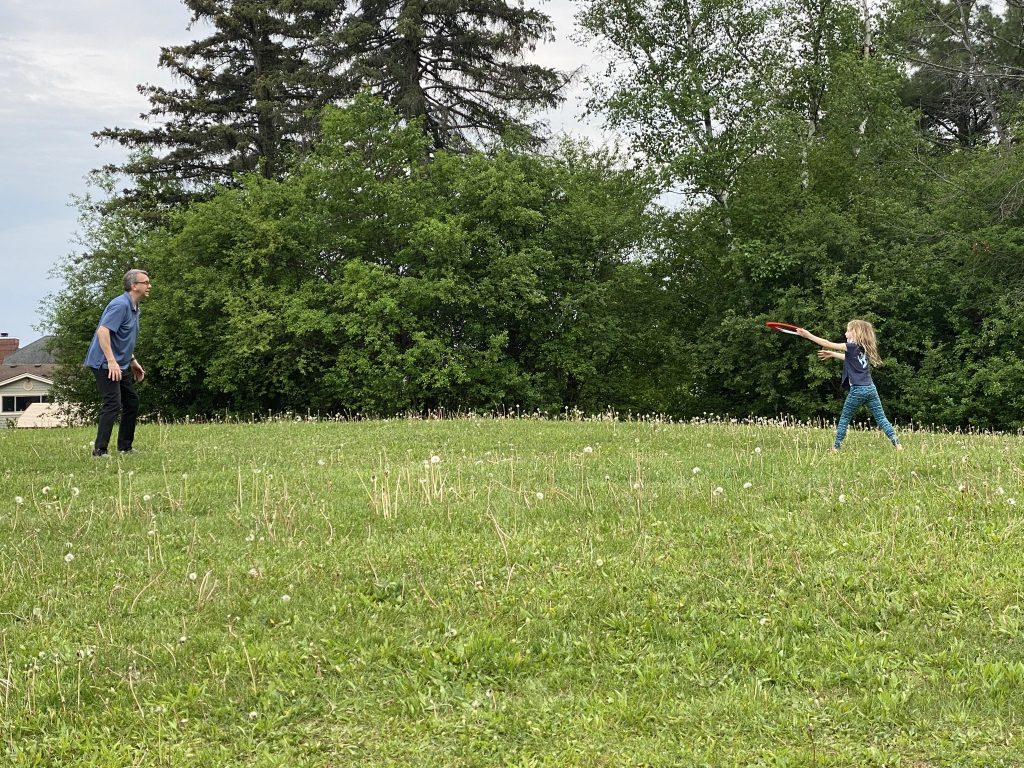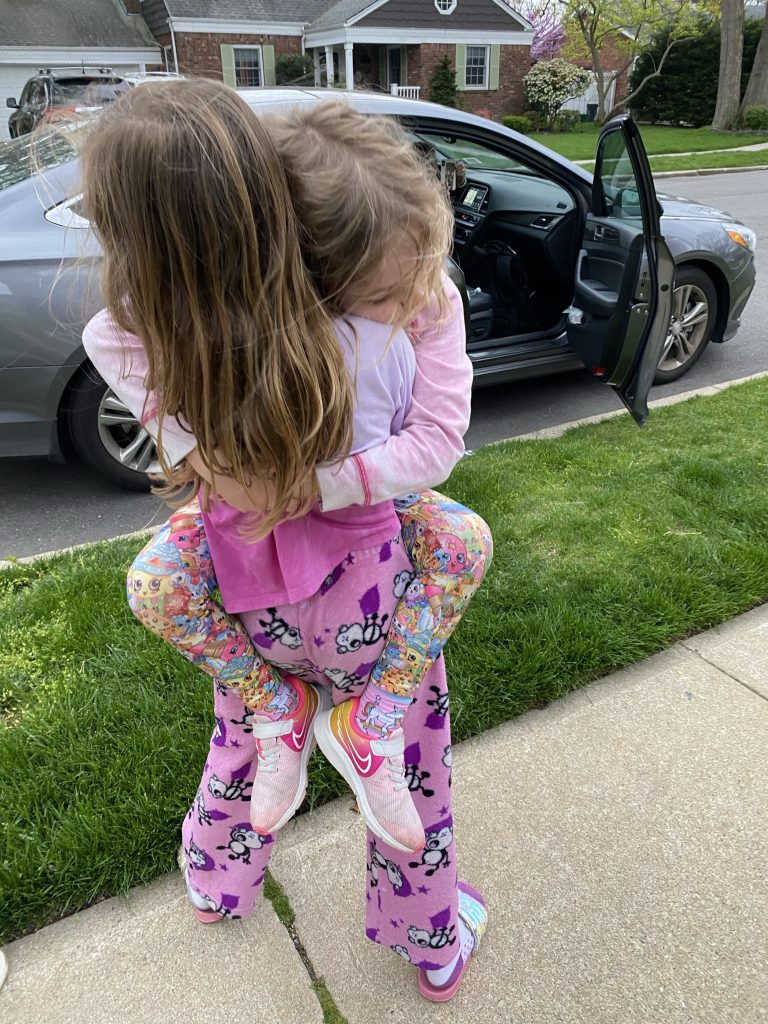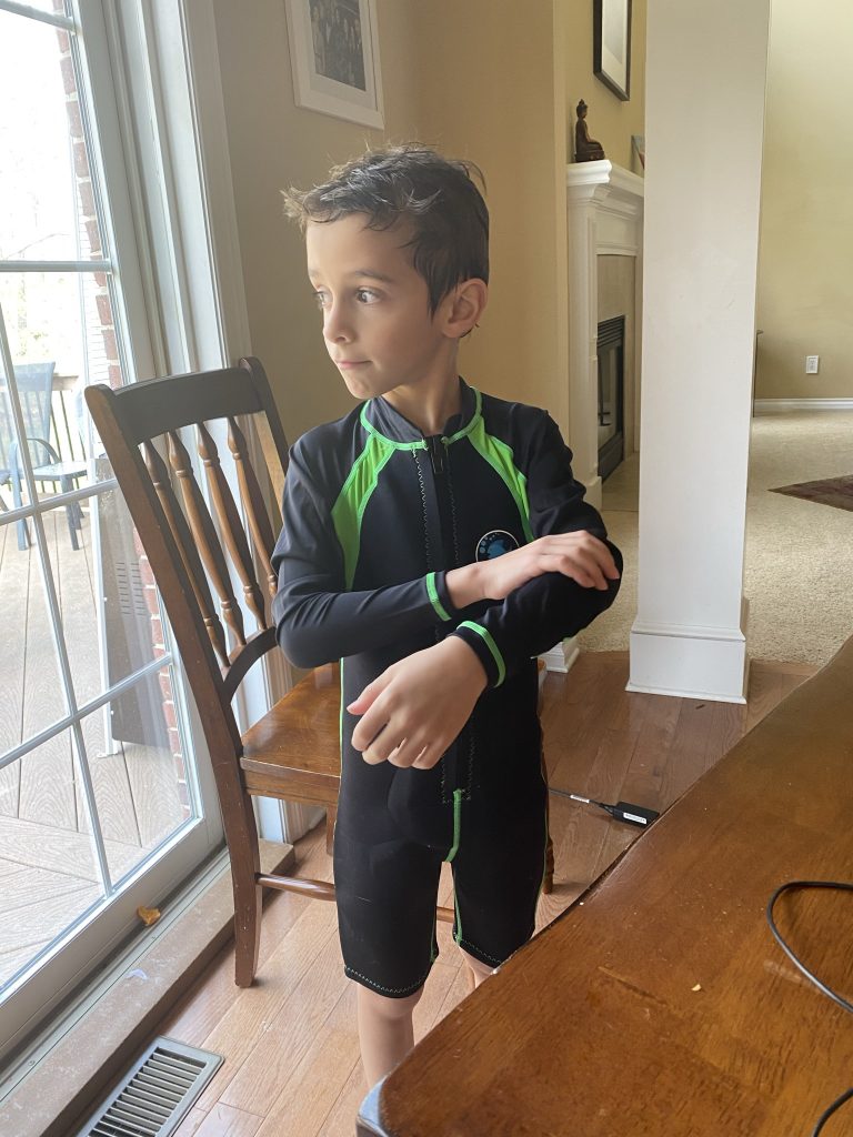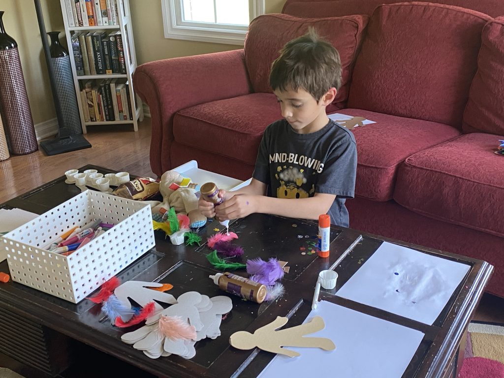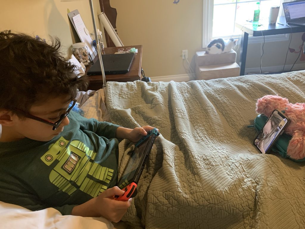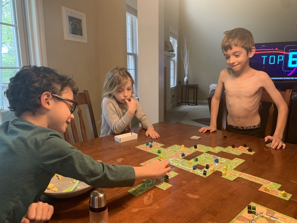 The kids have live PE classes in the house and, sometimes, they do them together. I appreciate the effort on behalf of the school but, honestly, on a nice day I’d prefer to just push the kids outdoors.