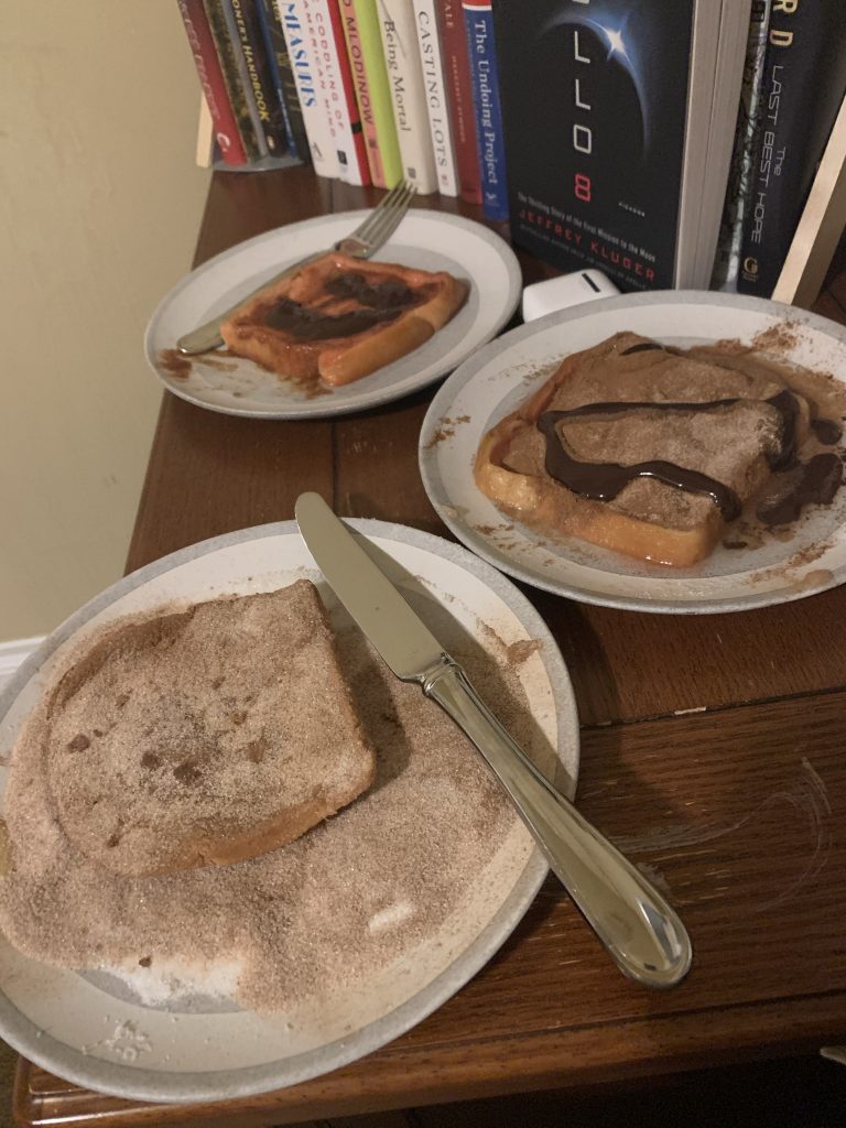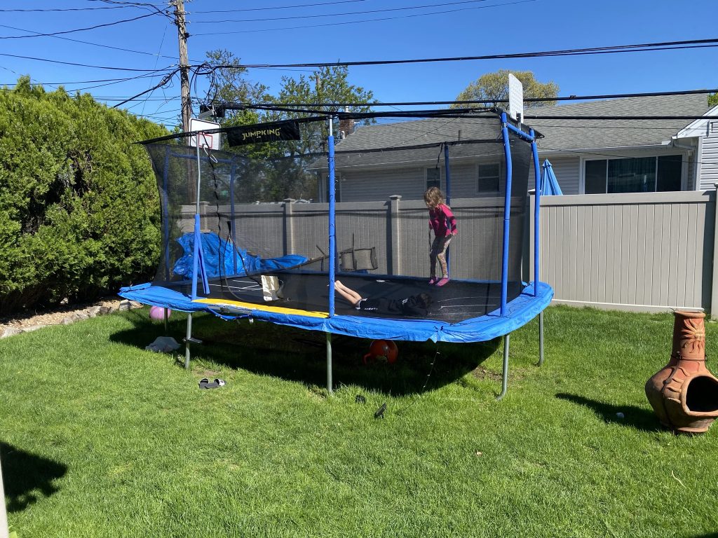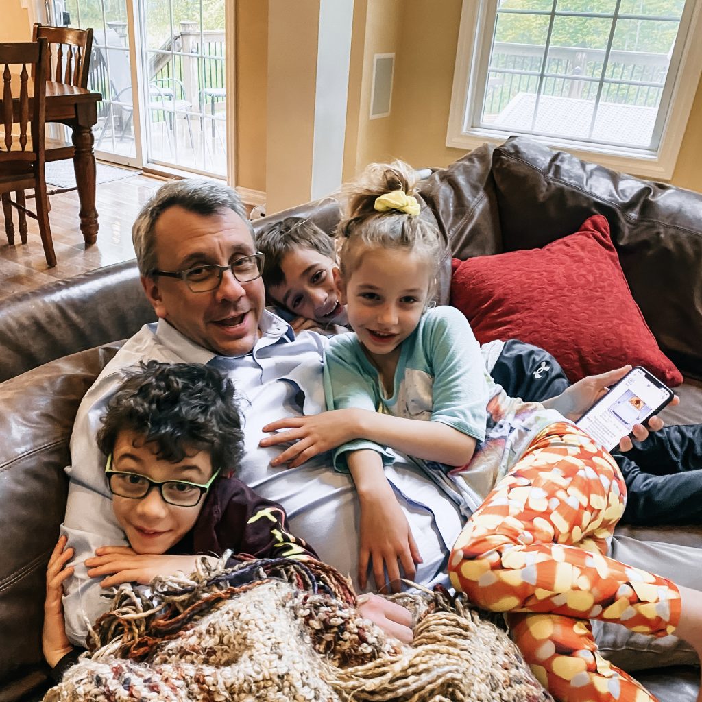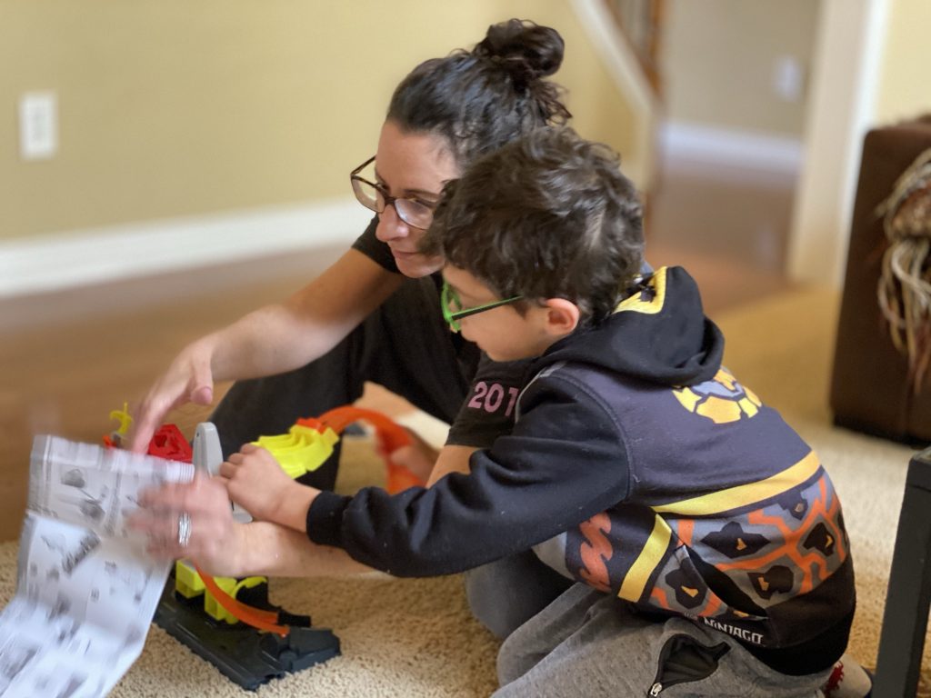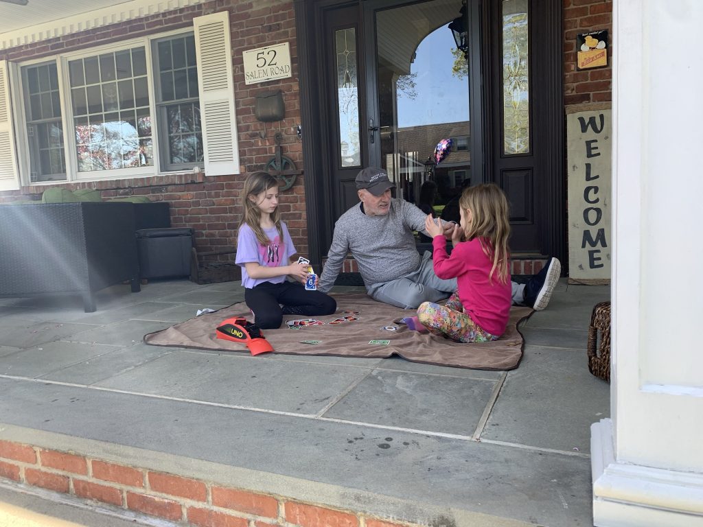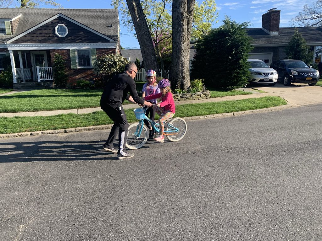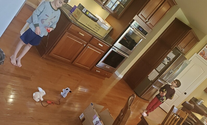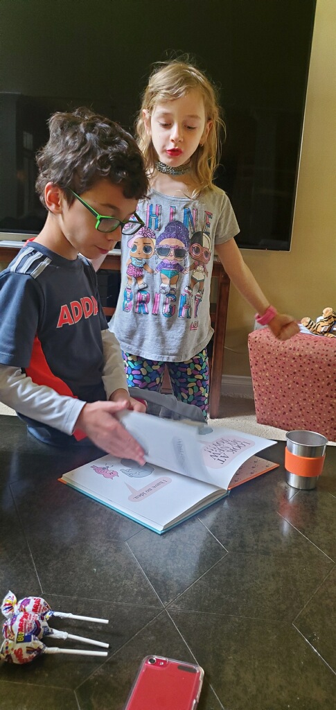 The kids have live PE classes in the house and, sometimes, they do them together. I appreciate the effort on behalf of the school but, honestly, on a nice day I’d prefer to just push the kids outdoors.