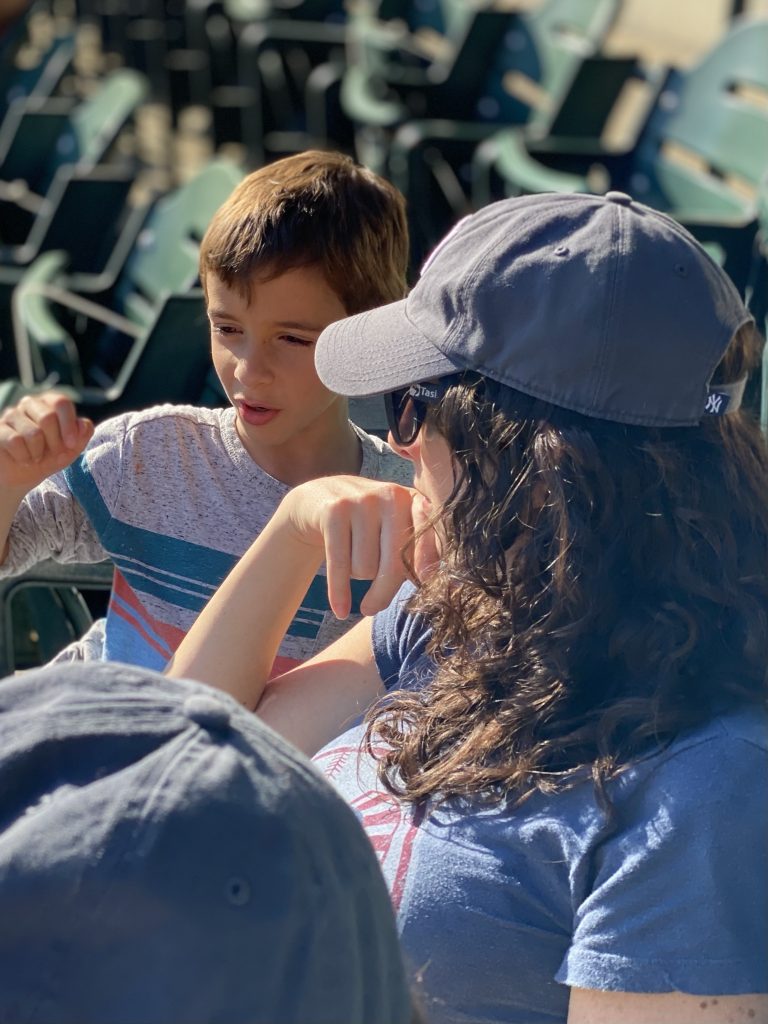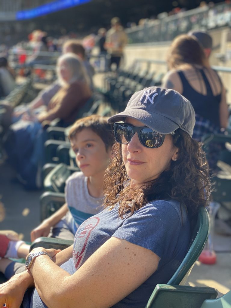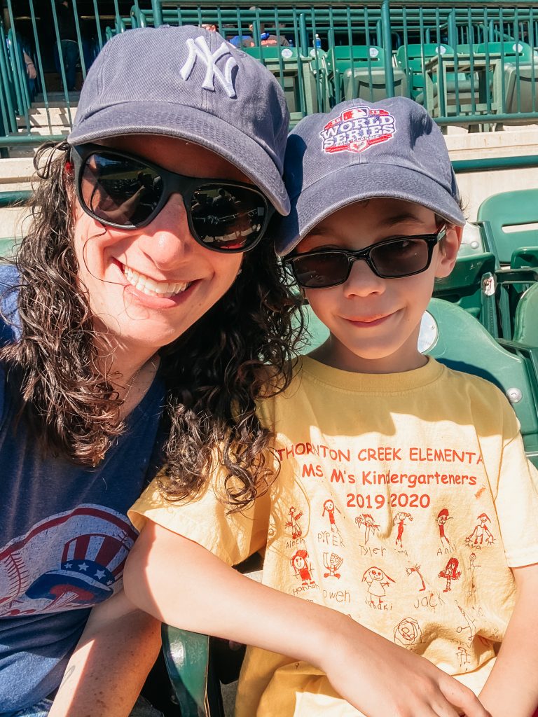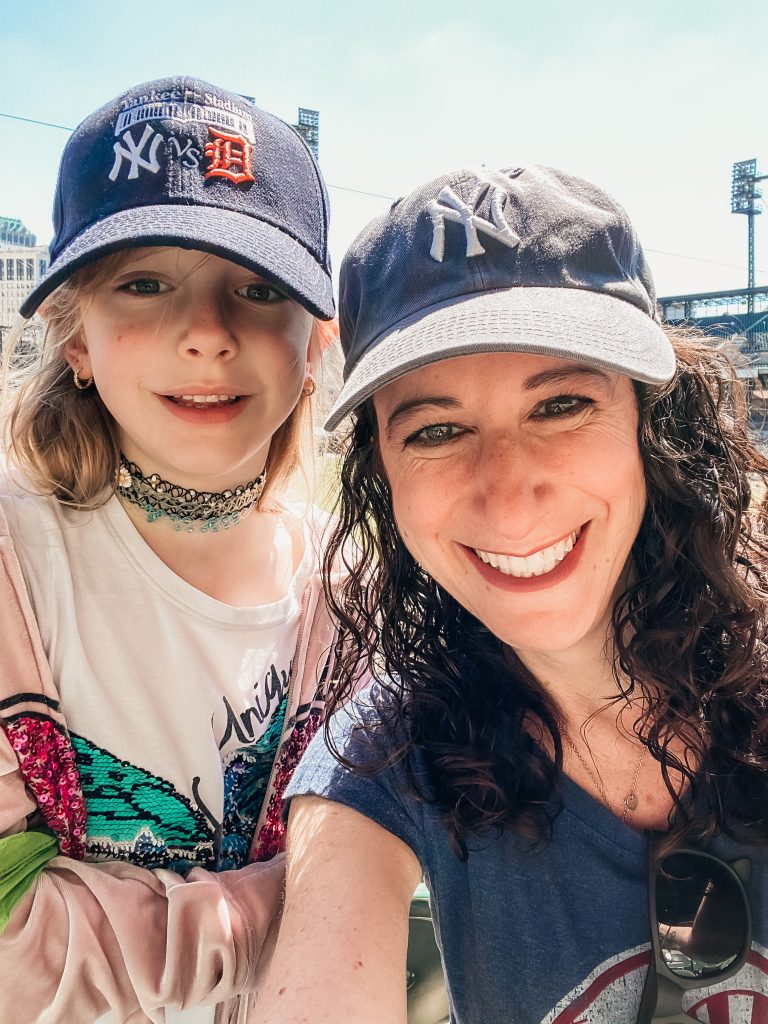 Amaya didn’t pick a team to score for so she wore a Yankees/Tigers hat from the Opening Day game Jason and I went to at Yankee Stadium in 2011.