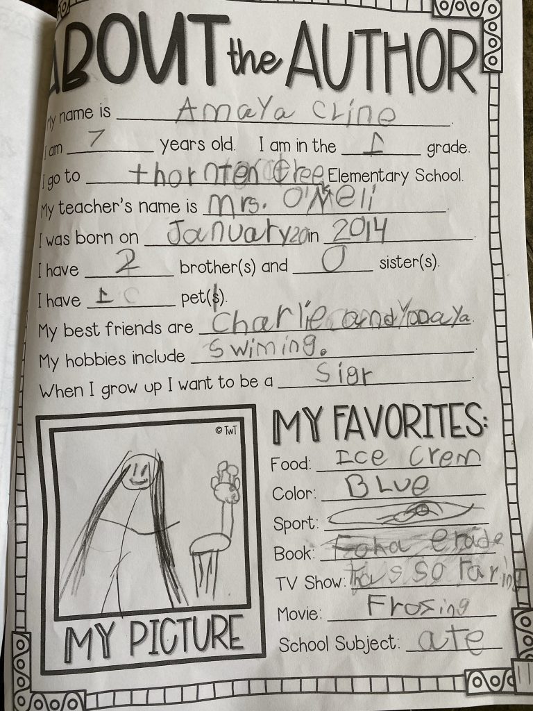 I’m not sure what this is related to but I thought it was interesting that all 3 kids had the same assignment and executed it so differently.