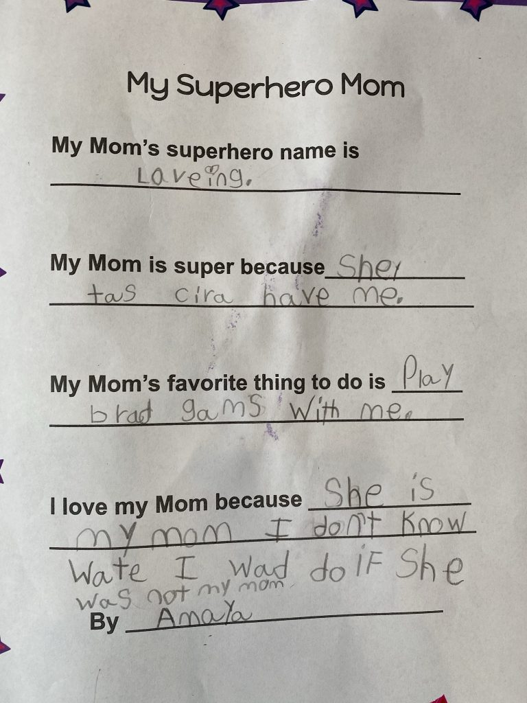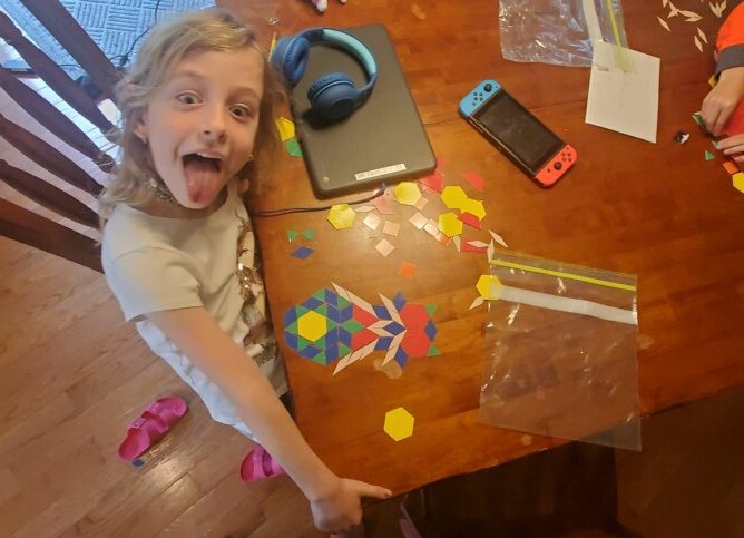 These shapes came home from school and were part of geometry lessons. (Amaya says, “it was actually just math so say ‘math'”.)