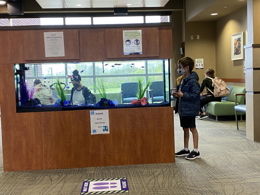 Can you spot Sammy and Jason between numbers 5 and 2, checking out the statues?