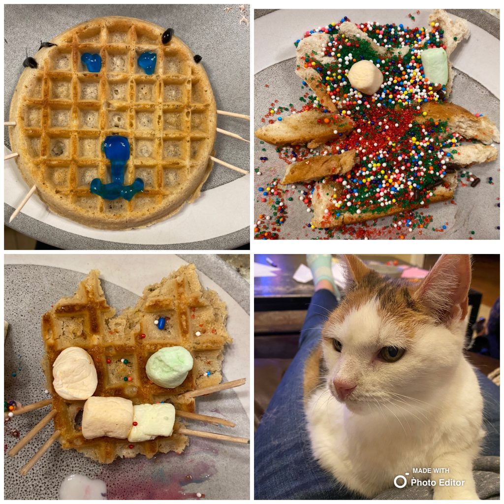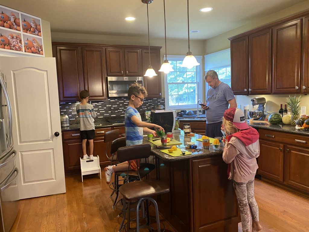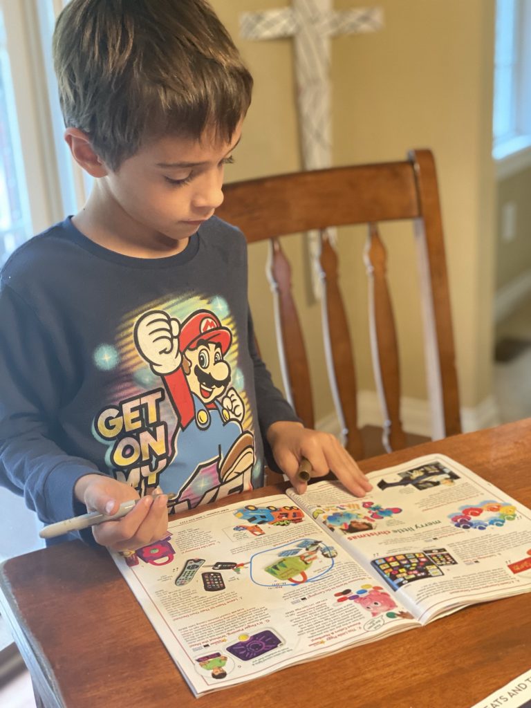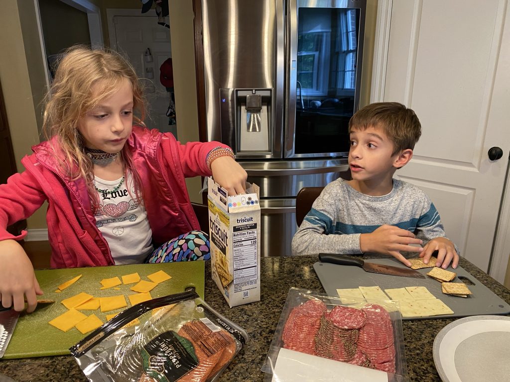 The kids and I had a full game day – with a break in between for my COVID booster. I picked Carcassonne (Steven and Sammy tied). Steven picked Catan Jr. (Sammy won). Sammy picked Blokus (I won). Amaya picked a Halloween board game that she made (Steven won).