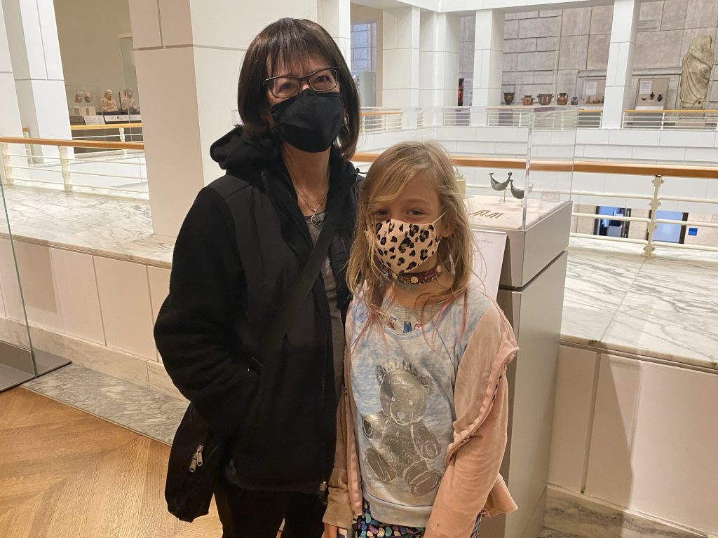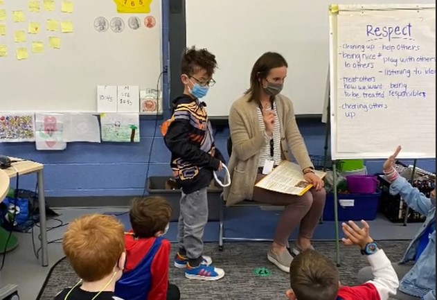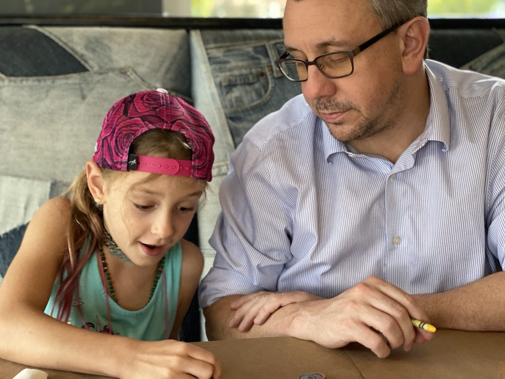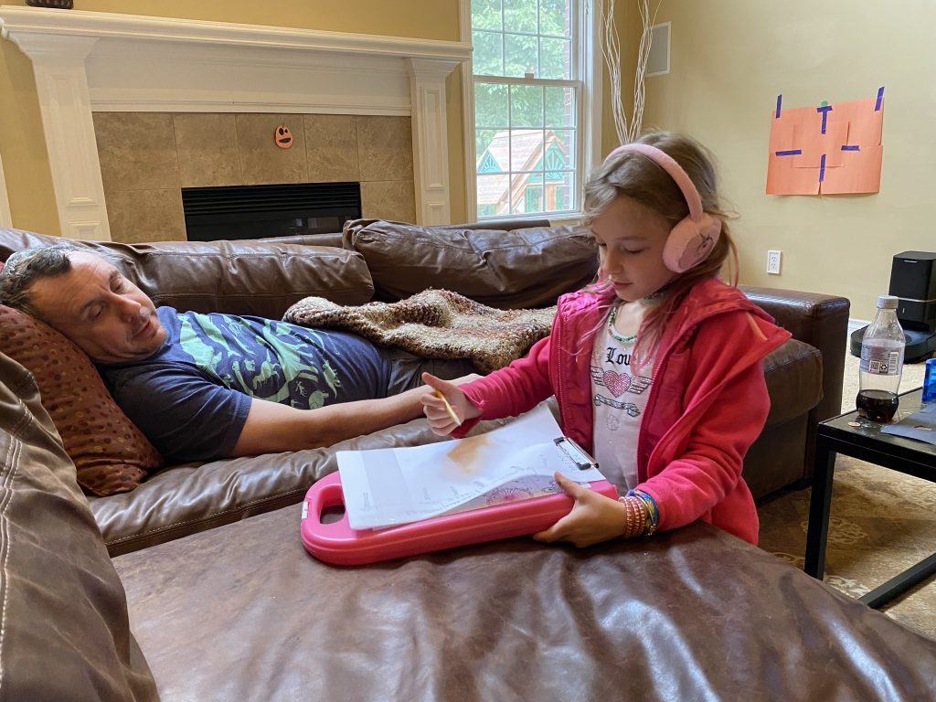 Sophia asked Steven why he wears the patch and he said, “My brain doesn’t like to use my right eye as much so it doesn’t see as well. If I put a patch on my left eye it forces my brain to use my right eye, and hopefully my right eye gets stronger.” Perfect explanation.