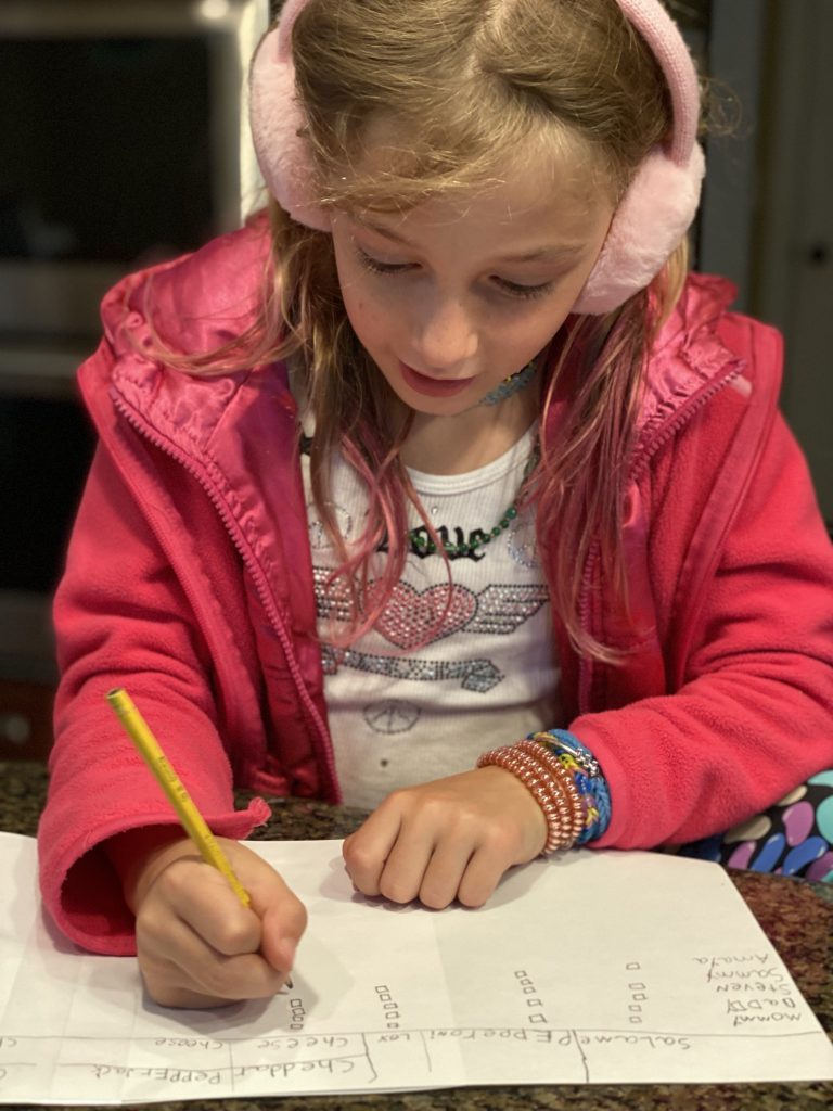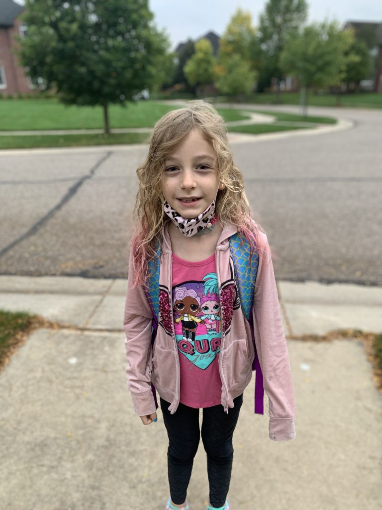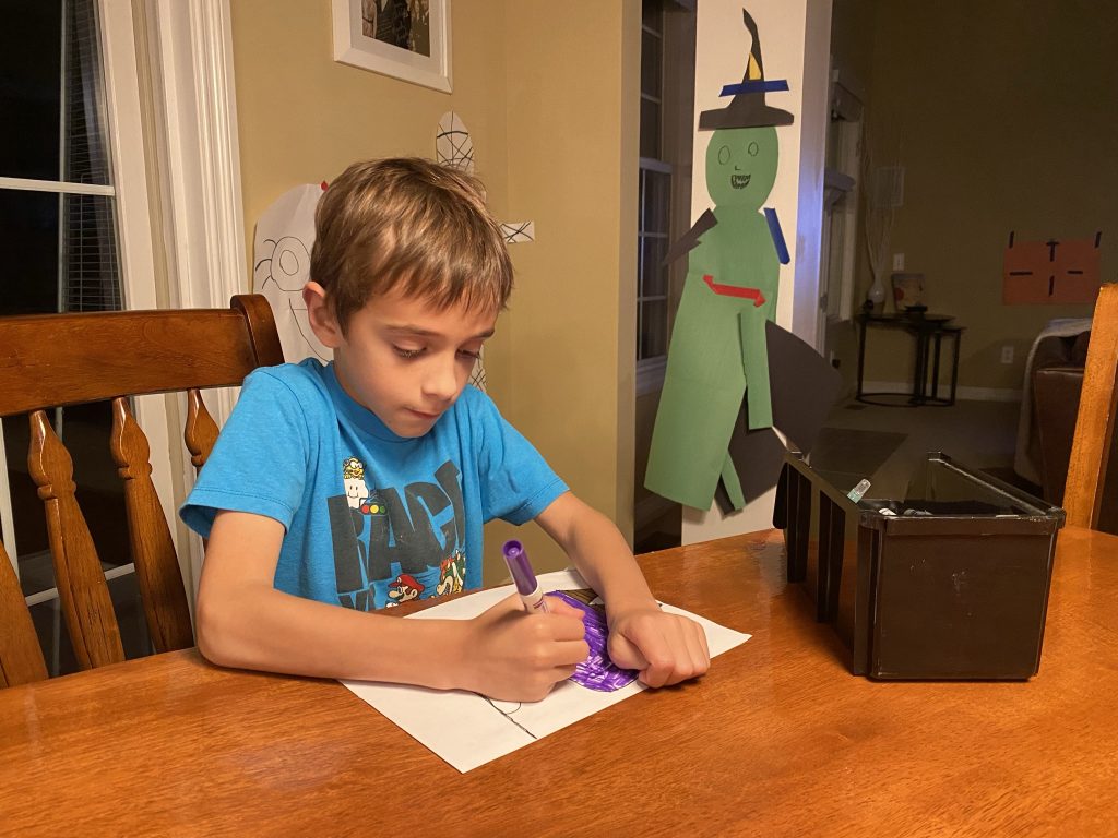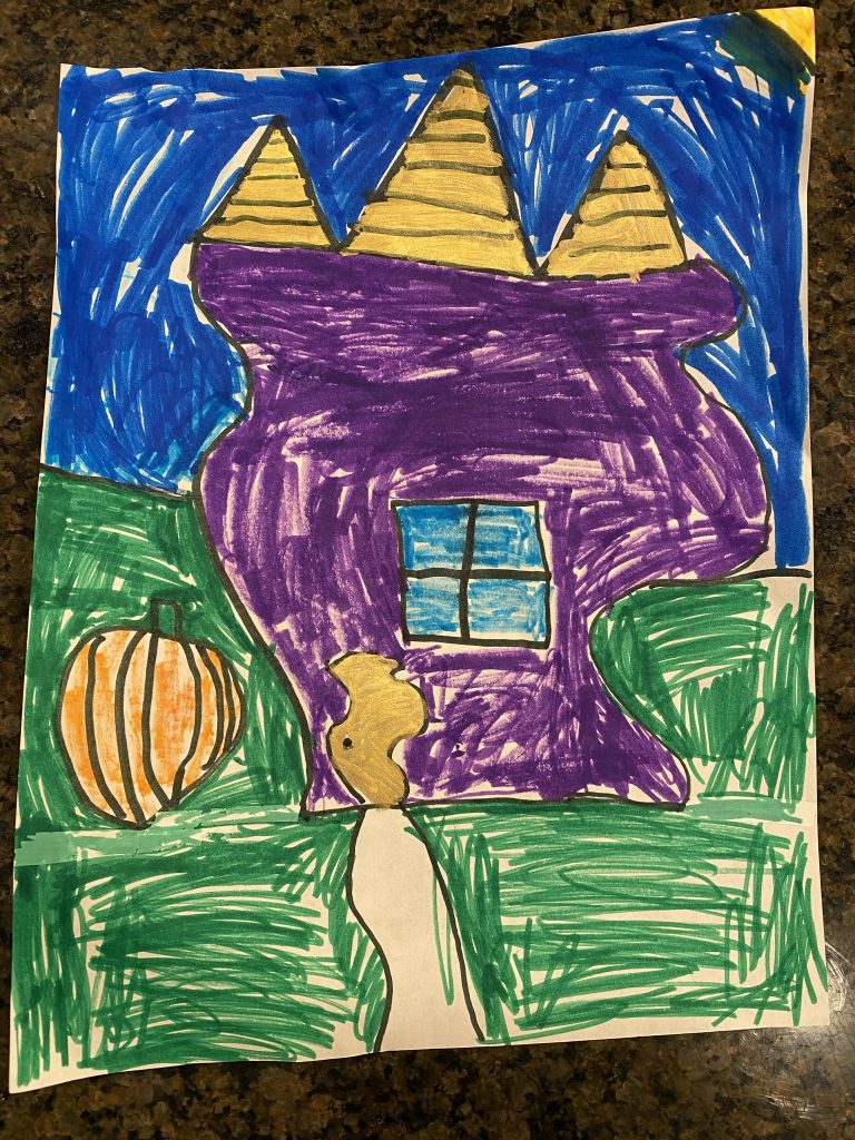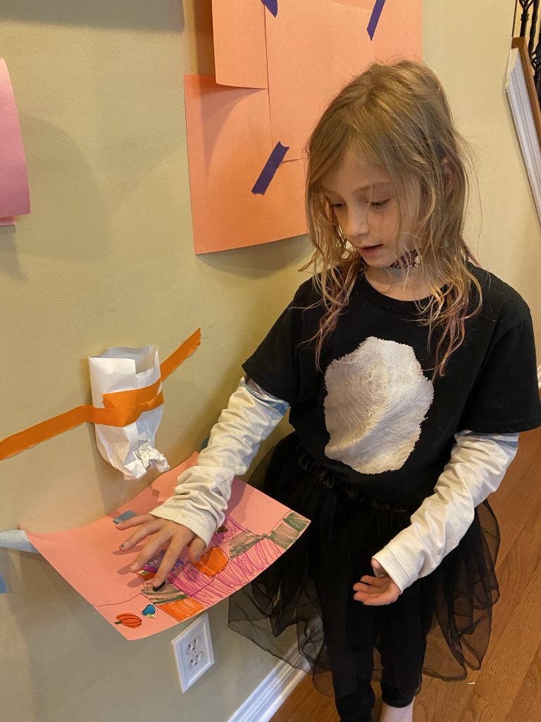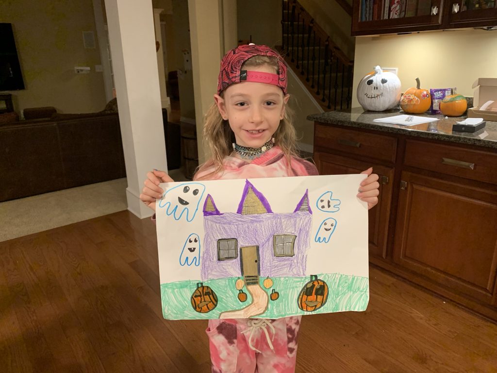 The kids’ bus driver has a Halloween art contest. This was Amaya’s submission. (I think their driver was out this week with COVID so we’ll see what happens with the art given to the substitute driver.)