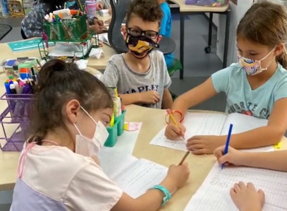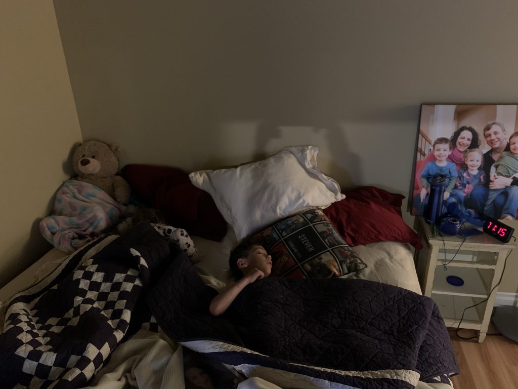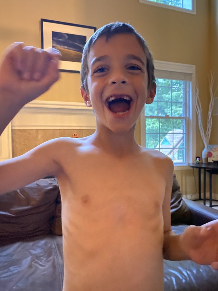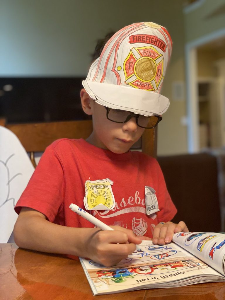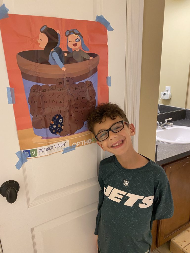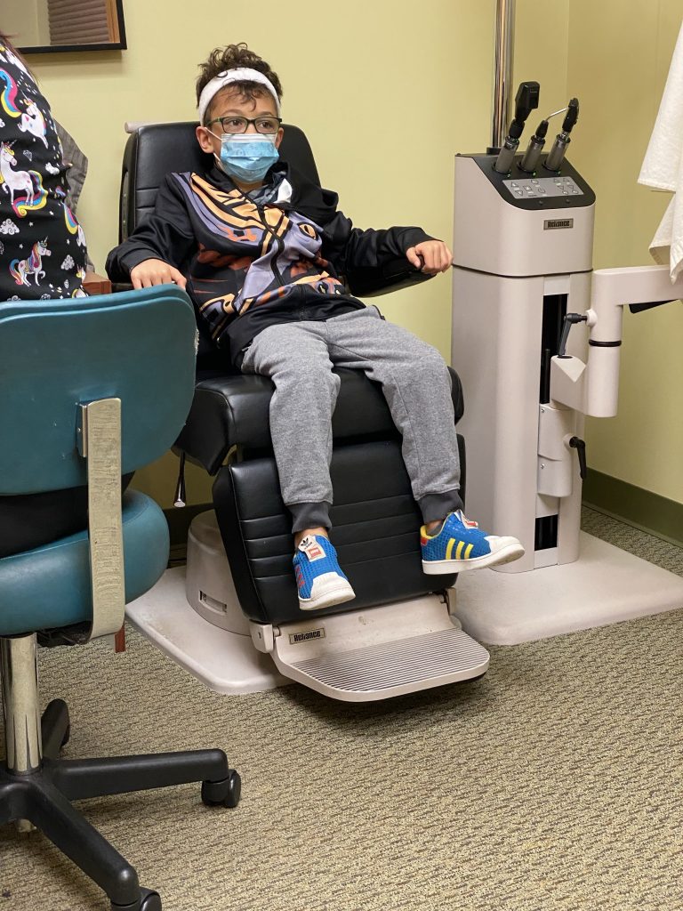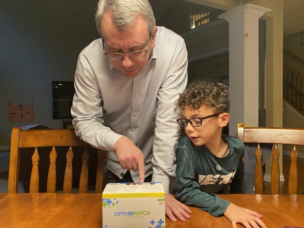 Before school, Steven had a check-in with his eye doctor. She was hoping that a stronger prescription would correct Steven’s right eye to 20/20 but it’s still at 20/30. She asked him how he’d feel about wearing a patch again for 2 hours/day and he said it was fine. Such a big kid, doing what’s best for his body.