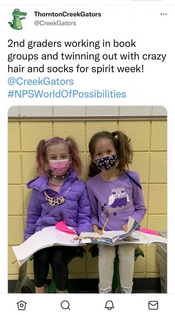 Monday’s theme was “Crazy Hair & Crazy Socks”. I picked up Halloween spray on Sunday so the kids were ready with their crazy hair. Steven added in crazy socks, too. (They’re mine!)