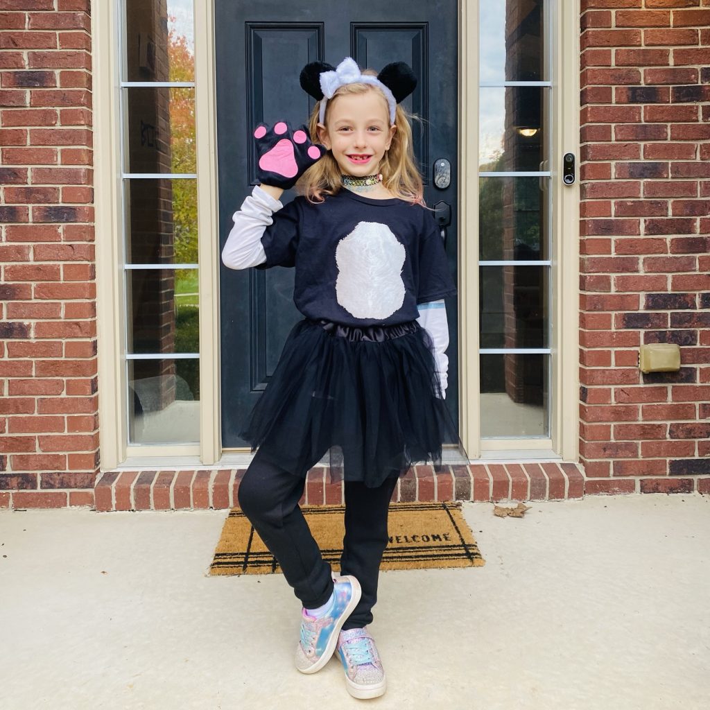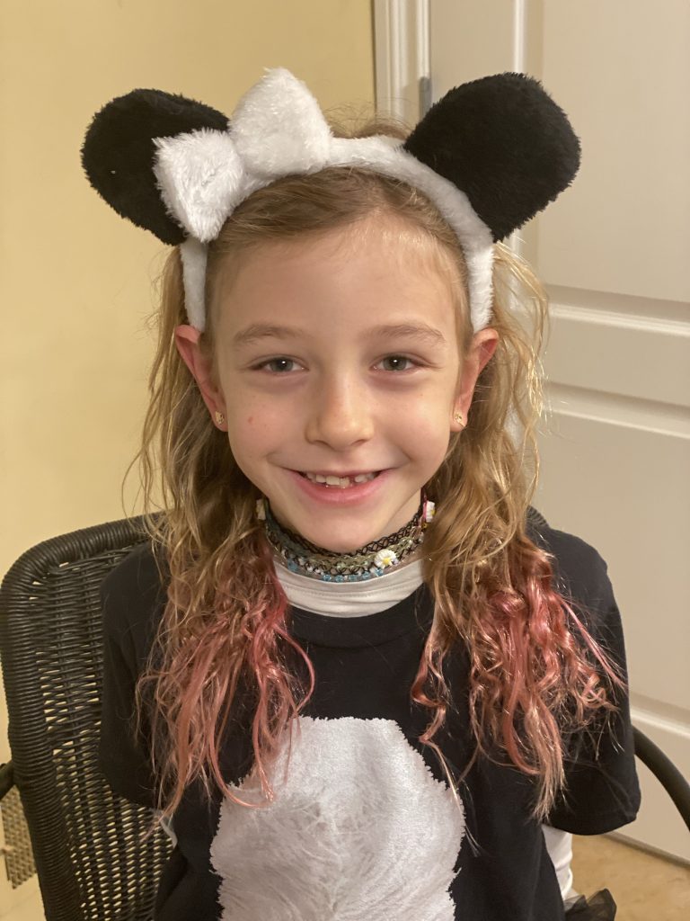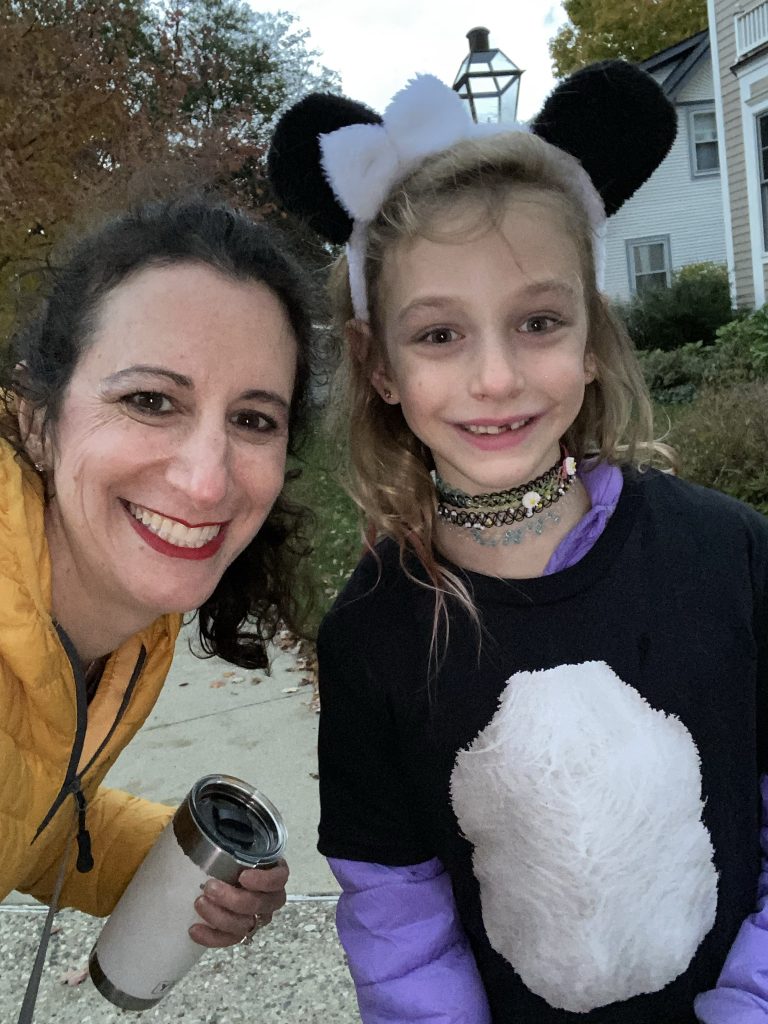 Our little panda, ready for school on Friday. The rain meant the outdoor parade was canceled but the kids still celebrated with their classes.