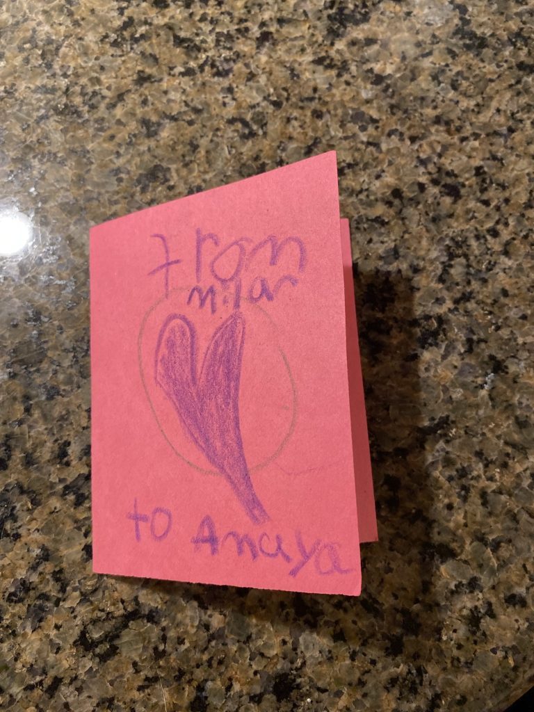 This card came home from school with Amaya on Friday. So nice that she’s made such a special friend.