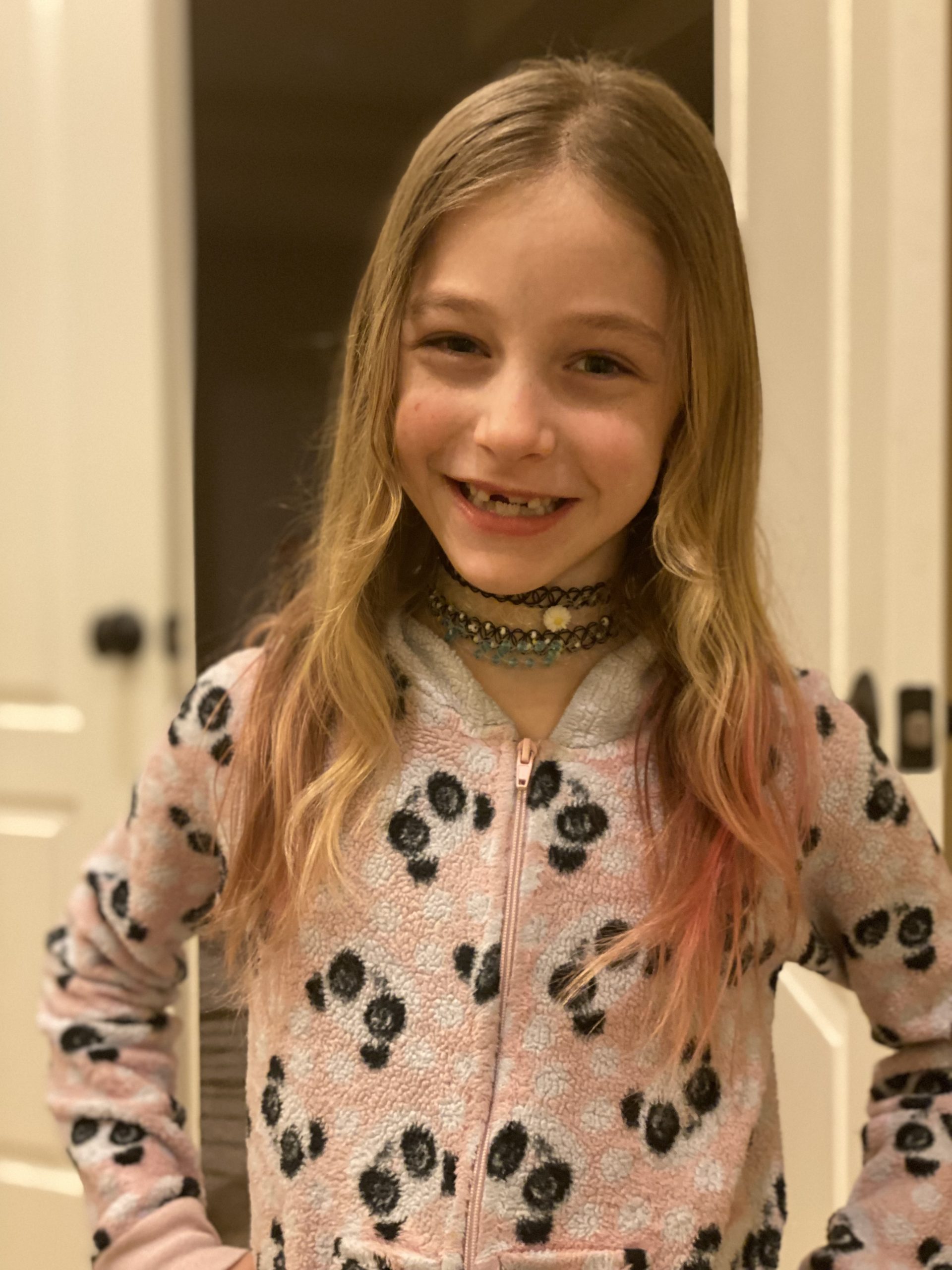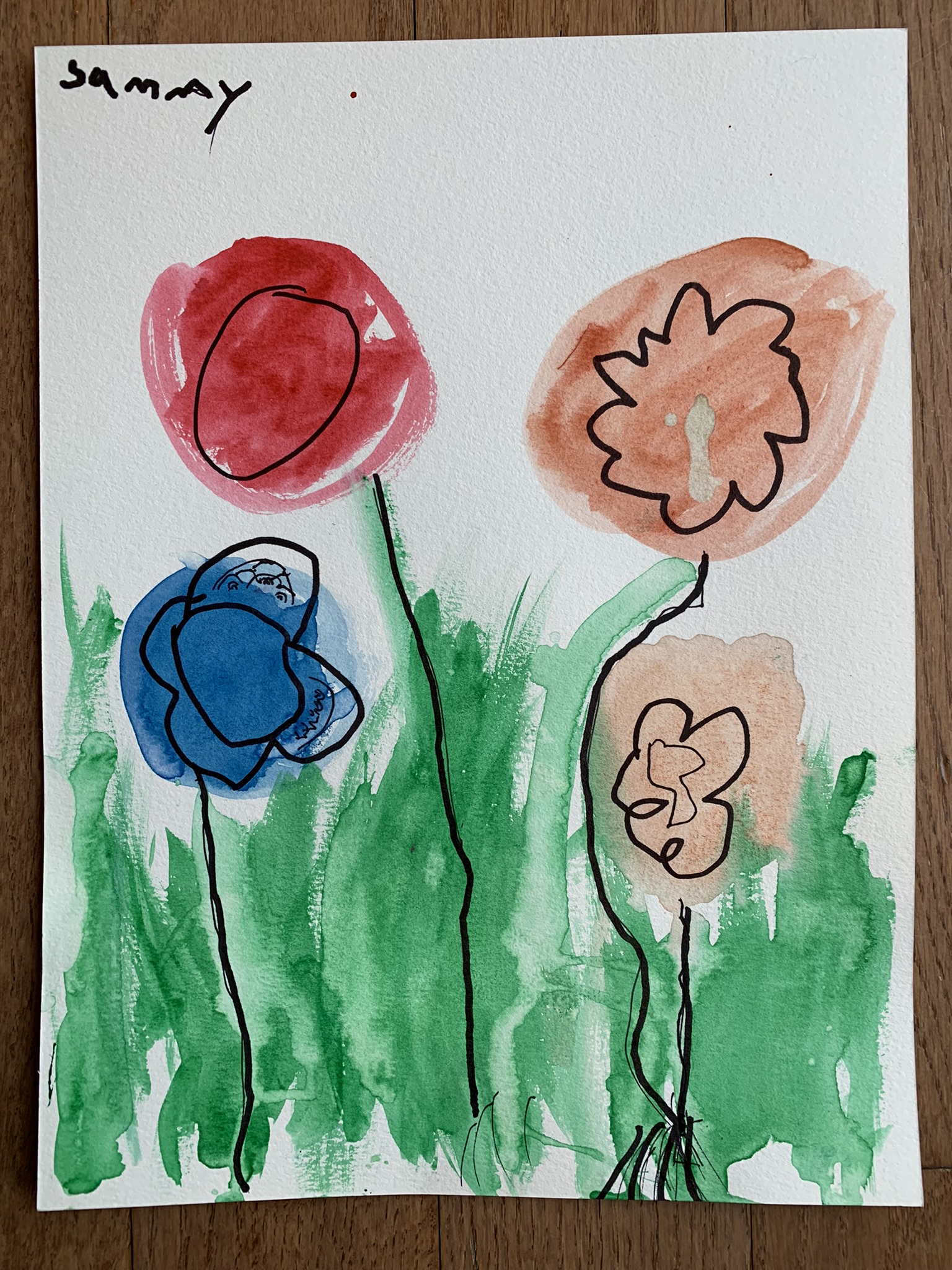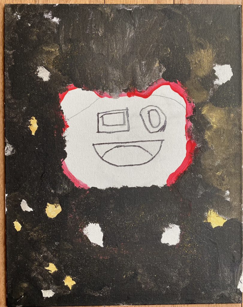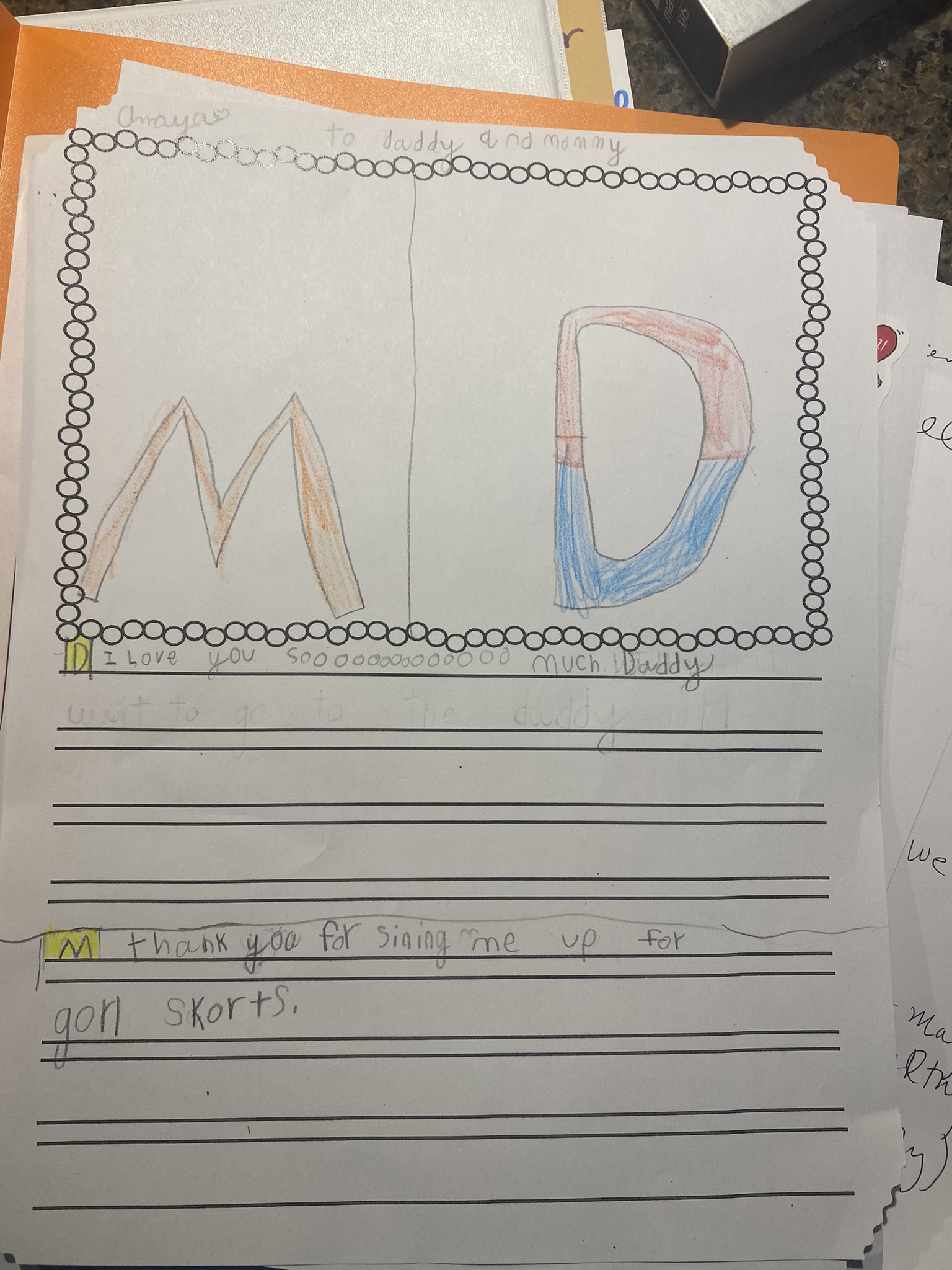 Amaya made this art at school. “I am pretty. I am kind. I am flexible. I am caring. I am loving.” All true!