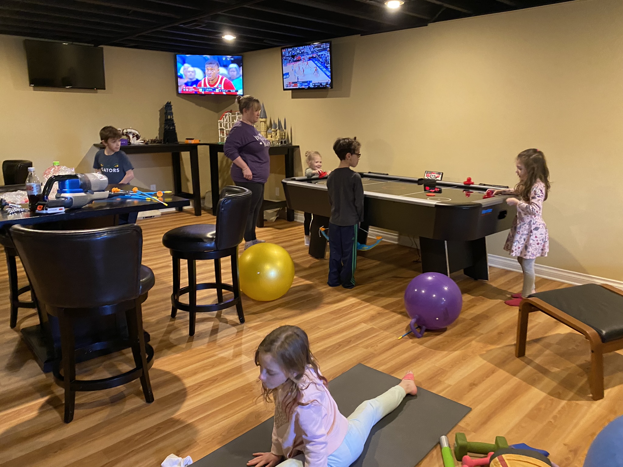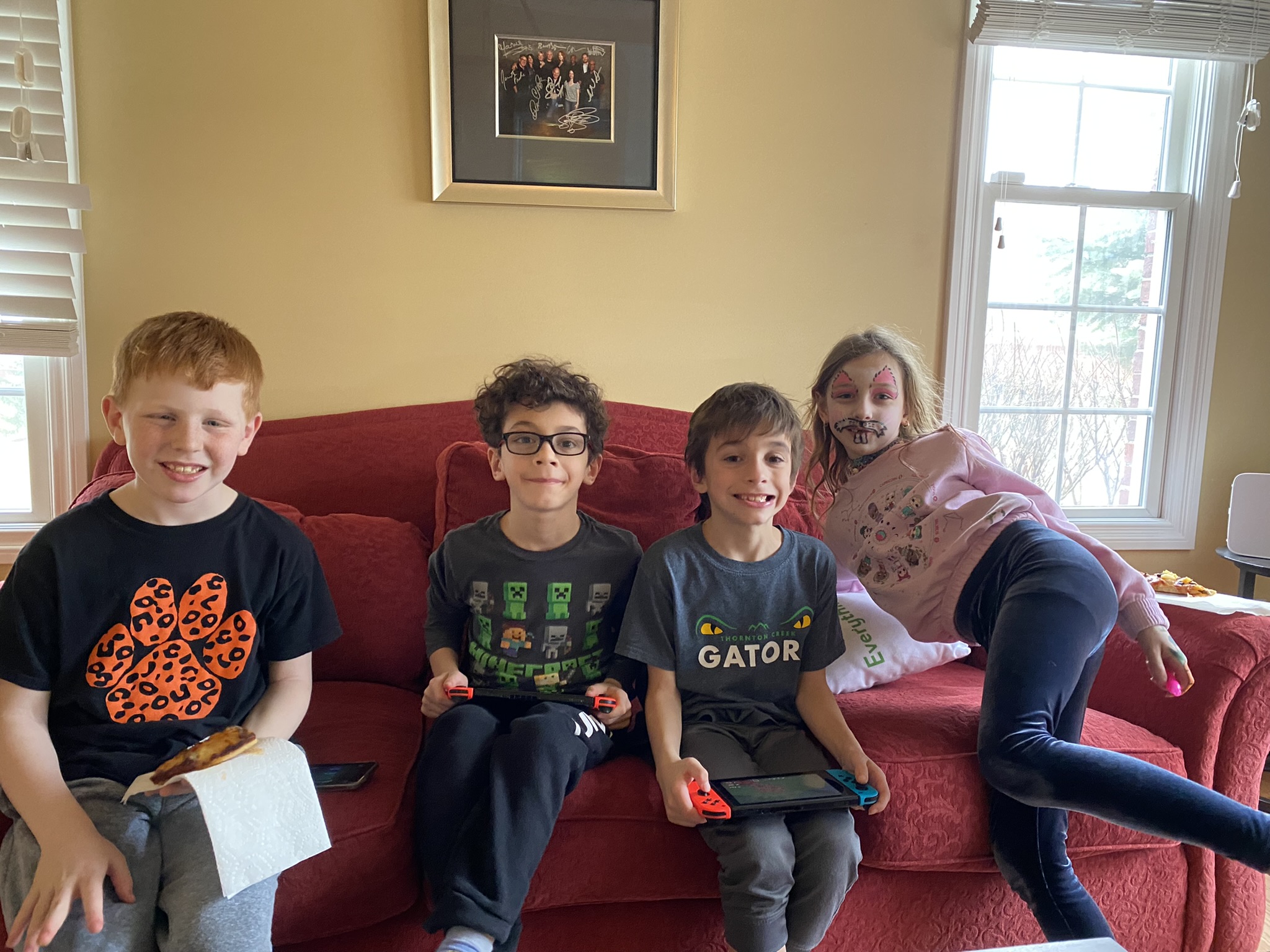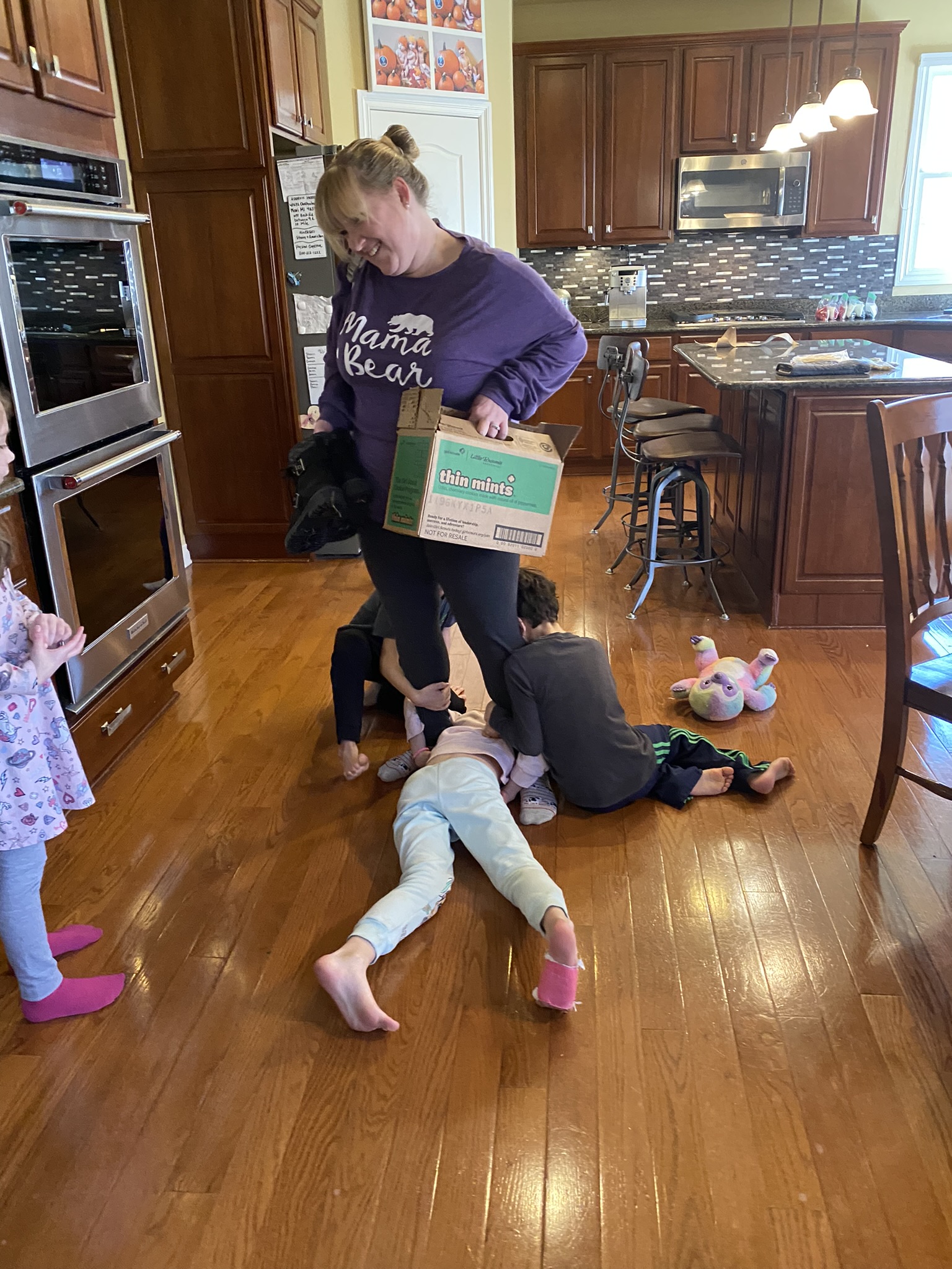 The kids had half days of school on Thursday and Friday so the boy’s friend Brady rode home on the bus with them for an afternoon playdate. They had so much fun and Brady is a sweet, kind boy. They had pizza, played in the basement, played video games and wrestled outside.