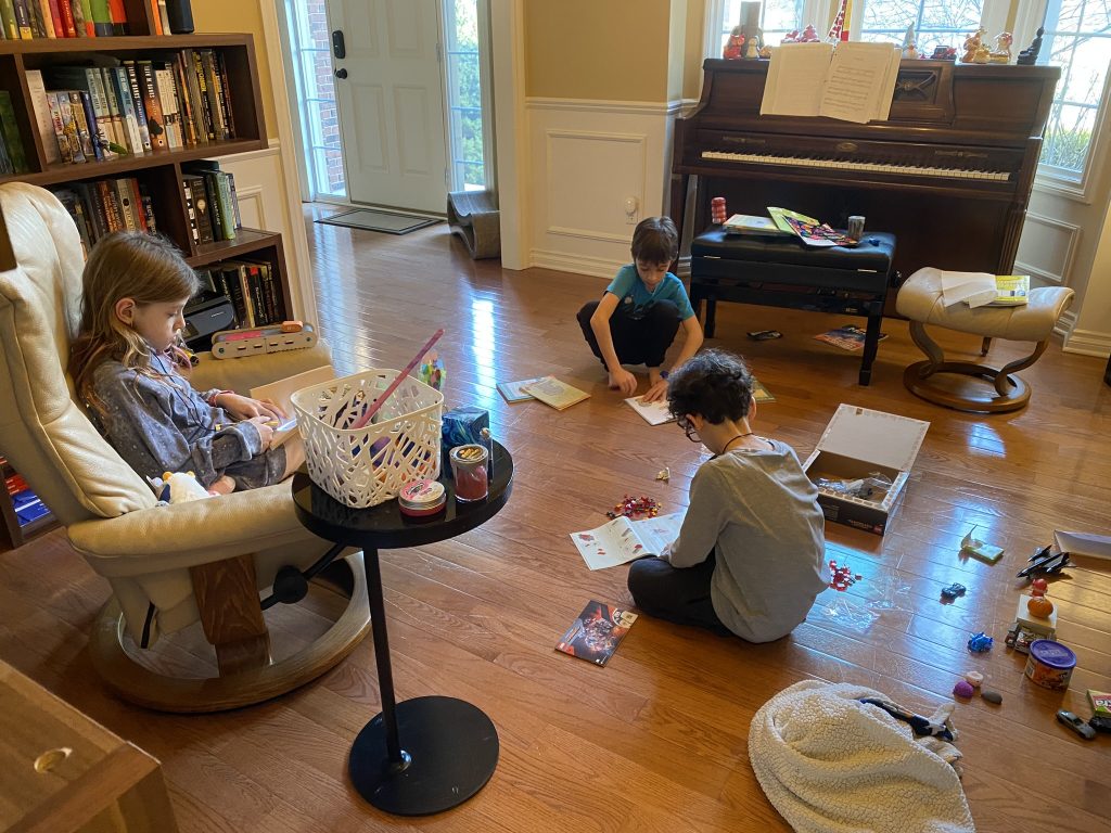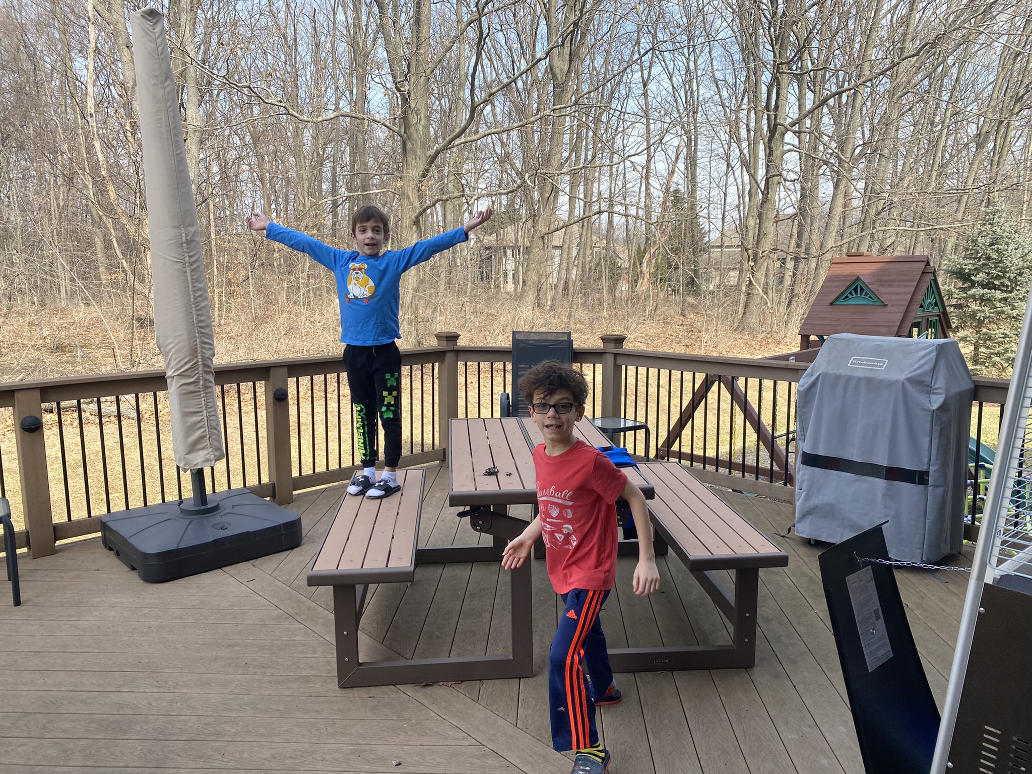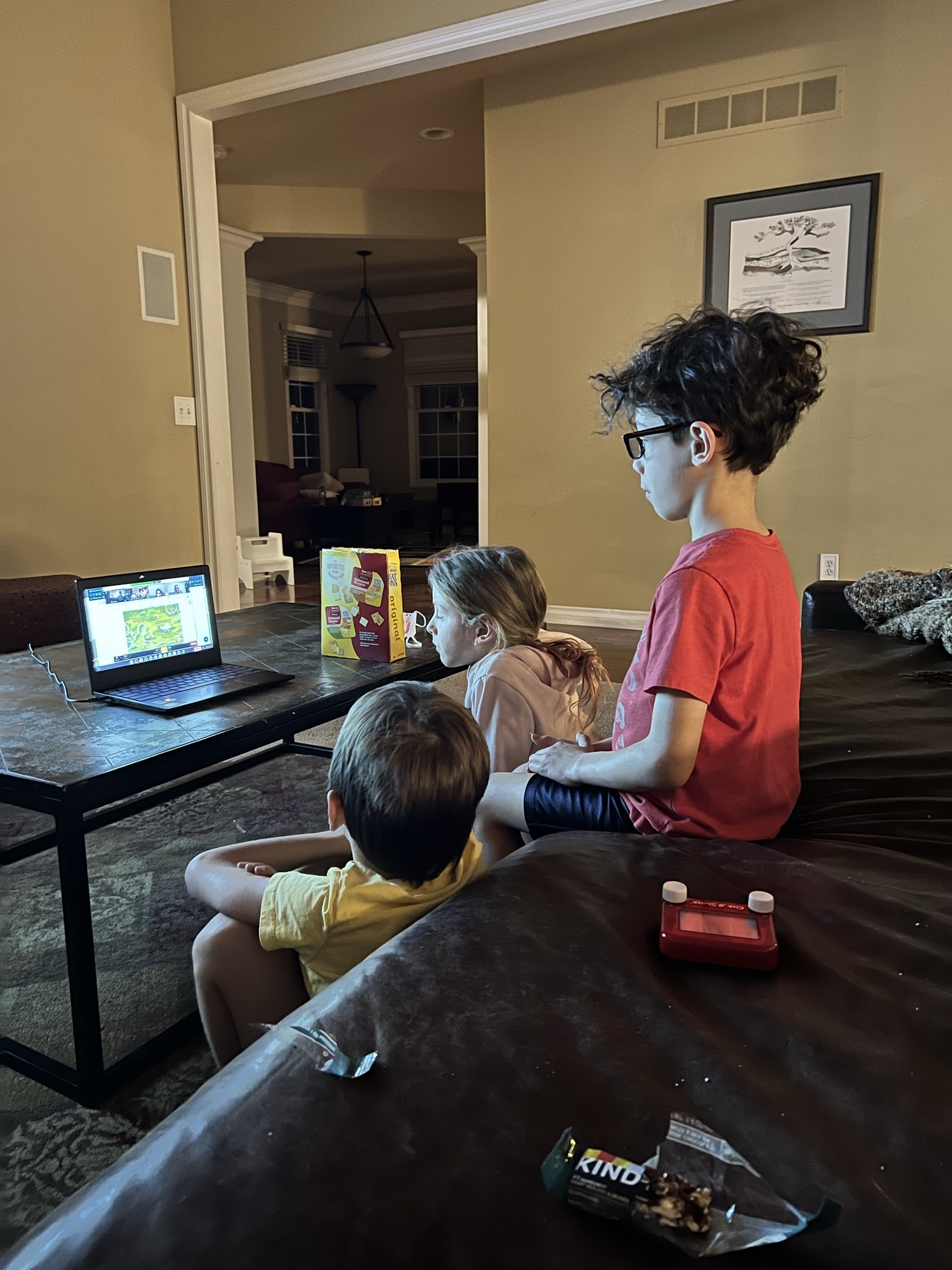 The kids had half days of school on Thursday and Friday so the boy’s friend Brady rode home on the bus with them for an afternoon playdate. They had so much fun and Brady is a sweet, kind boy. They had pizza, played in the basement, played video games and wrestled outside.