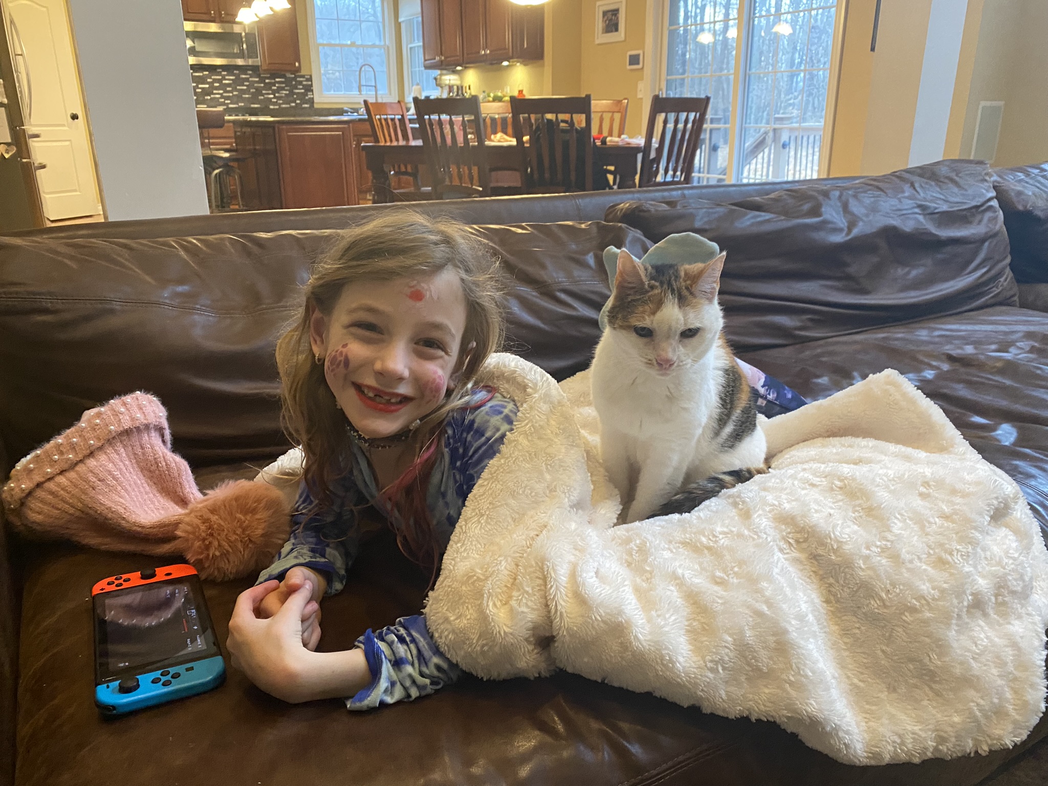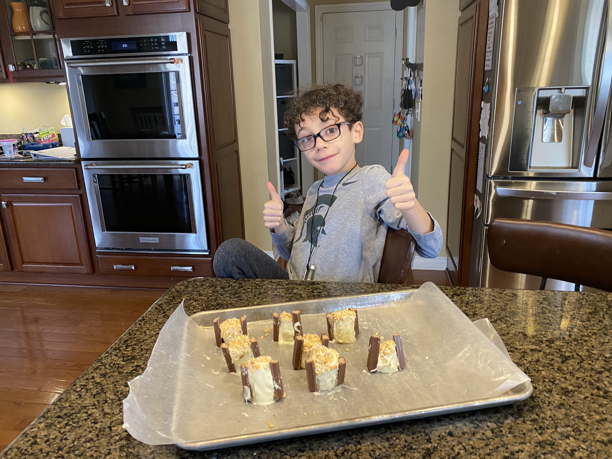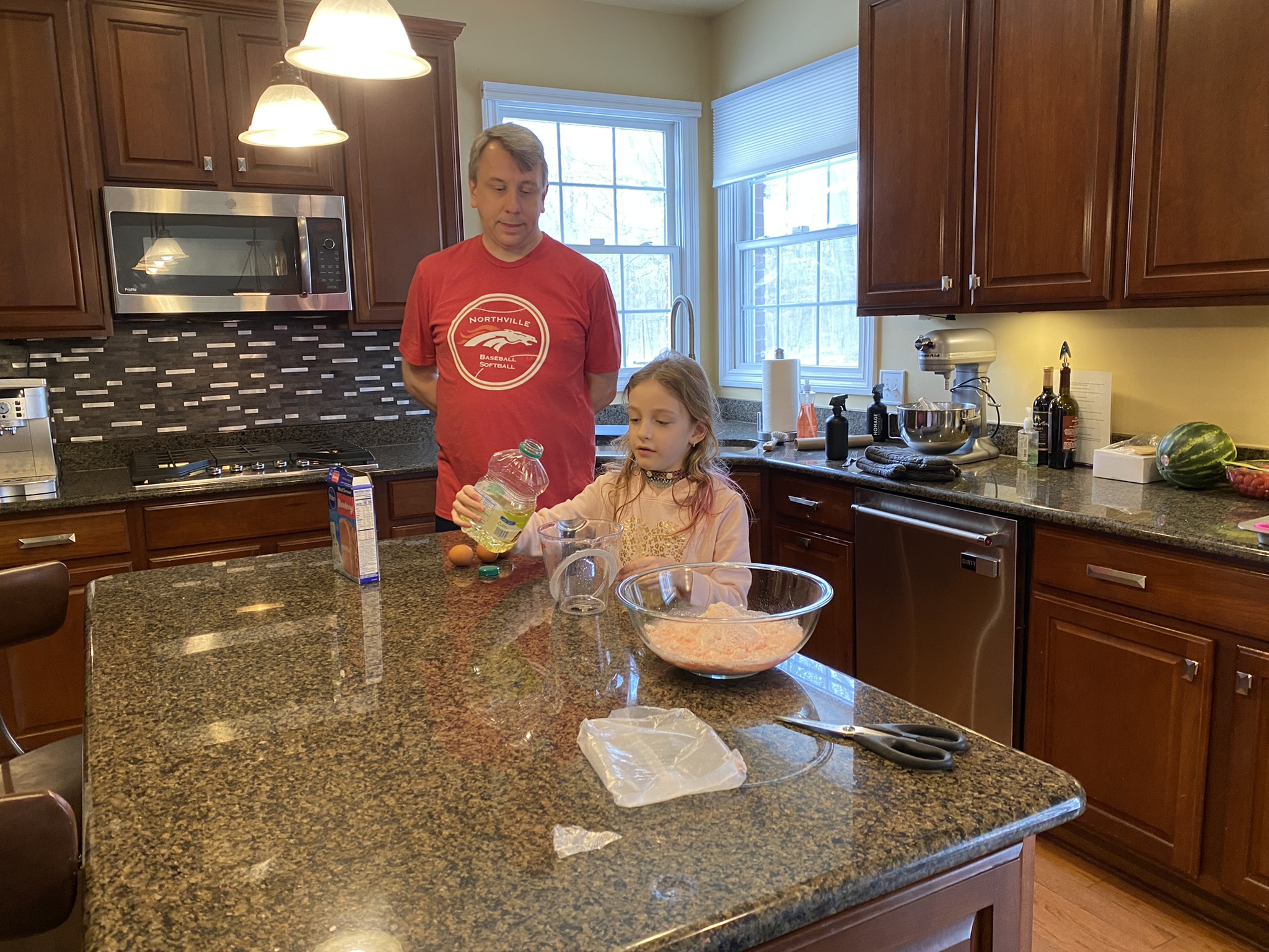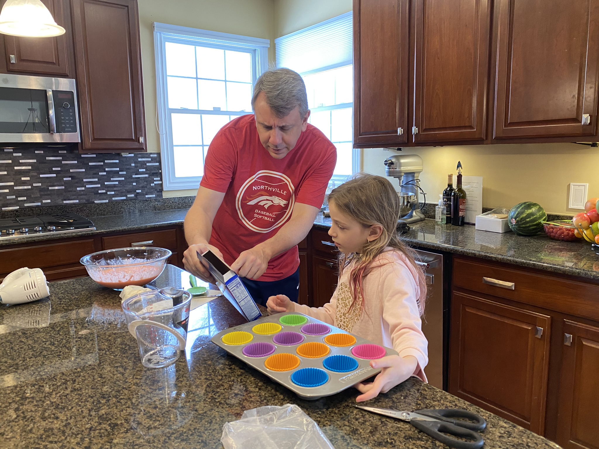 A mom on our block volunteers at the library for Amaya’s class each week. Amaya borrowed a cupcake cookbook from the school library and, while she was taking it out, Mrs. Boomer suggested she bake cupcakes for Mrs. Festa and Nico. So that’s what she did and then hand delivered them to the family.