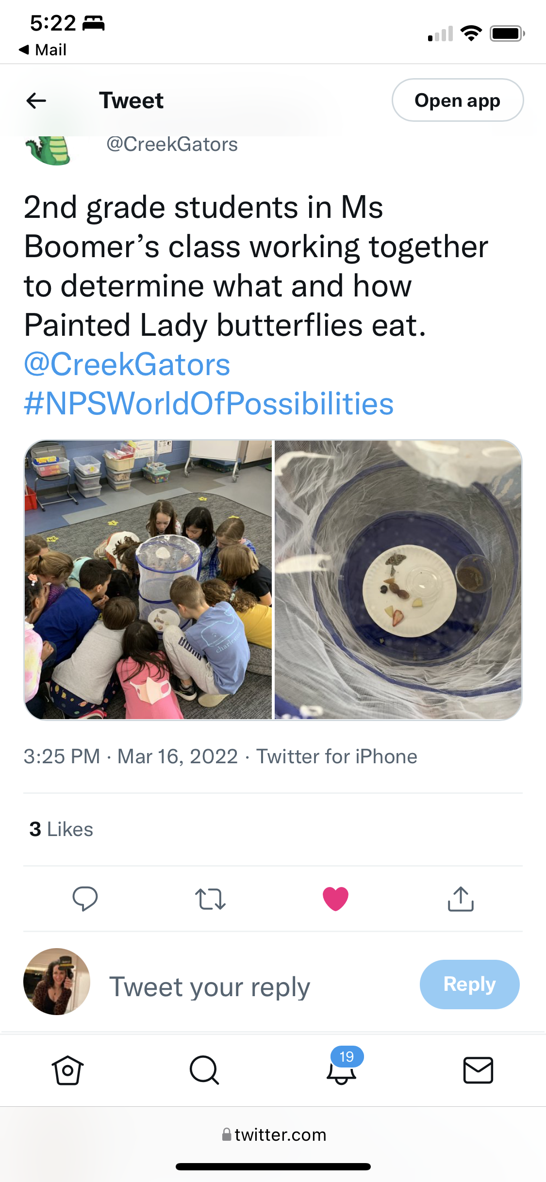 Amaya’s class was featured on TC’s twitter this week. Mealworms, butterflies… lots of fun opportunities to engage with nature in their classes.