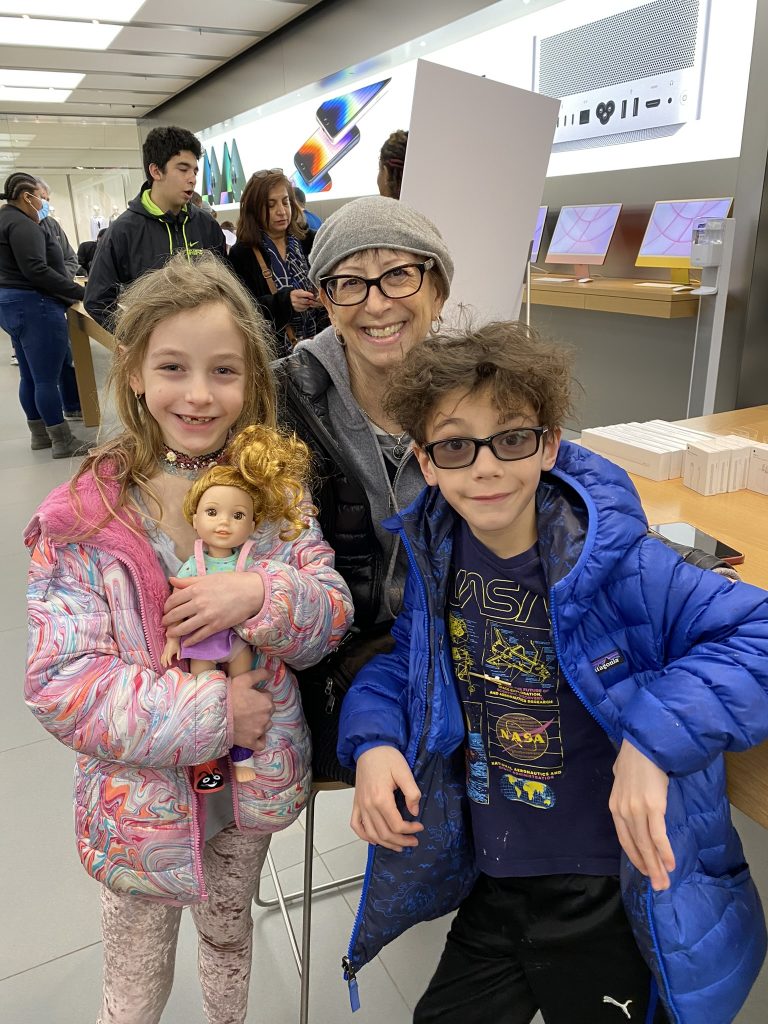 We picked up Nana at the airport and then, after lunch, Amaya, Steven, Nana and I wen to the Apple store to get Steven’s new iPod which he needed becuase someone (hi! me!) washed it with a load of laundry yesterday. Sadness for my wallet, but I was really proud of how well Steven handled it.